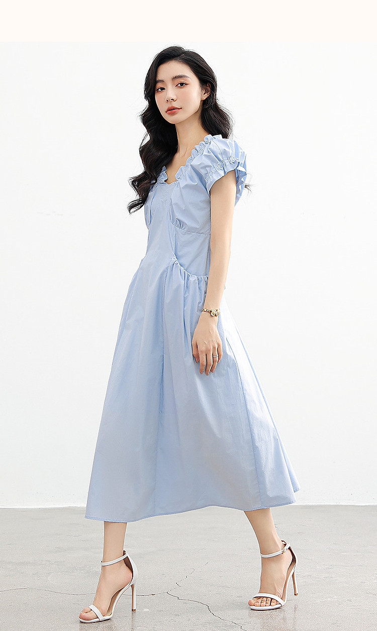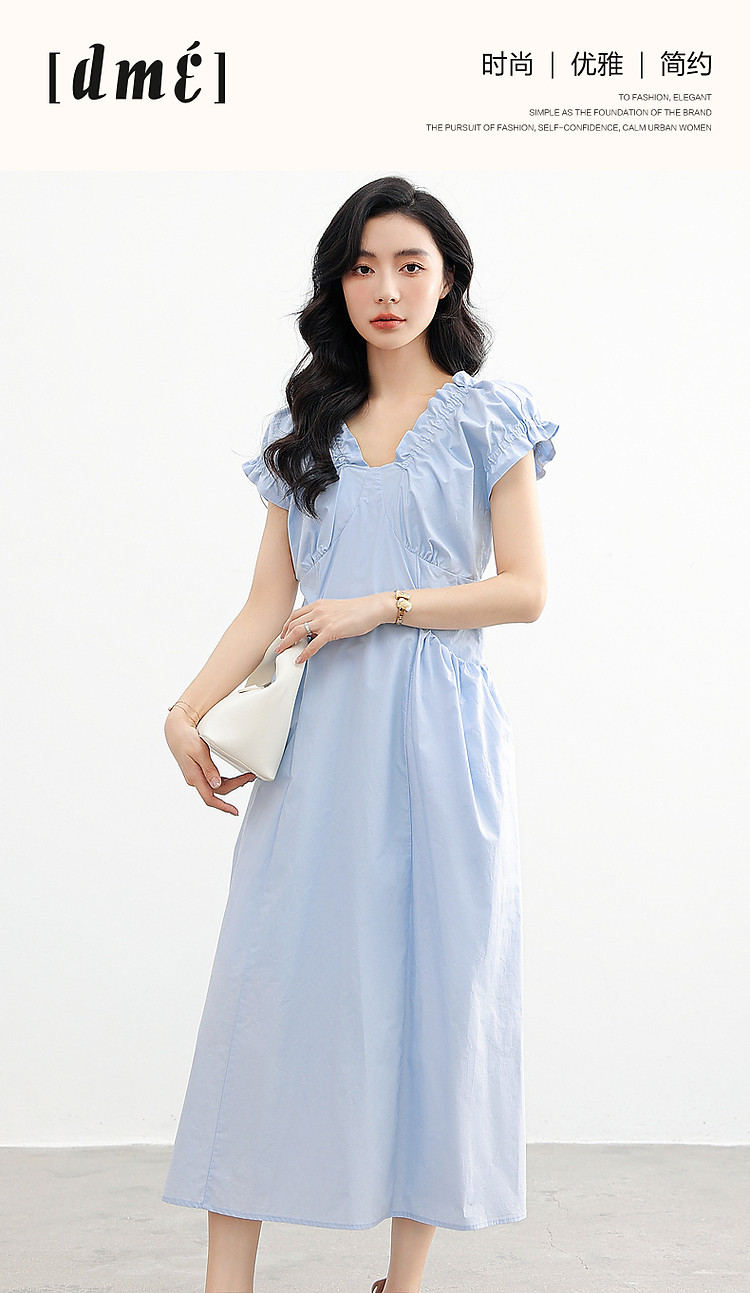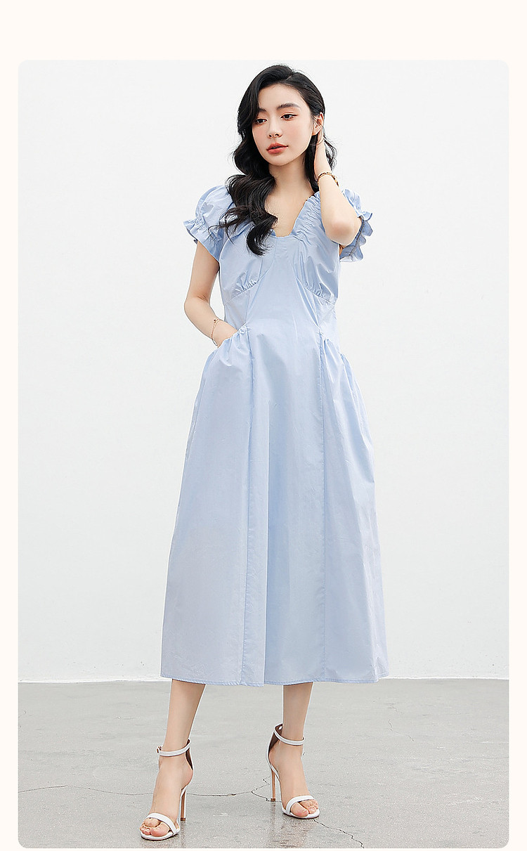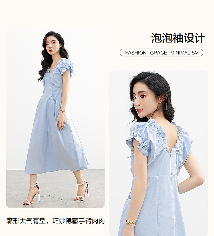 【上班穿搭】春秋呼吸感云柔棉舒适遮肉泡泡袖木耳边女式连衣裙 614977