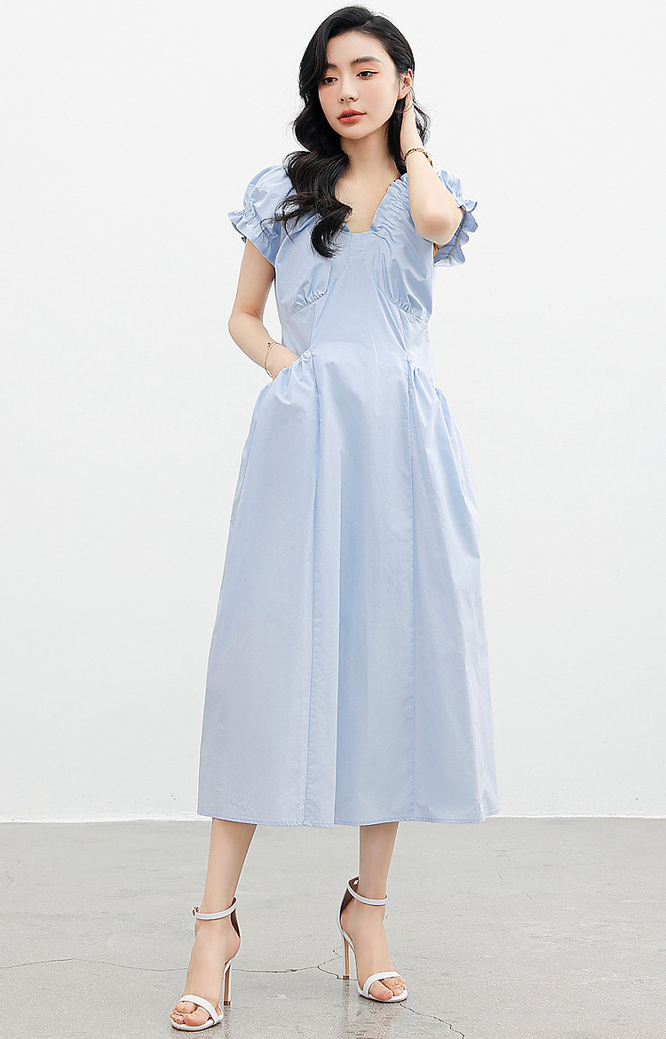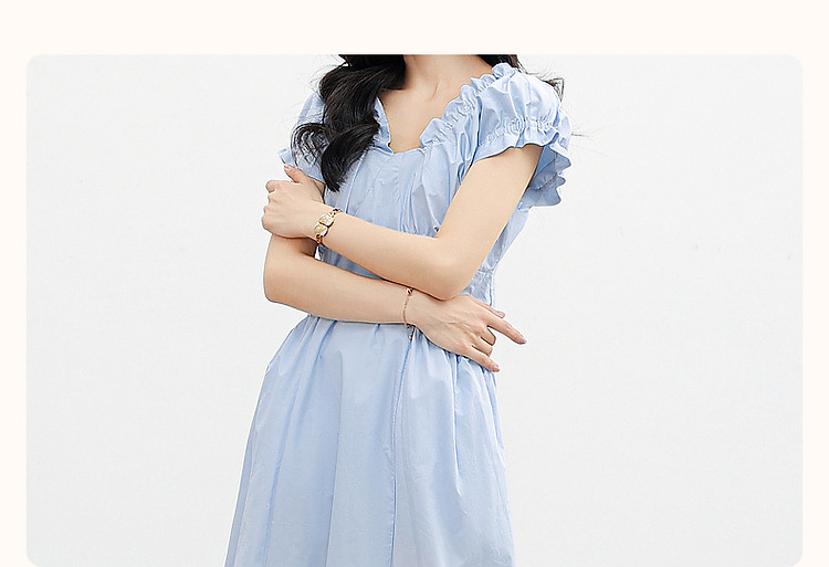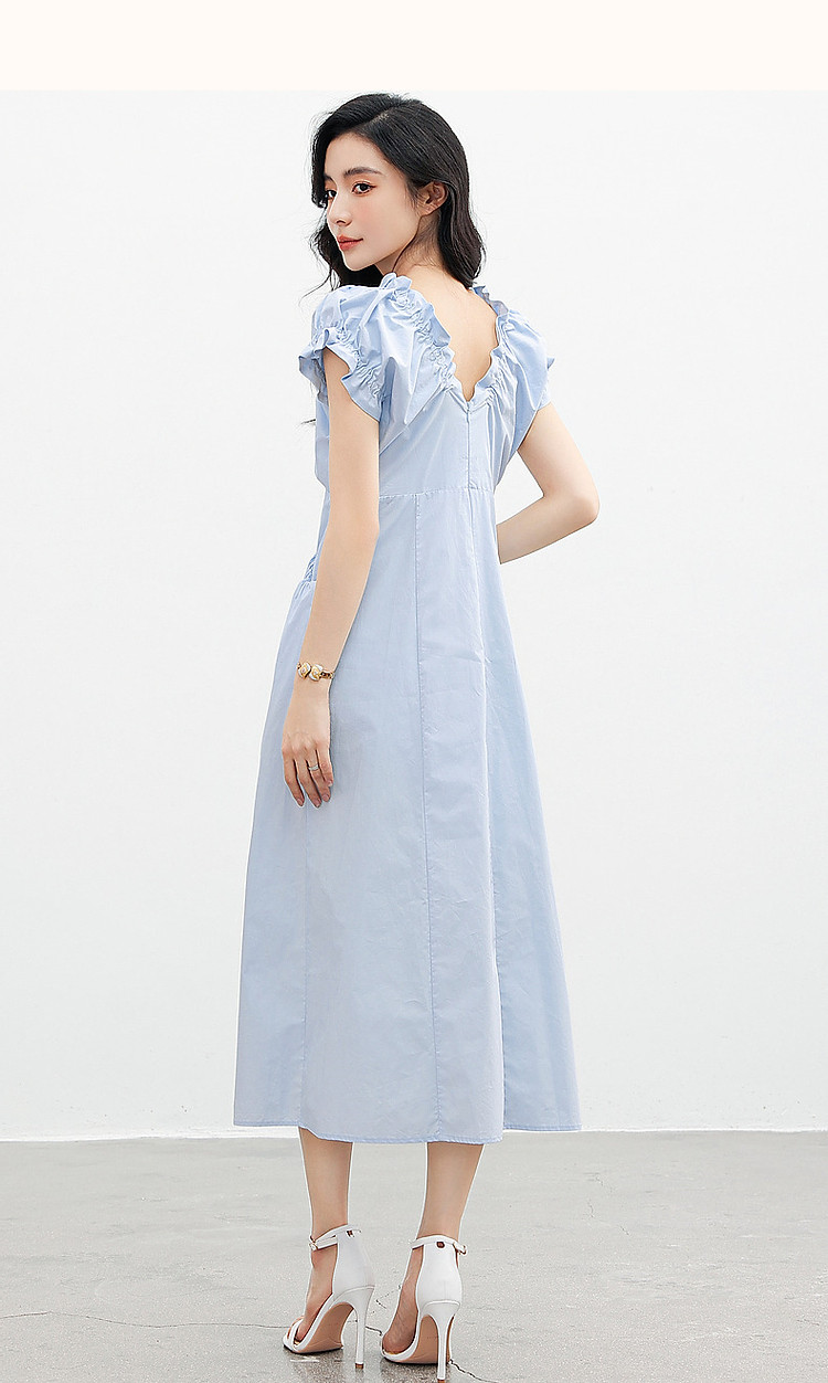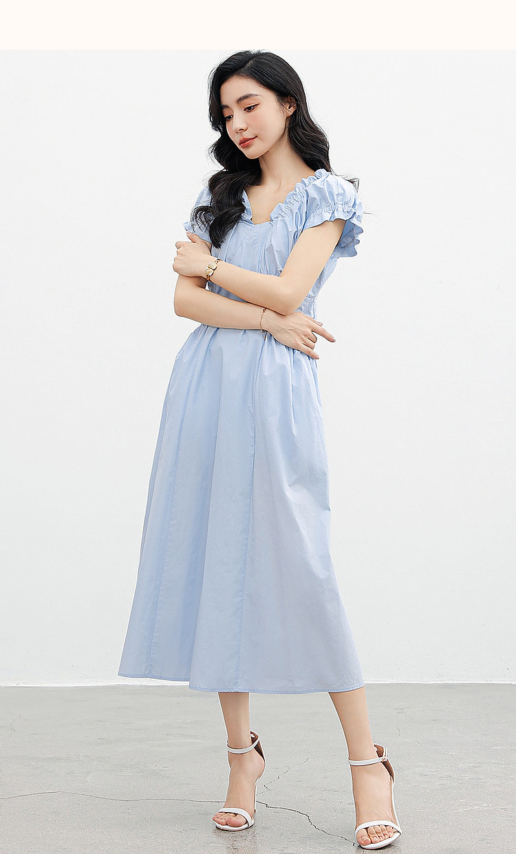 【上班穿搭】春秋呼吸感云柔棉舒适遮肉泡泡袖木耳边女式连衣裙 614977
