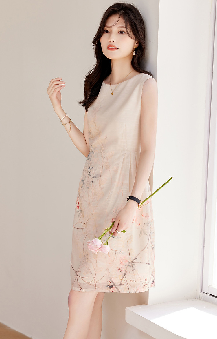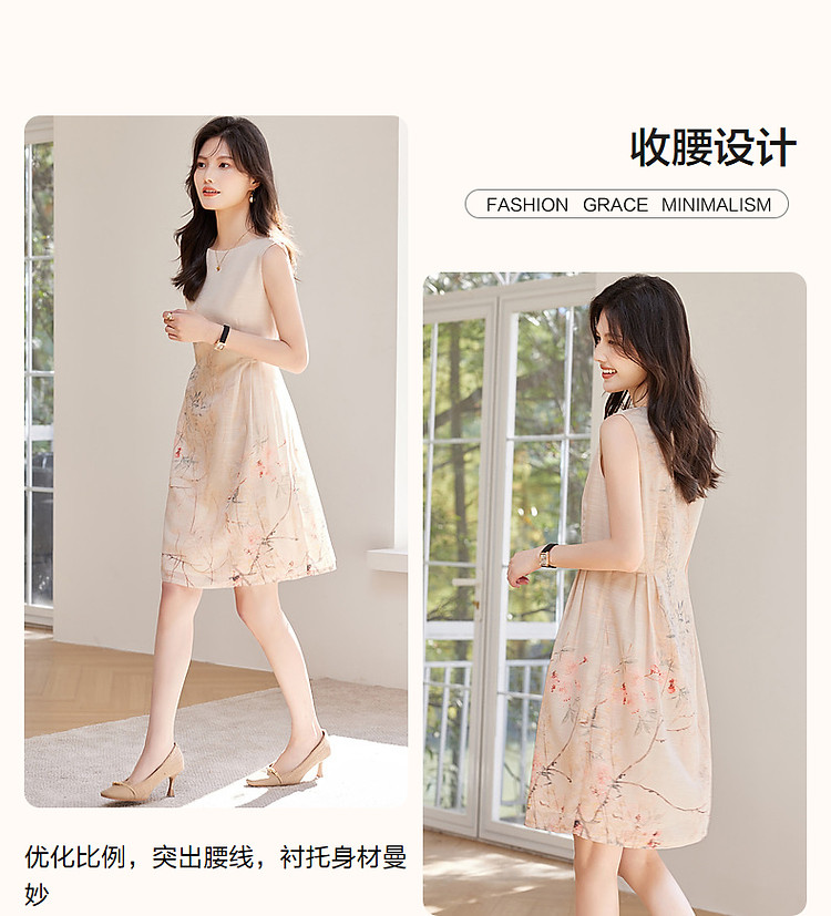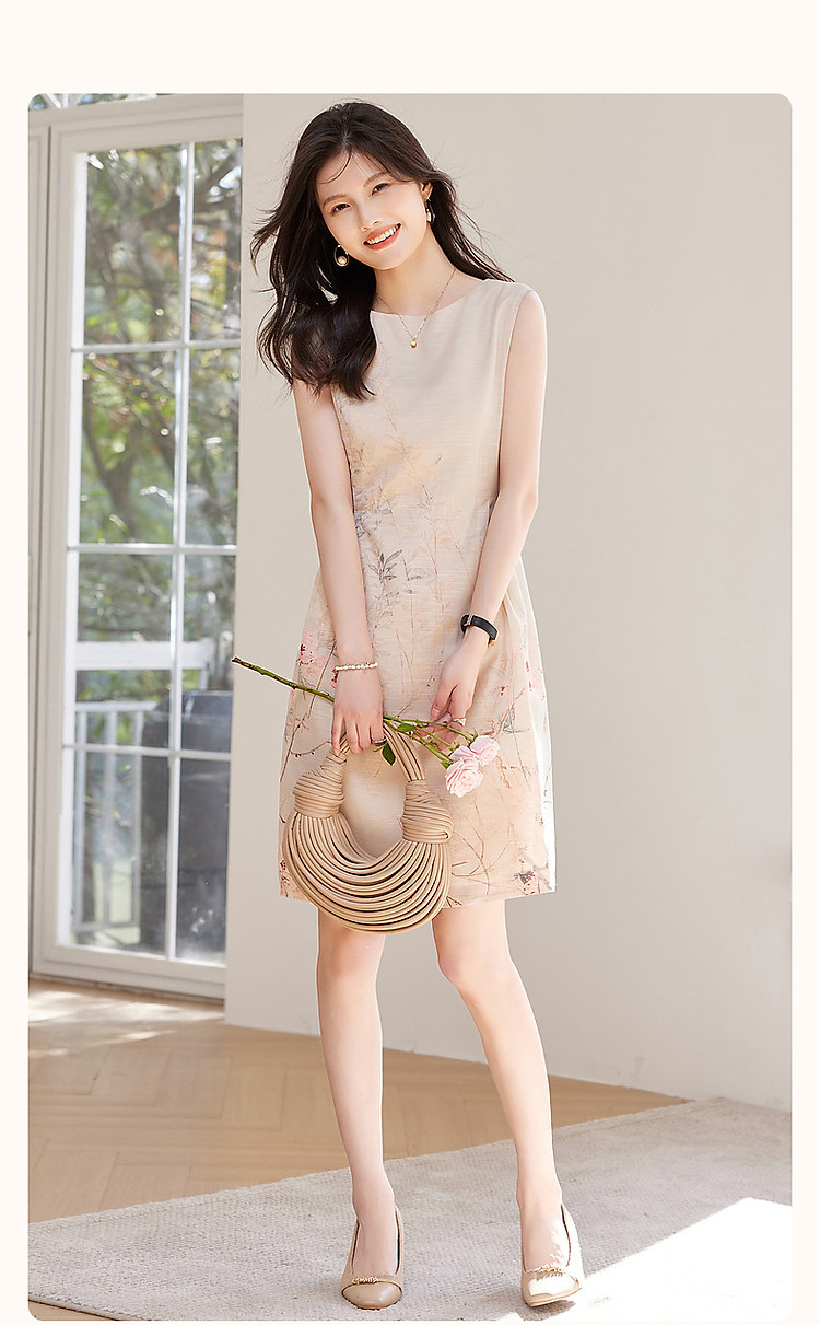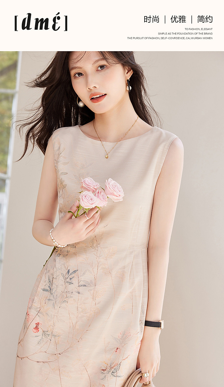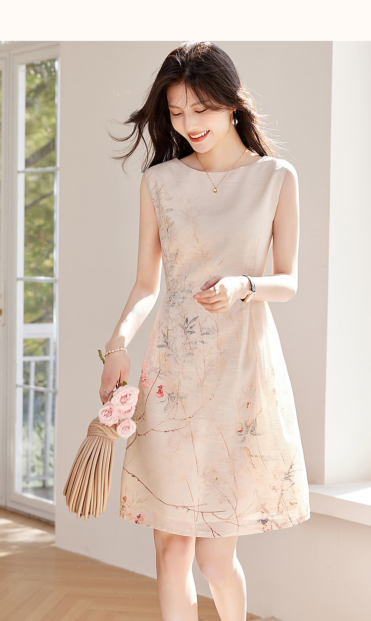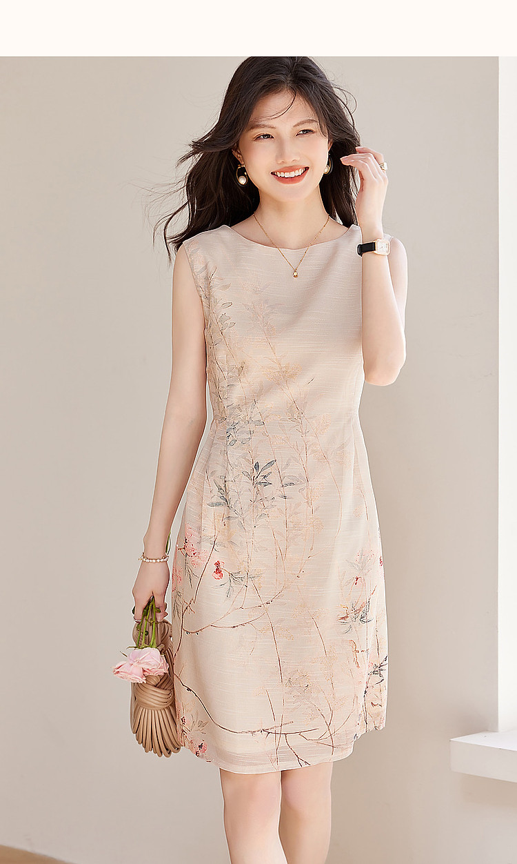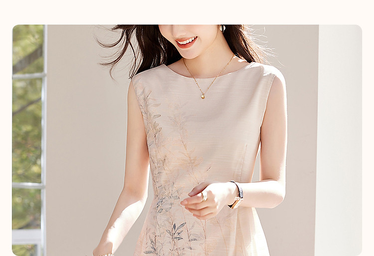 商品名称:【温柔预报员】春秋国风新中式清雅印花无袖背心裙修身连衣裙女 007873