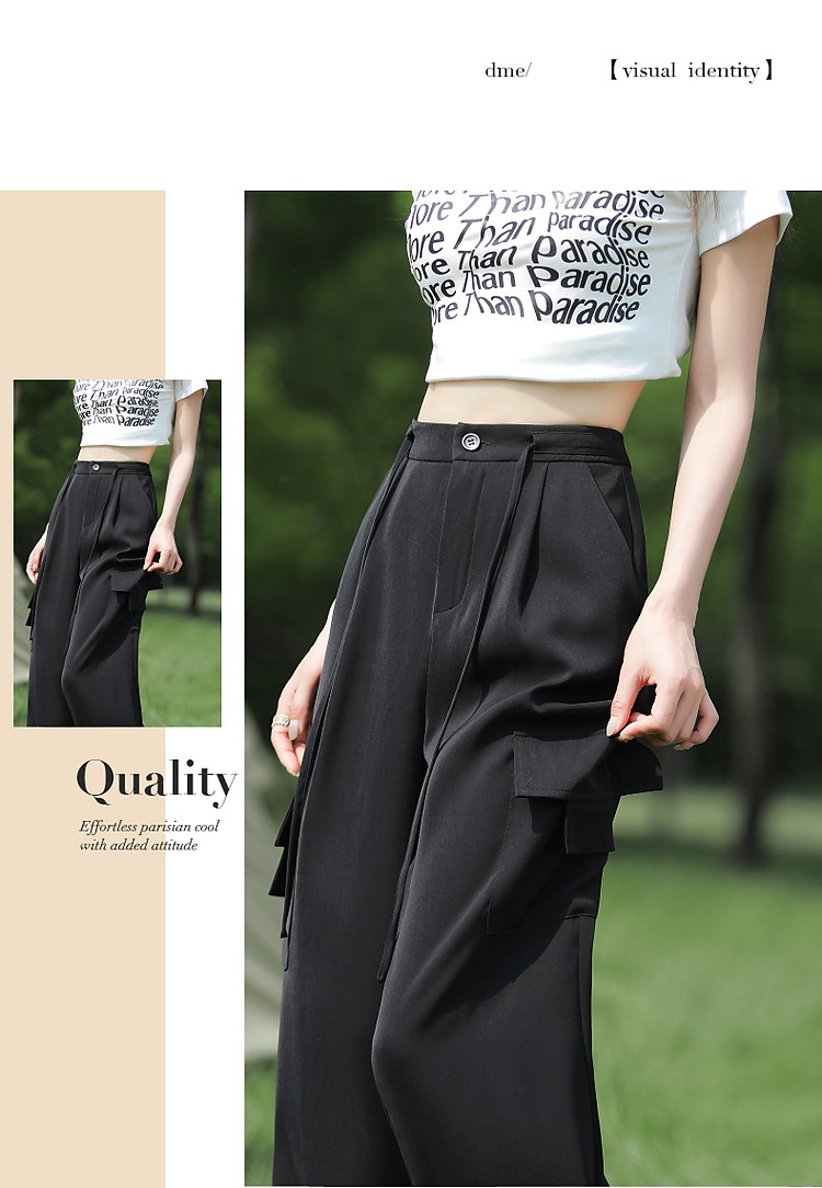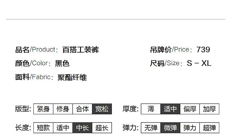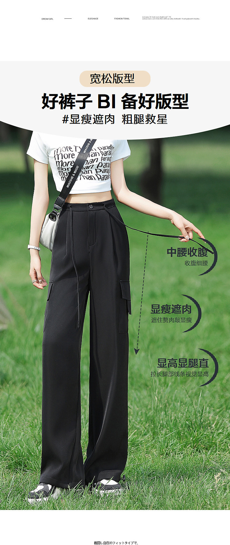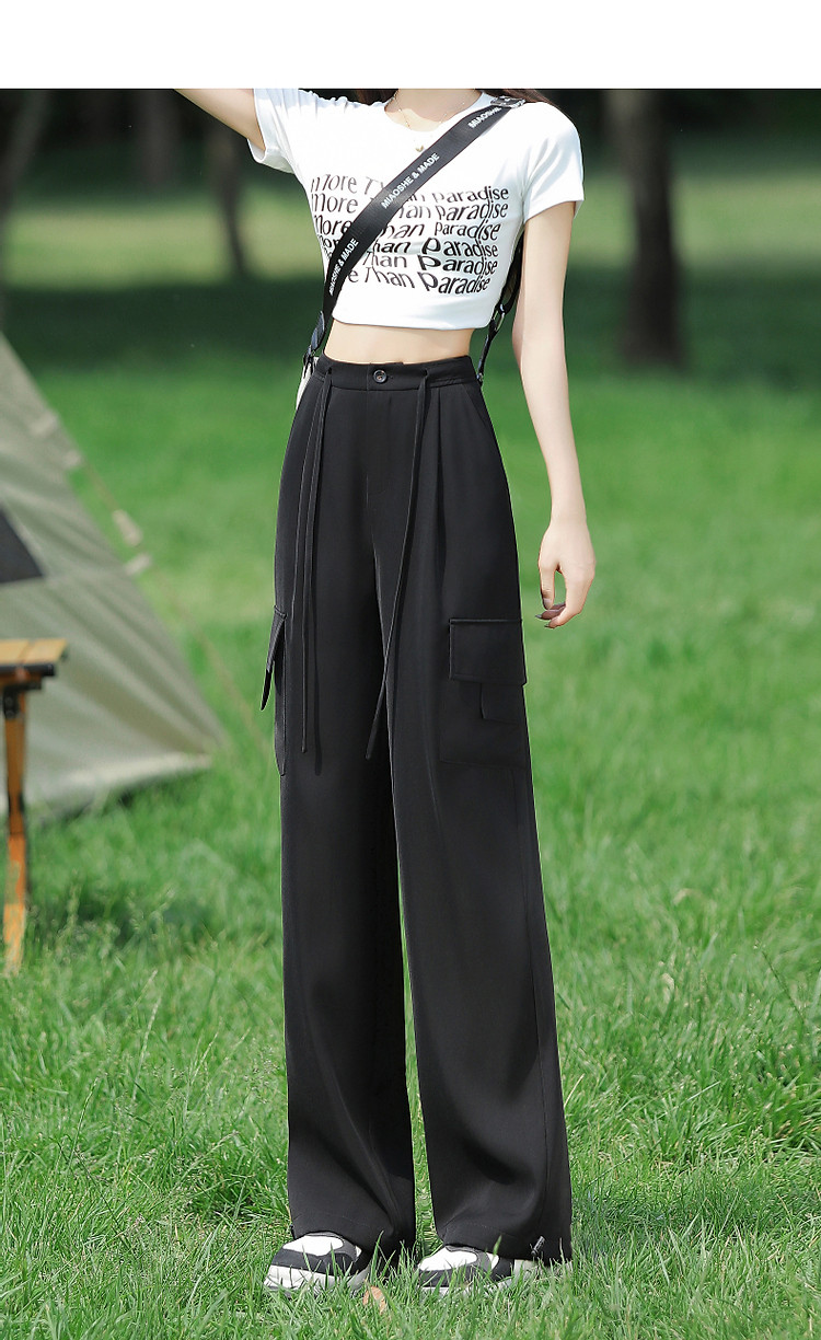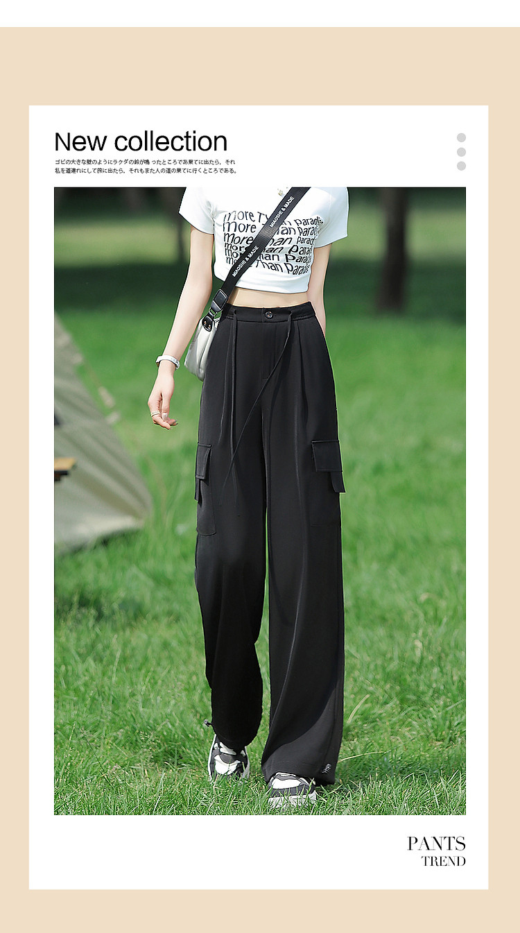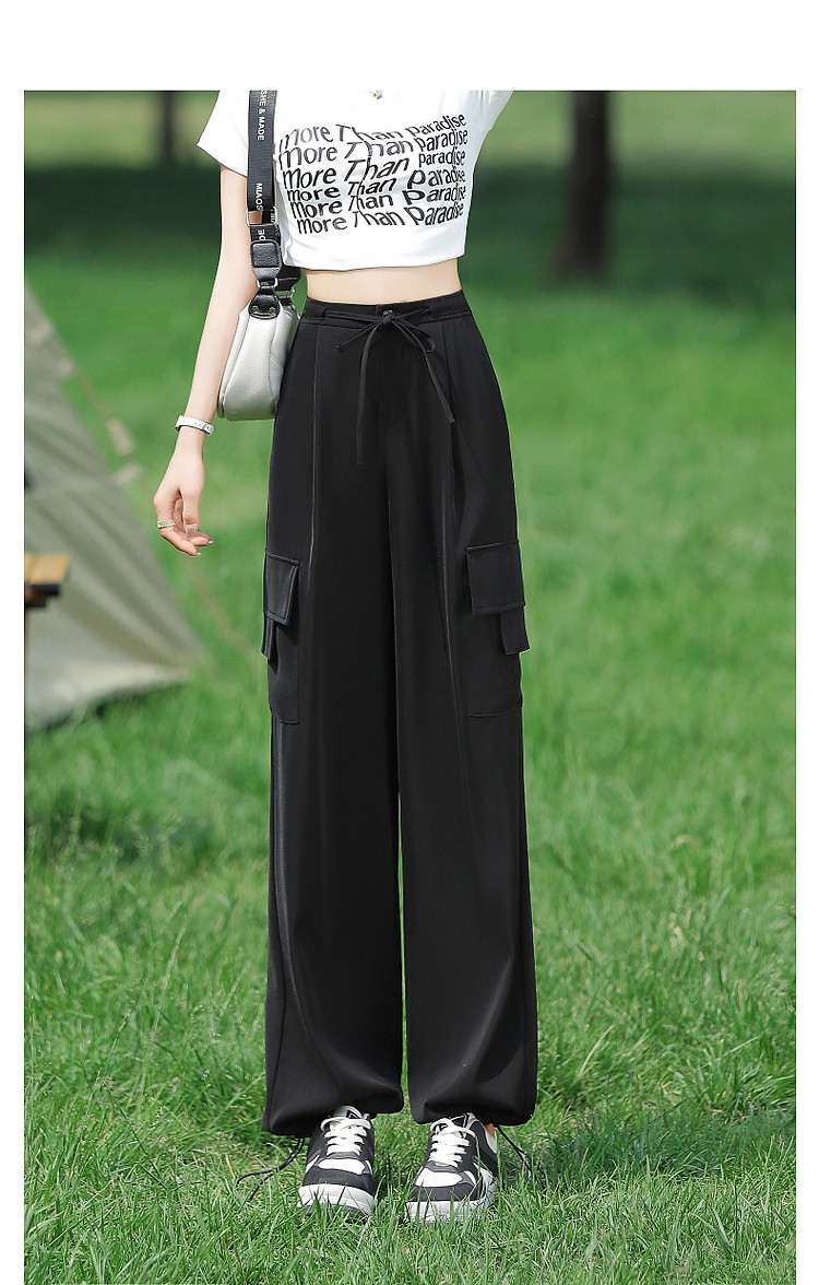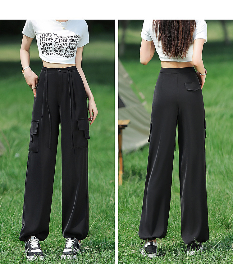商品名称:【甄选弹力双面缎】春秋新抽绳束脚工装裤微弹长裤贴袋休闲裤子女 485505