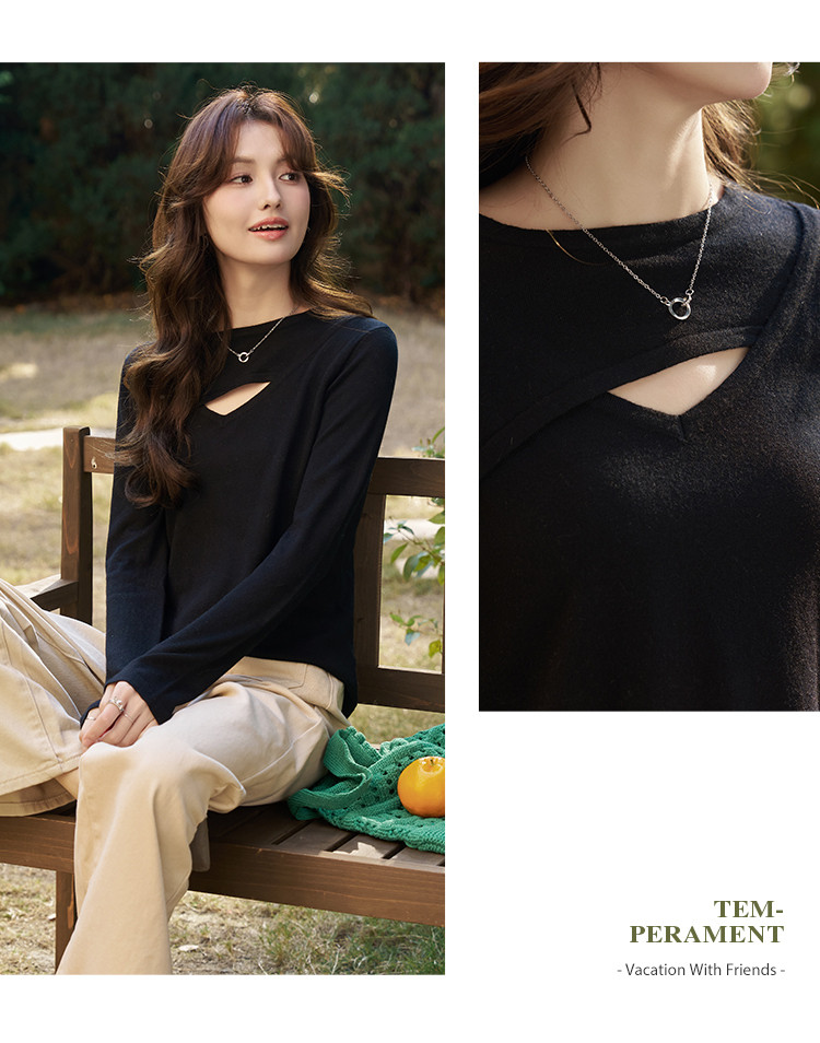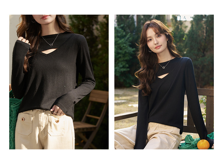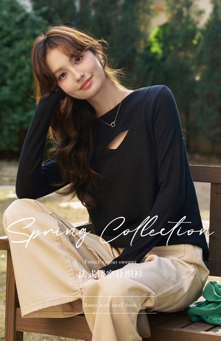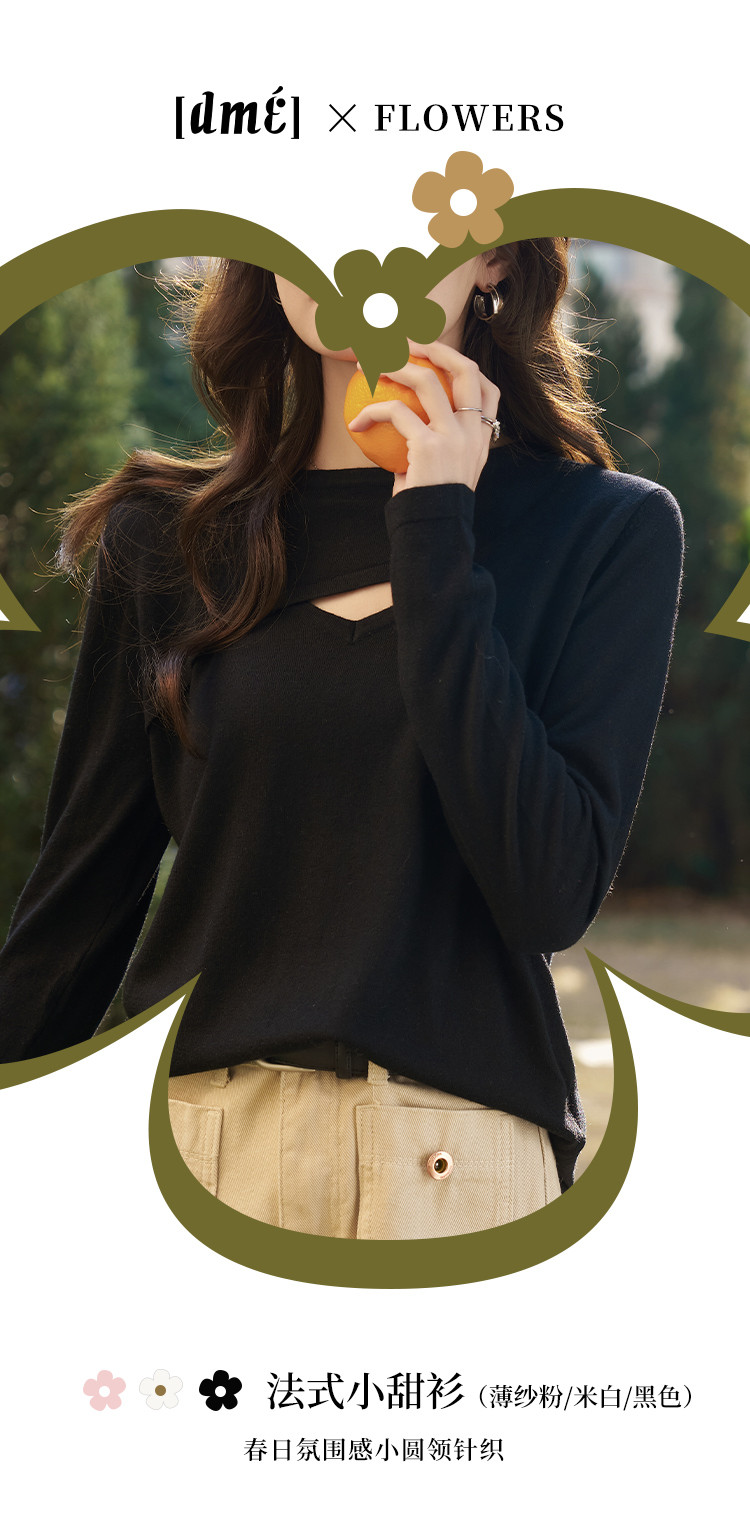 【法式小甜衫】圆领镂空减龄显瘦轻氧感气质甜美保暖打底针织衫女 840513
