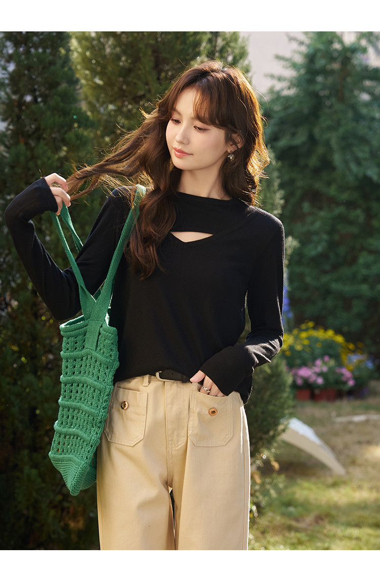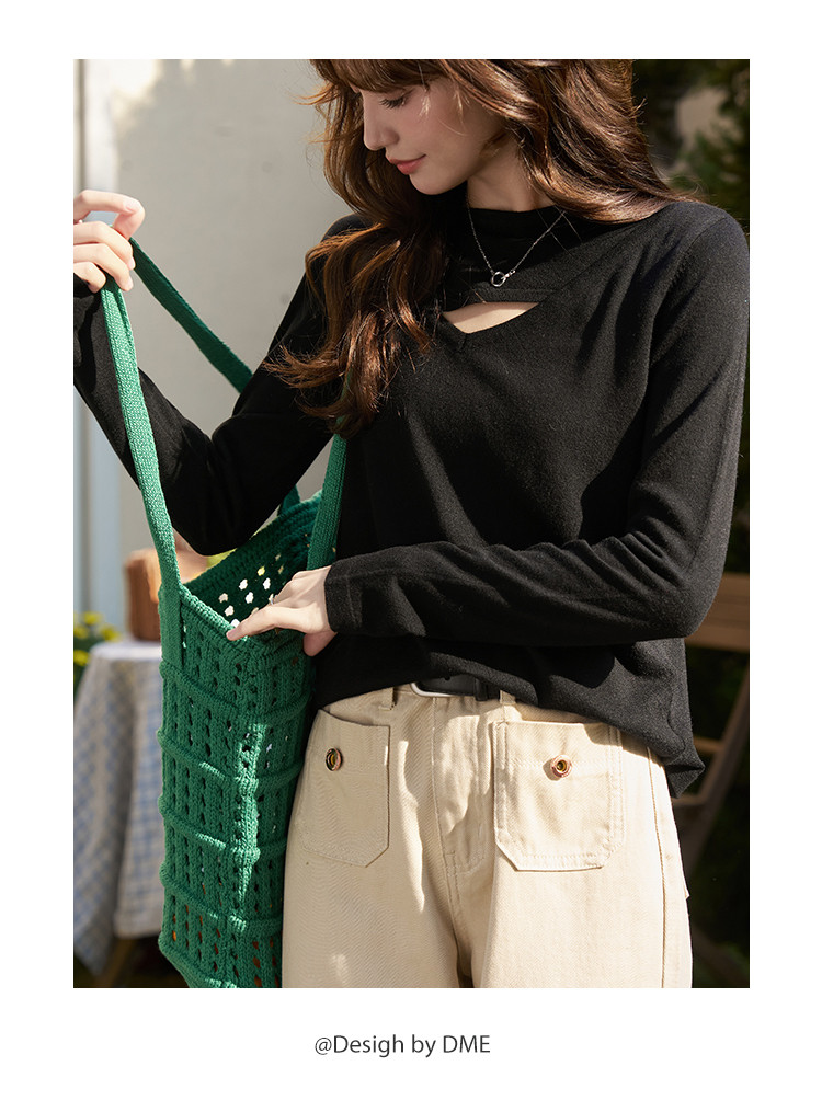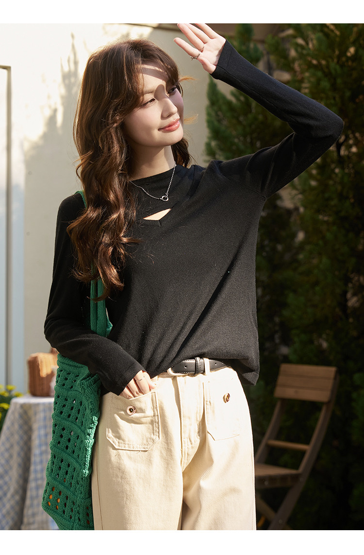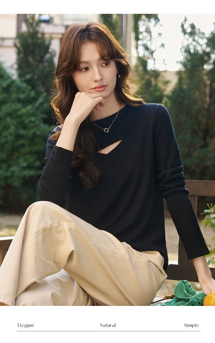 【法式小甜衫】圆领镂空减龄显瘦轻氧感气质甜美保暖打底针织衫女 840513