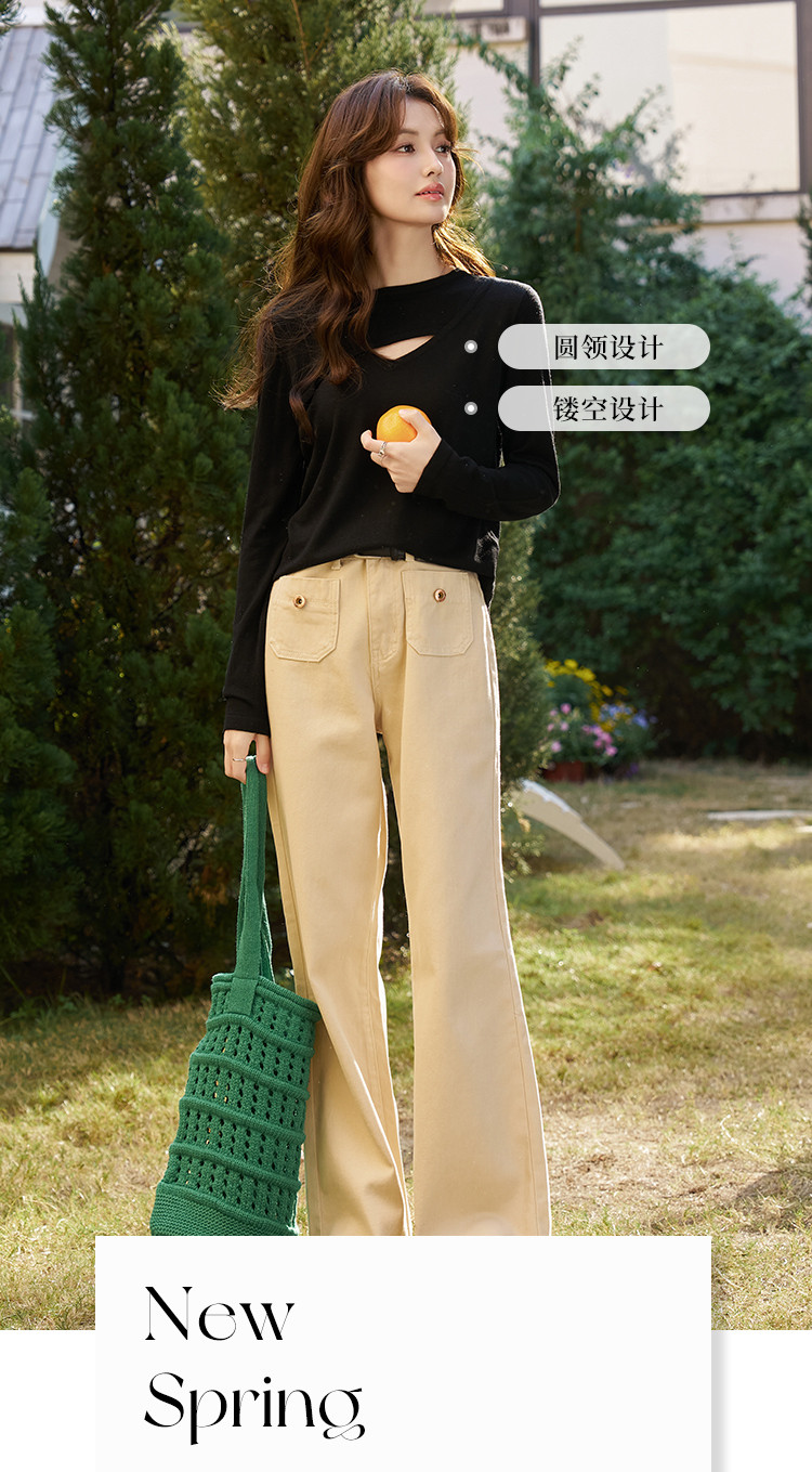 商品名称:【法式小甜衫】圆领镂空减龄显瘦轻氧感气质甜美保暖打底针织衫女 840513