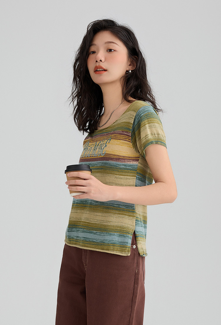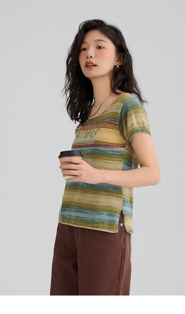 【落日海岸针织衫】夏款海岛度假渐变针织显瘦小众上衣女 909826