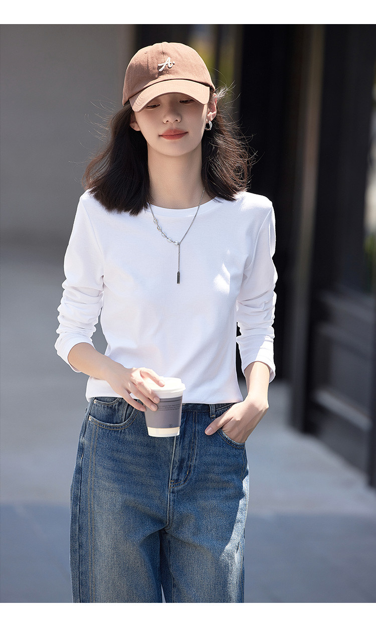 【经典简约T恤】春款圆领套头基础打底长袖T恤女 897154