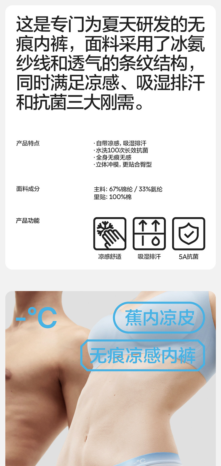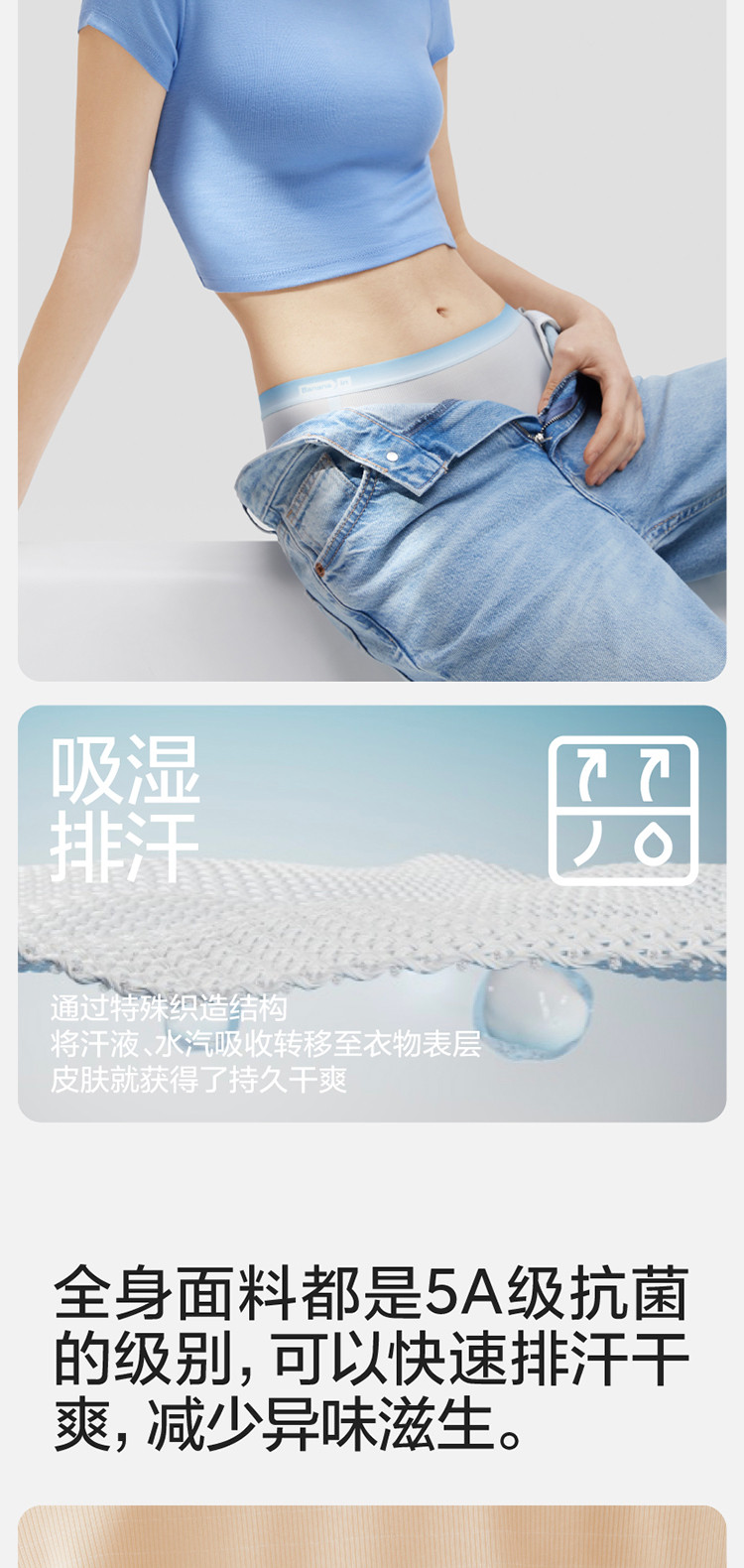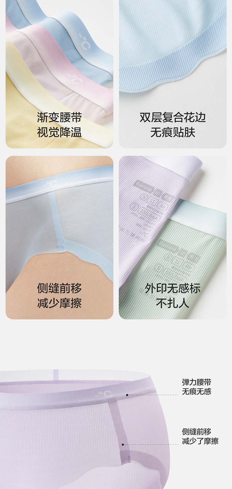 商品名称:银皮511A女士内裤凉感冰丝无痕透气舒适简约中高腰三角内裤女 705733
