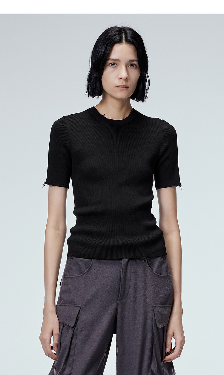 秋毛针织衫圆领短袖毛衫女 760075