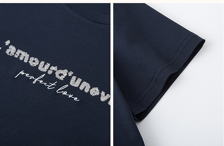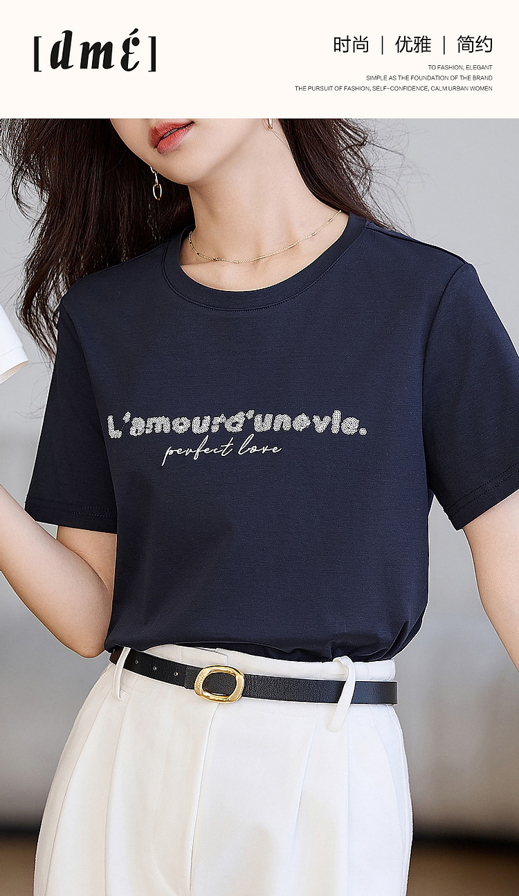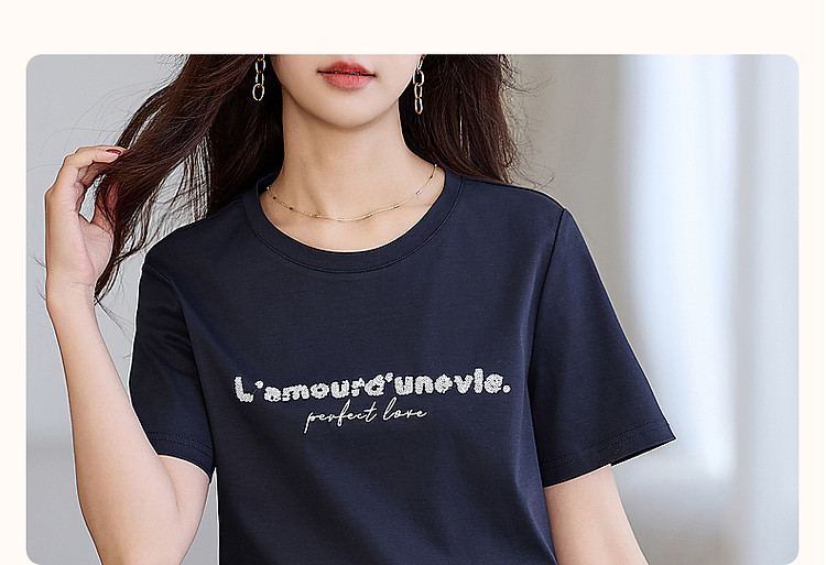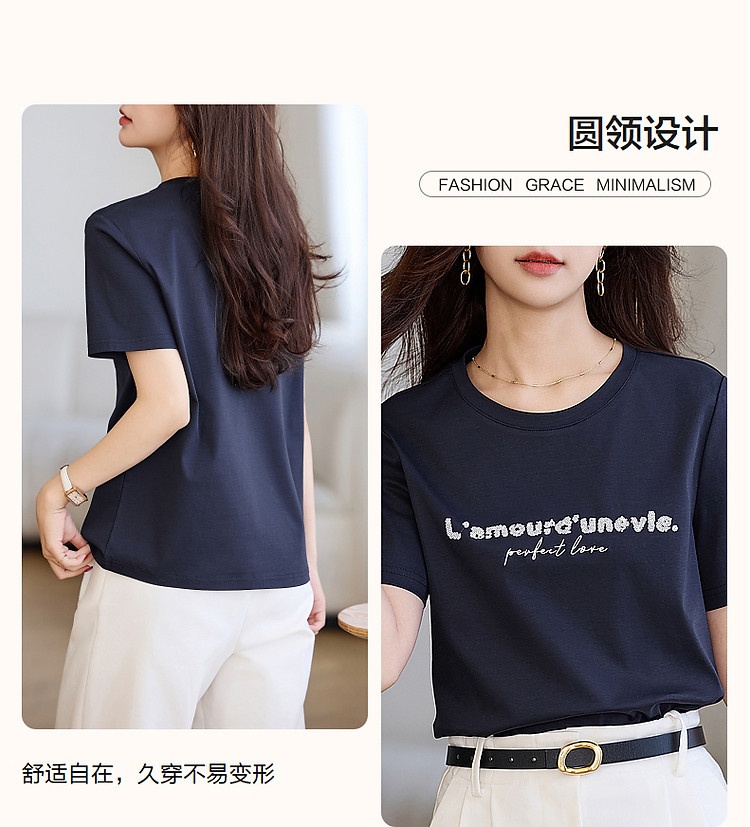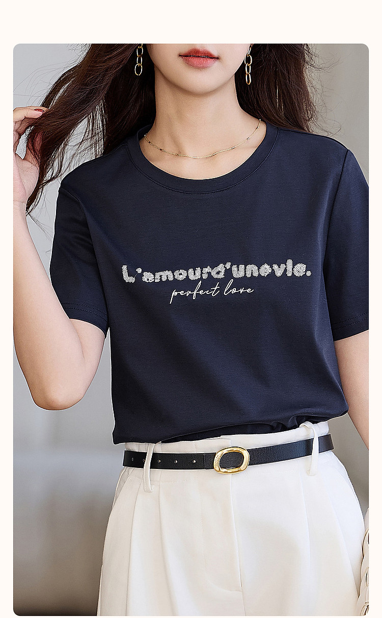 商品名称:【都市时髦棉氨t恤】春秋新圆领弹力短袖女字母珠片绣花女式t恤 227137