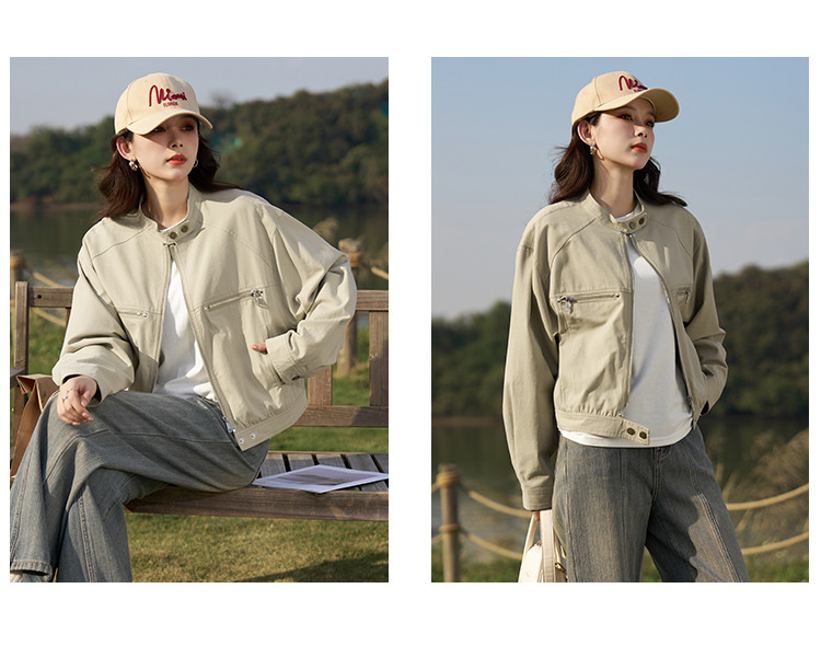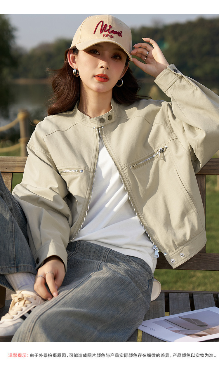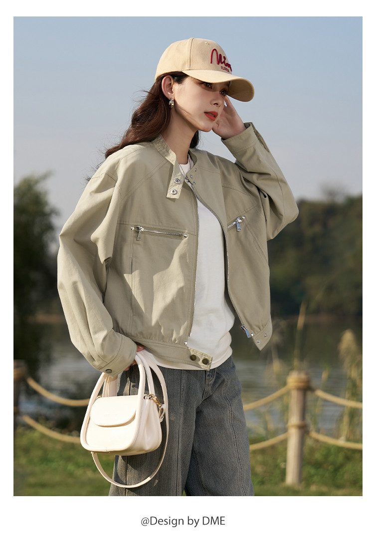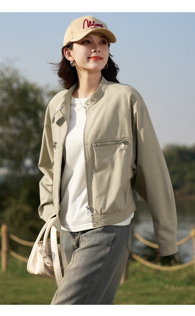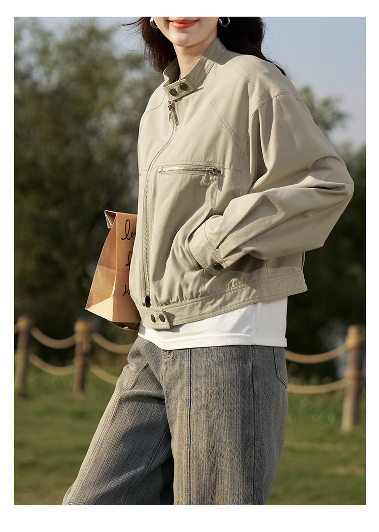 【莱赛尔棉混纺】春秋甜酷大口袋立领BF风休闲工装夹克女式外套 657409