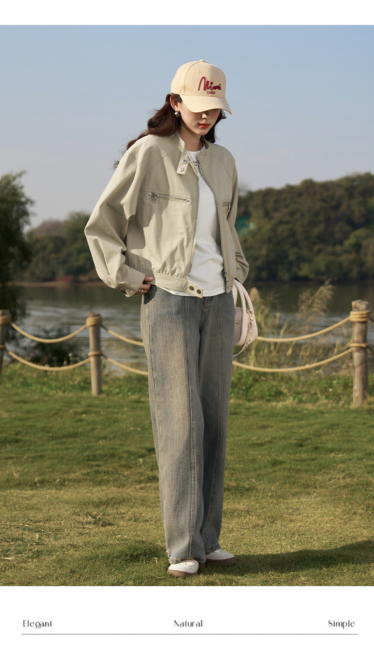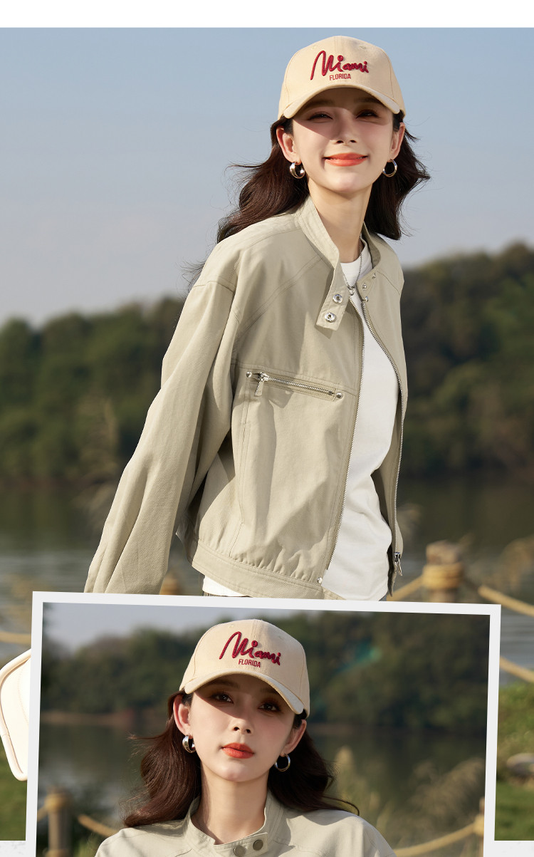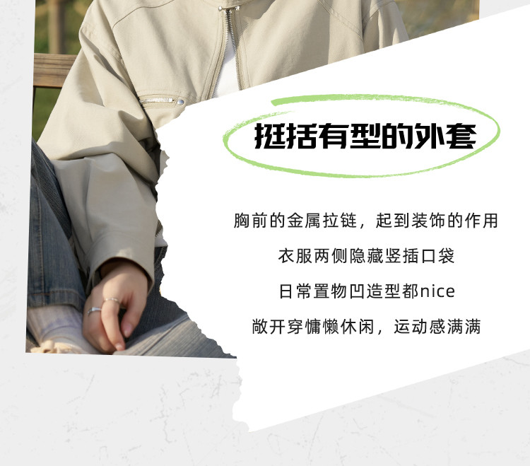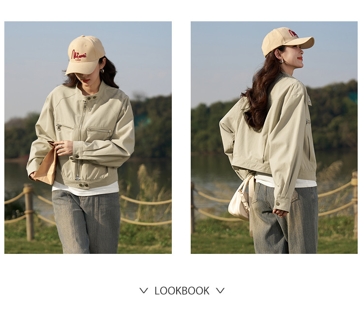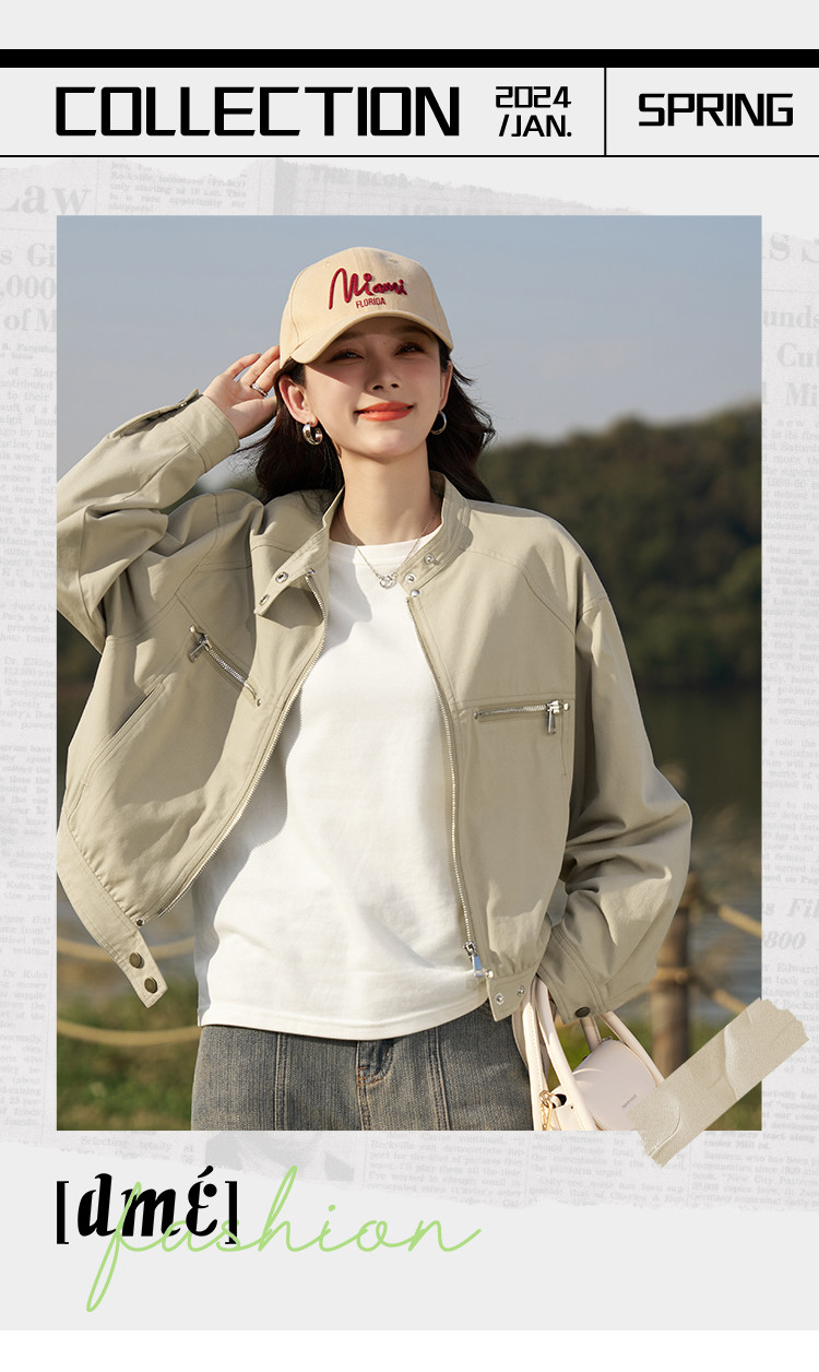 【莱赛尔棉混纺】春秋甜酷大口袋立领BF风休闲工装夹克女式外套 657409