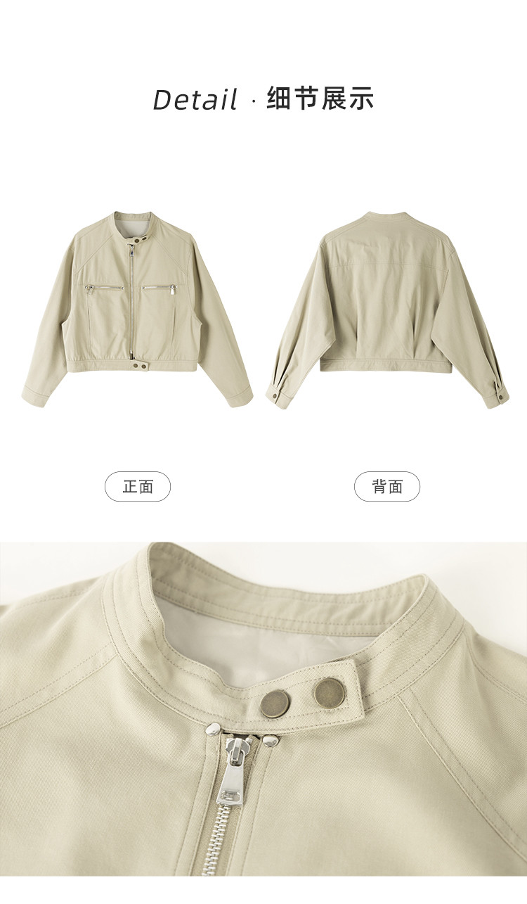 商品名称:【莱赛尔棉混纺】春秋甜酷大口袋立领BF风休闲工装夹克女式外套 657409