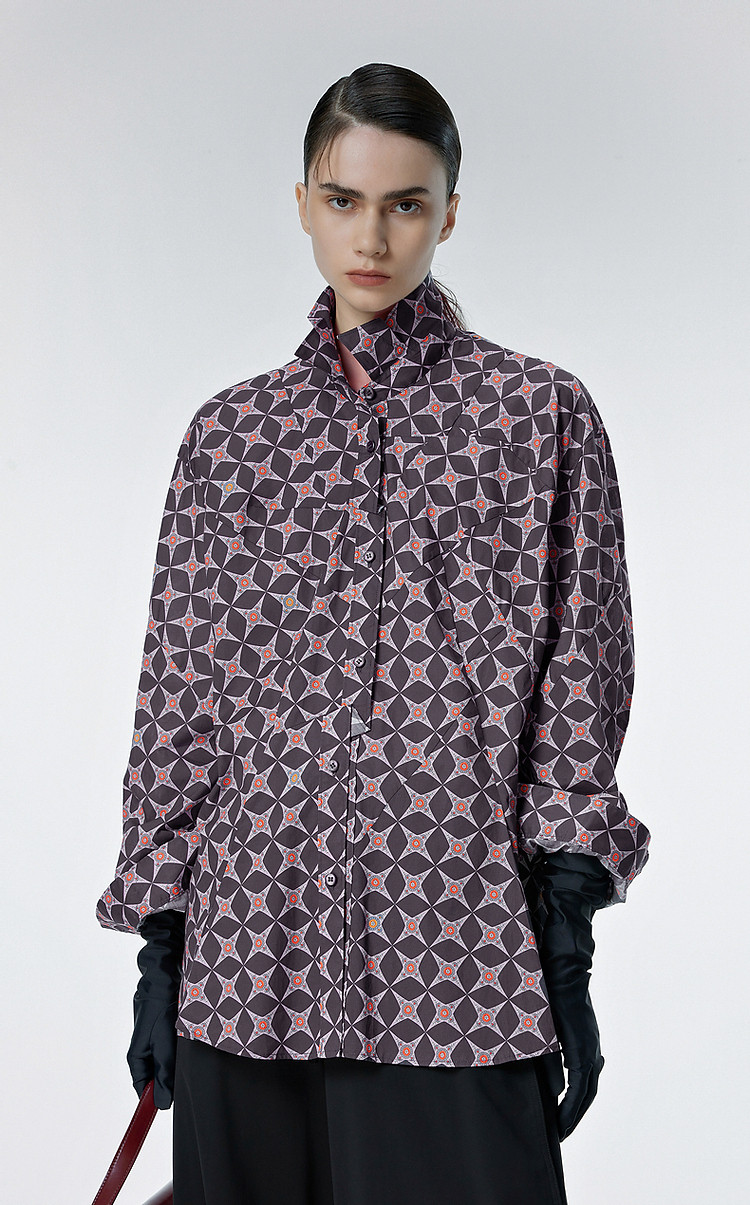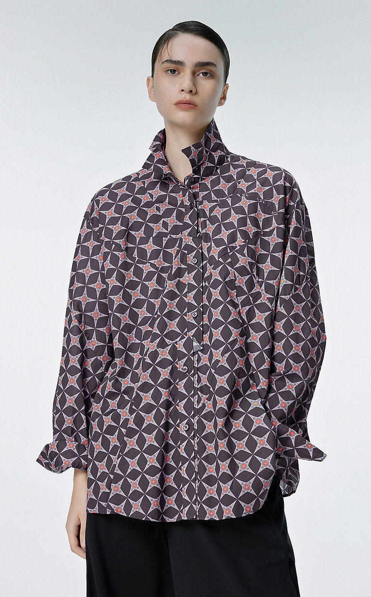 商品名称:秋衬衫棉质宽松印花上衣女 362507
