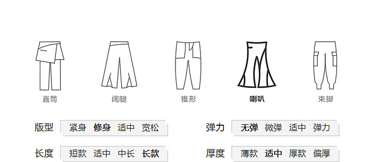商品名称:秋喇叭裤休闲通勤修身九分裤子女 695819