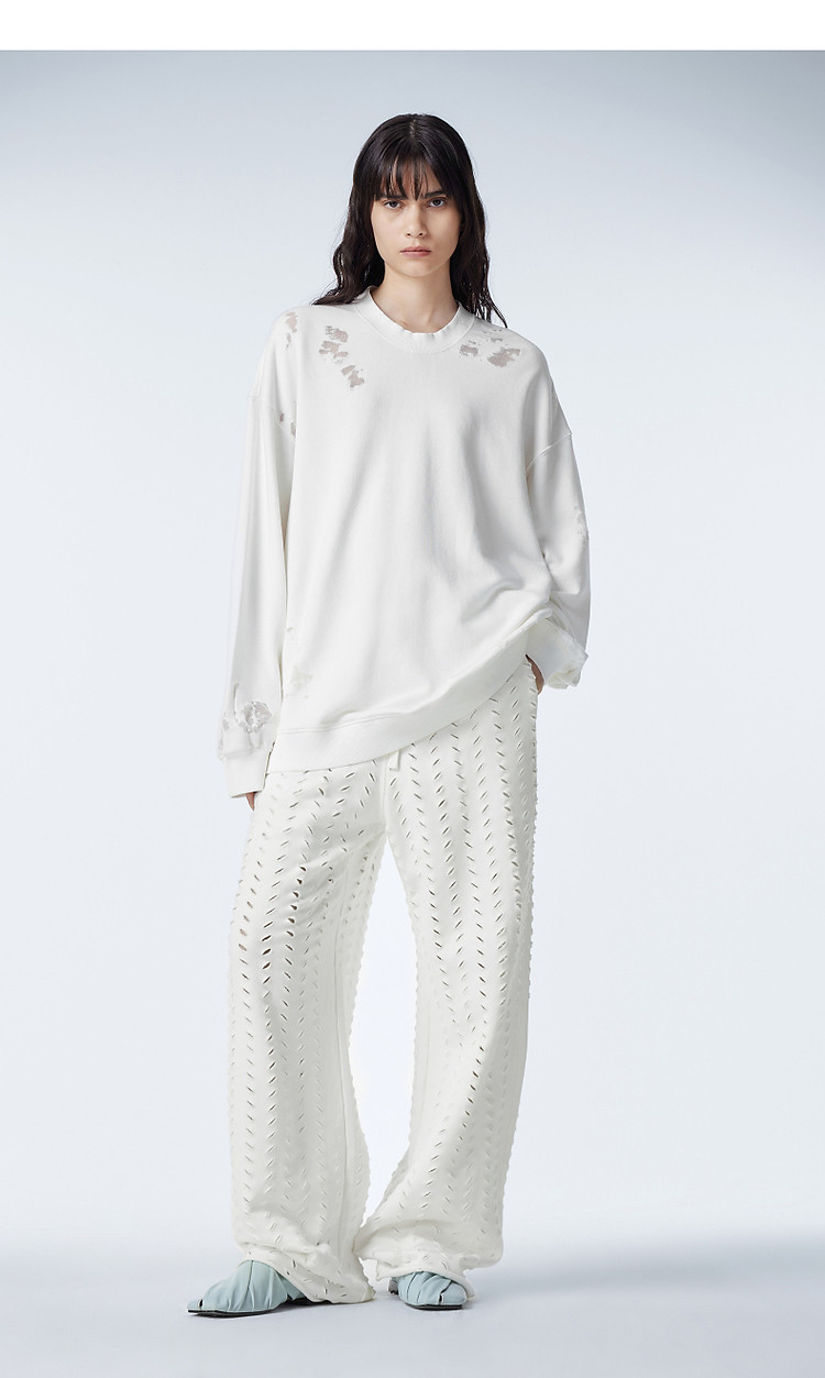 玖姿旗下安娜蔻系列休闲风宽松手工钉珠花朵连帽卫衣女春季 382412