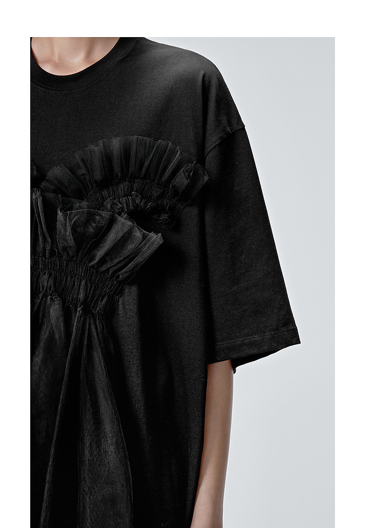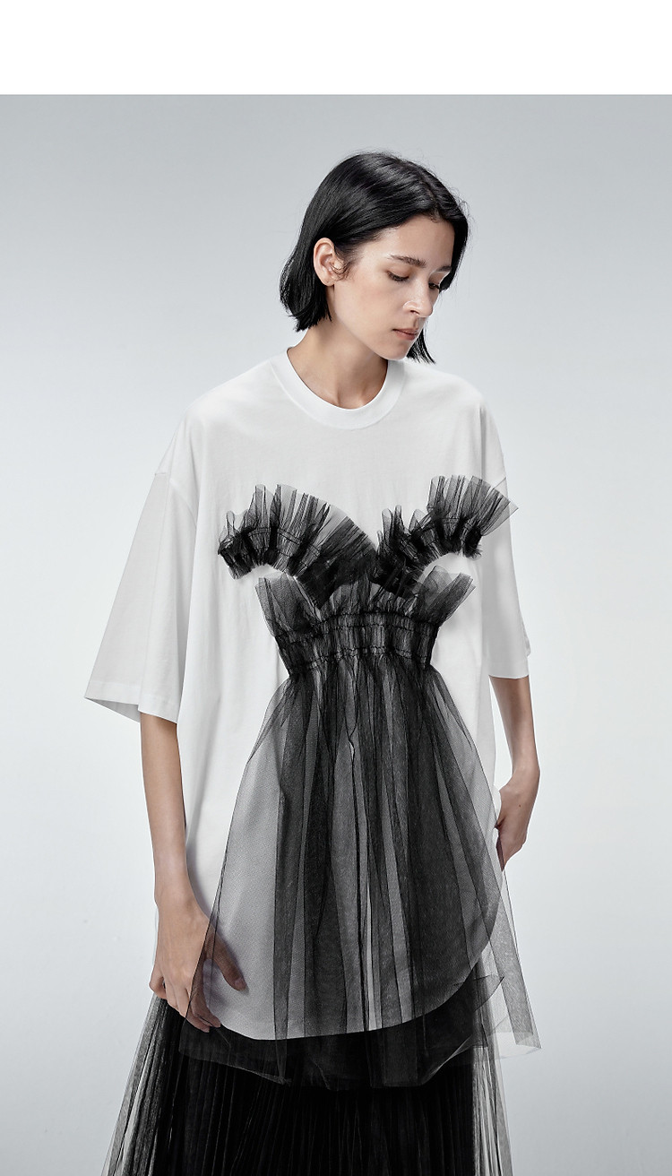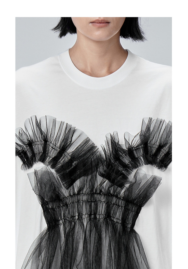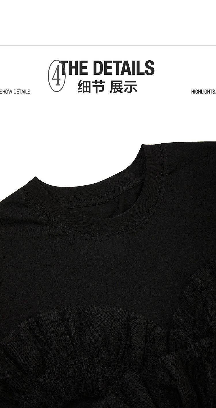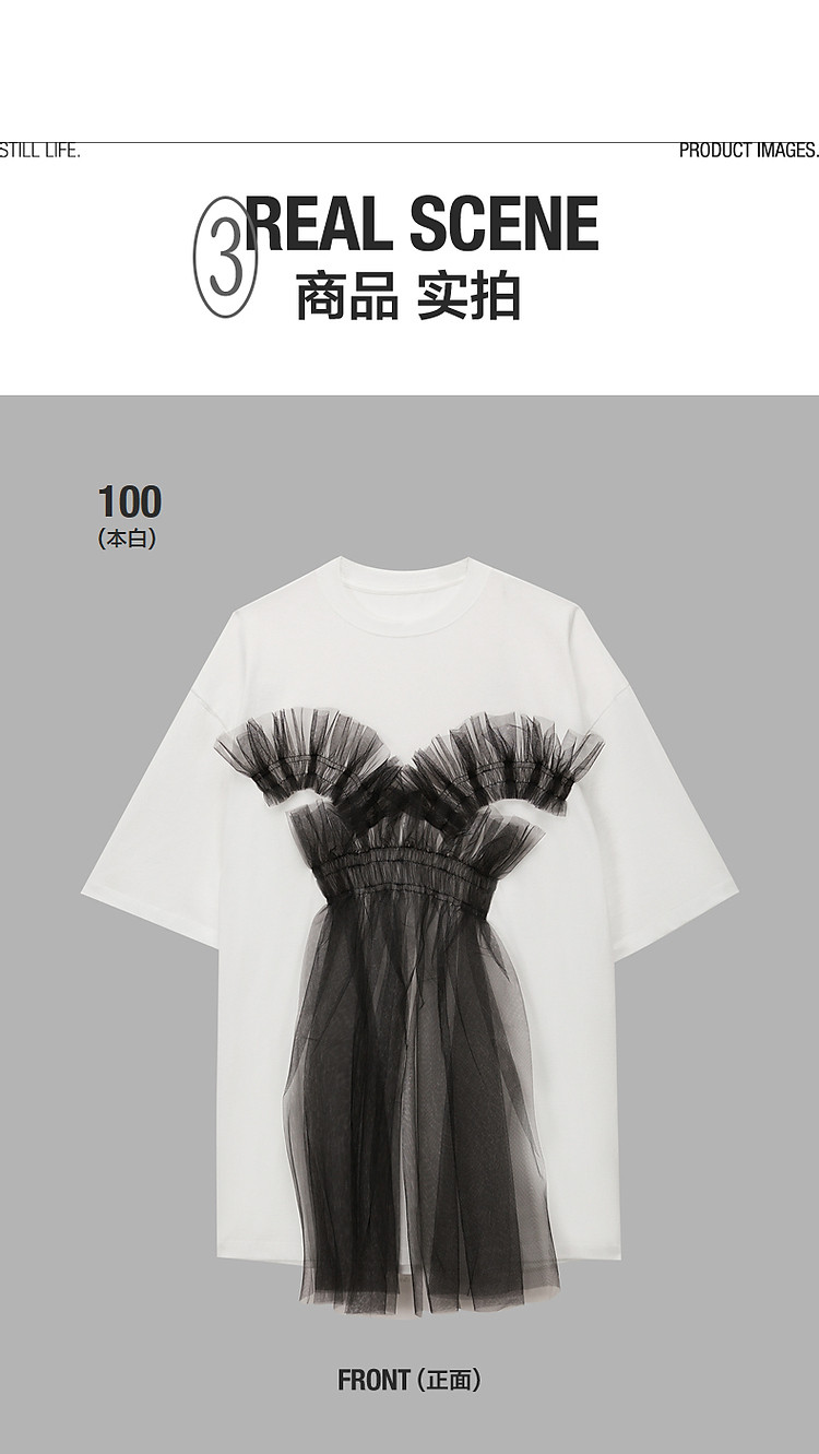 商品名称:秋T恤棉质宽松拼接网纱上衣女 617291