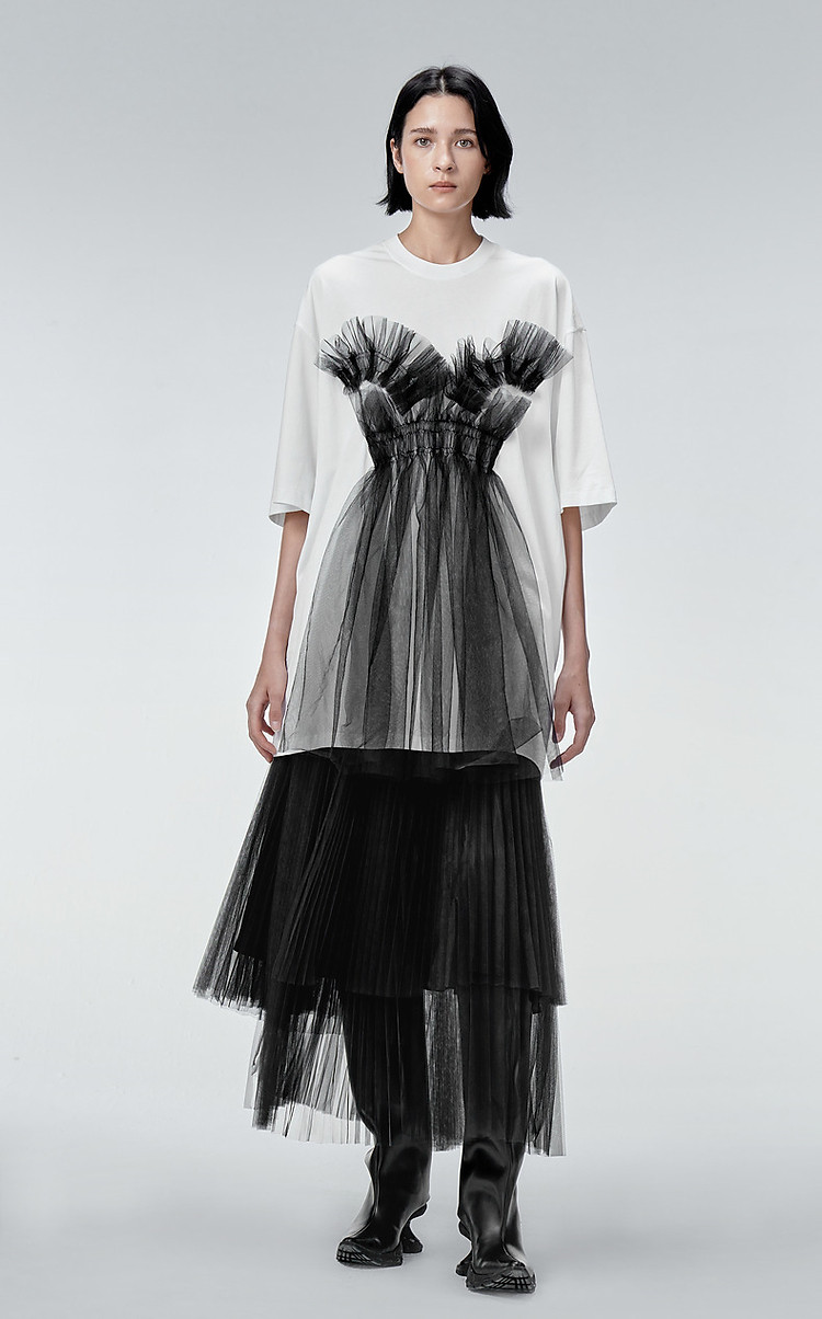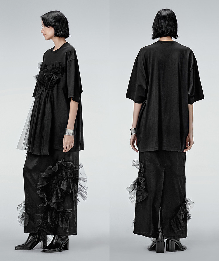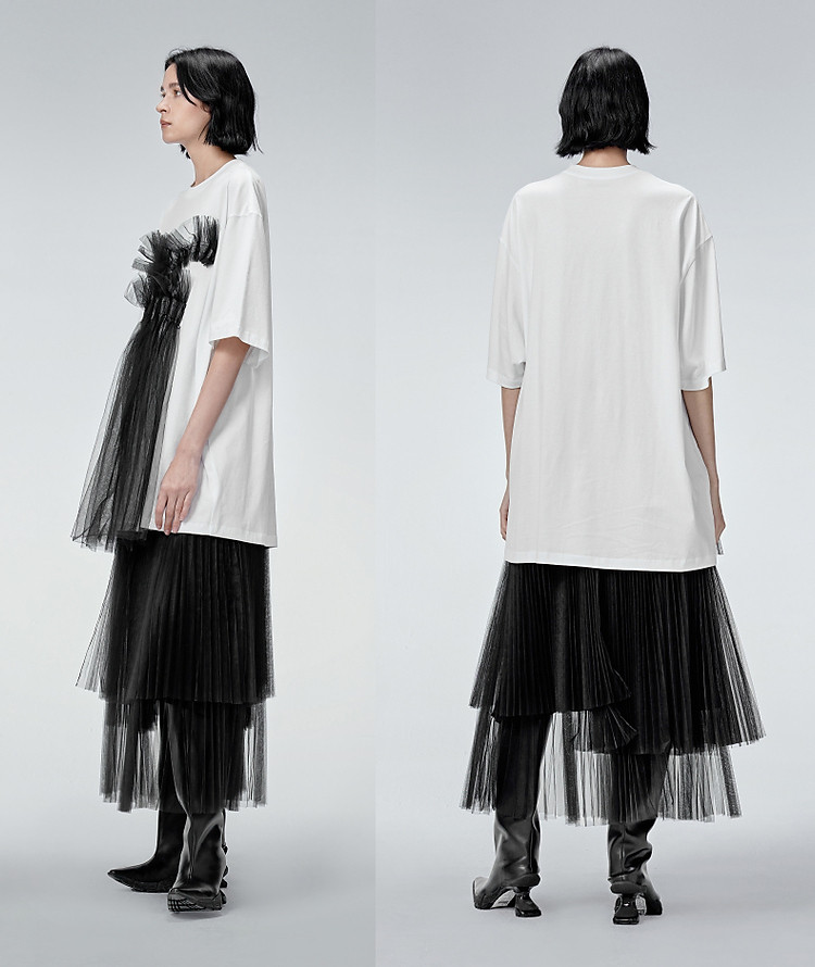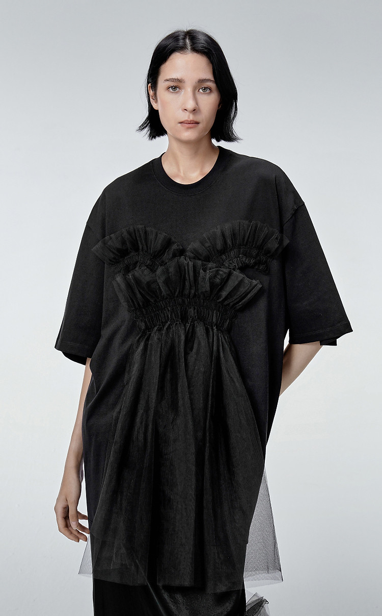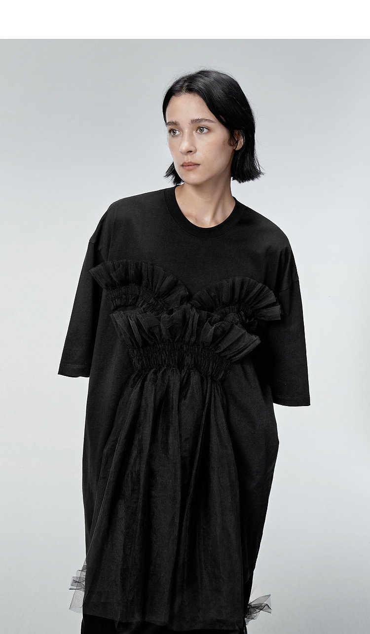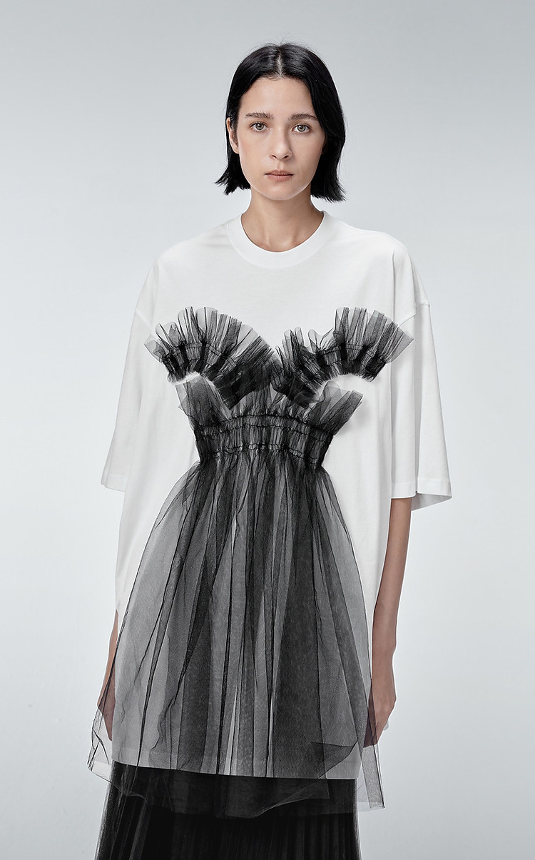 商品名称:秋T恤棉质宽松拼接网纱上衣女 617291