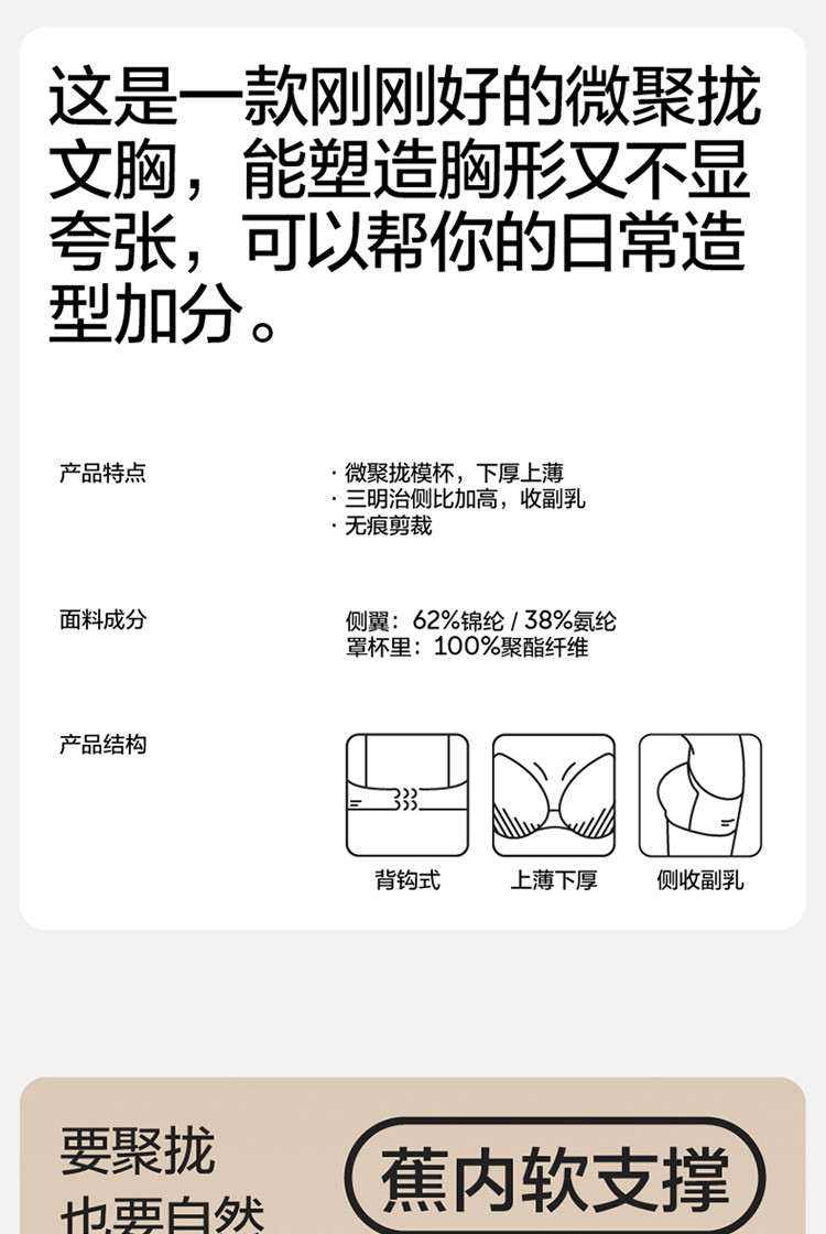 商品名称:【明星同款】501P内衣小胸聚拢防下垂收副乳文胸无钢圈胸罩 085253