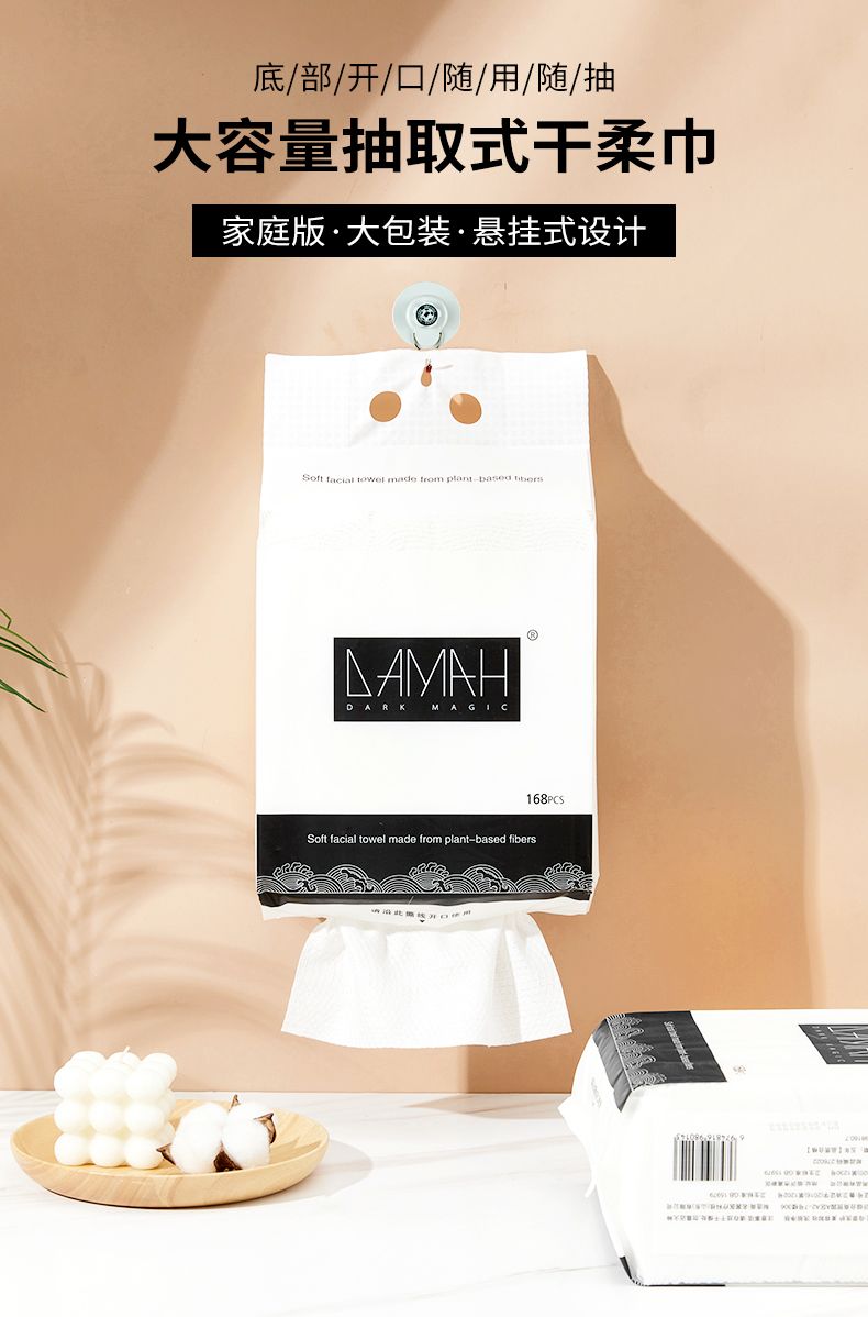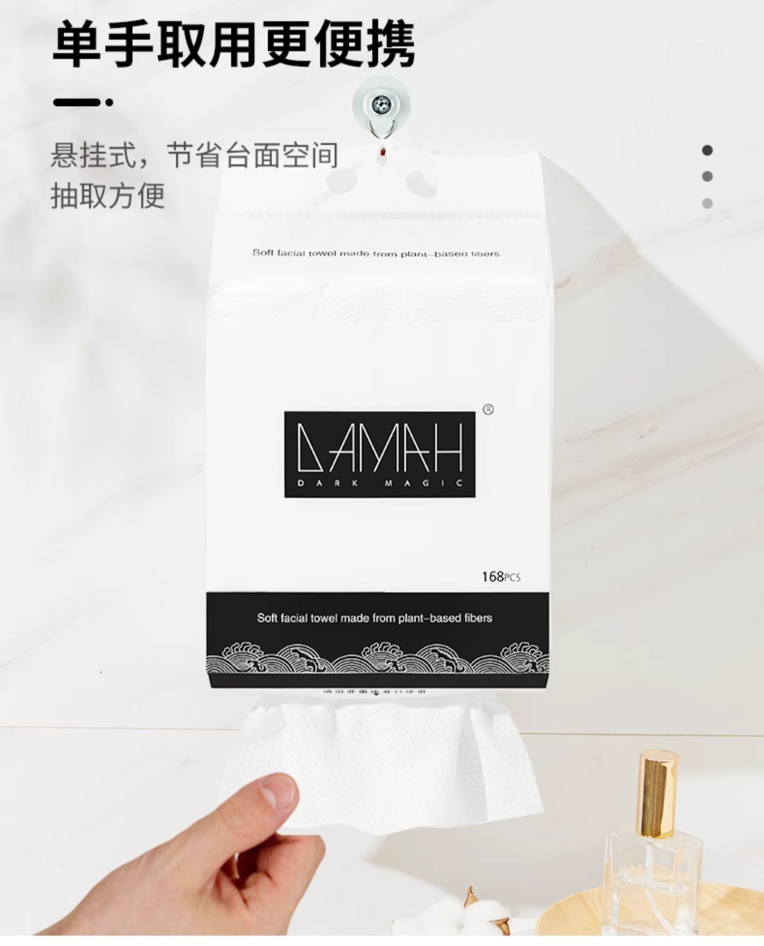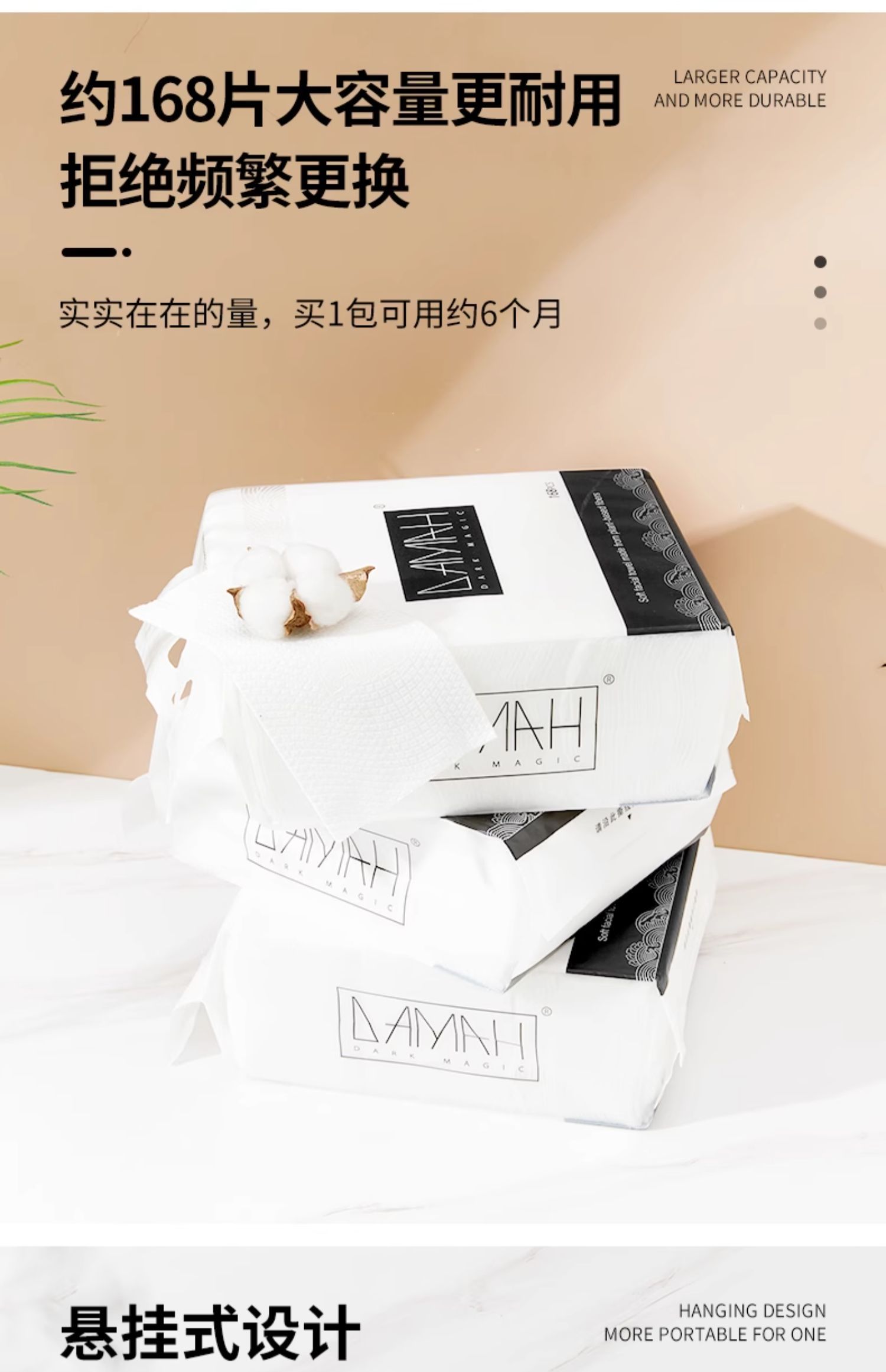 商品名称:DAMAH 黑魔法大容量悬挂抽取式干柔巾洗脸巾(168片/袋)