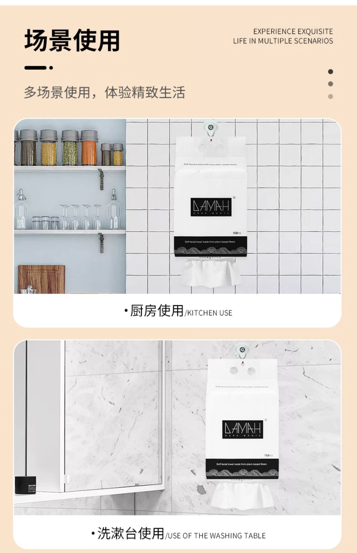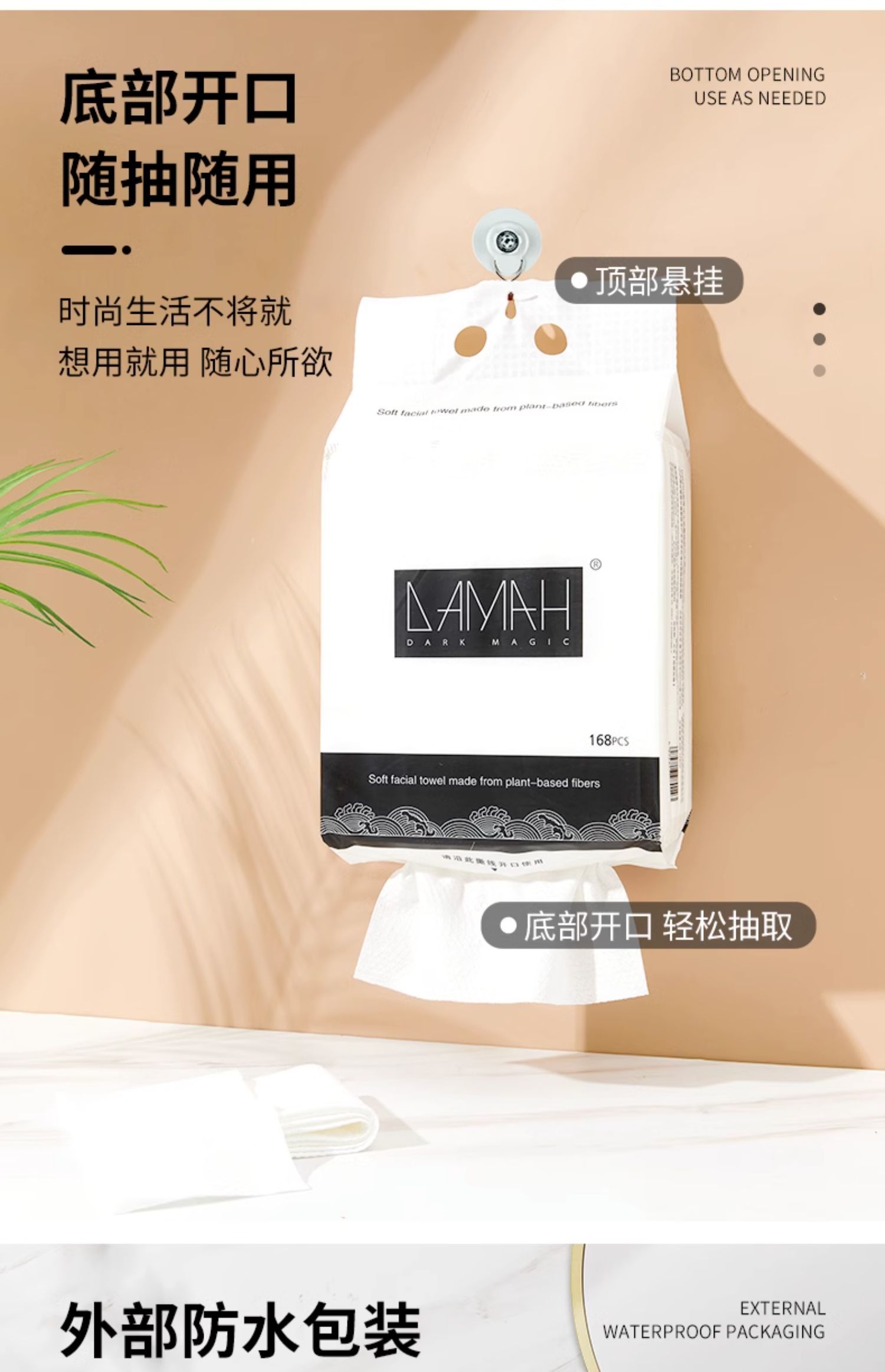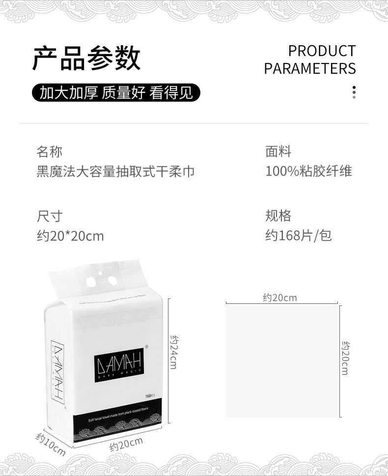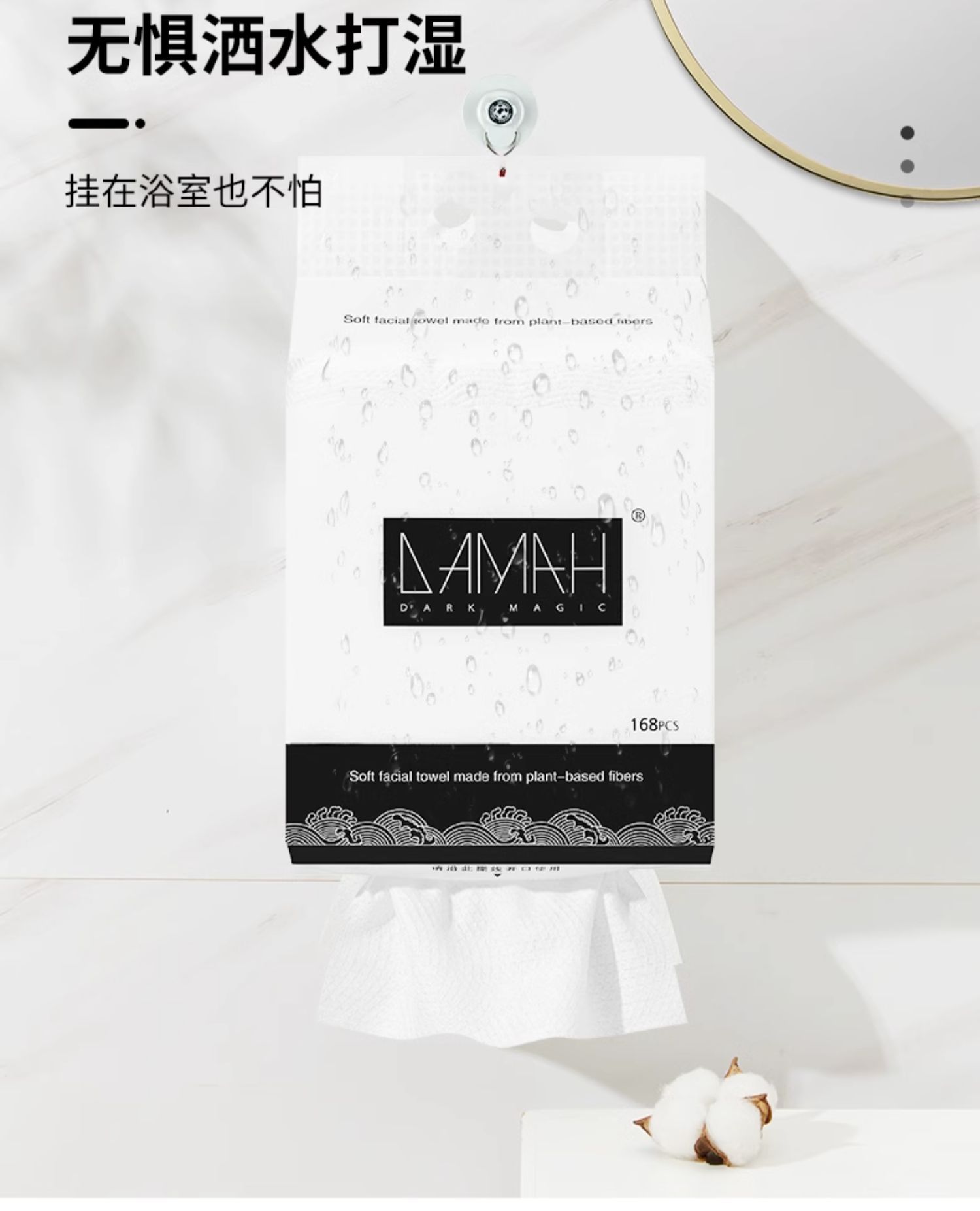 商品名称:DAMAH 黑魔法大容量悬挂抽取式干柔巾洗脸巾(168片/袋)