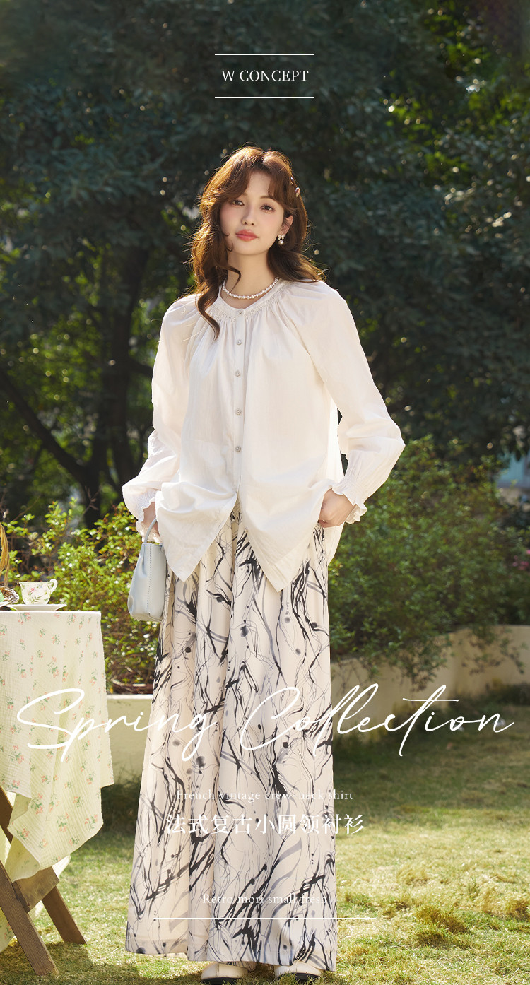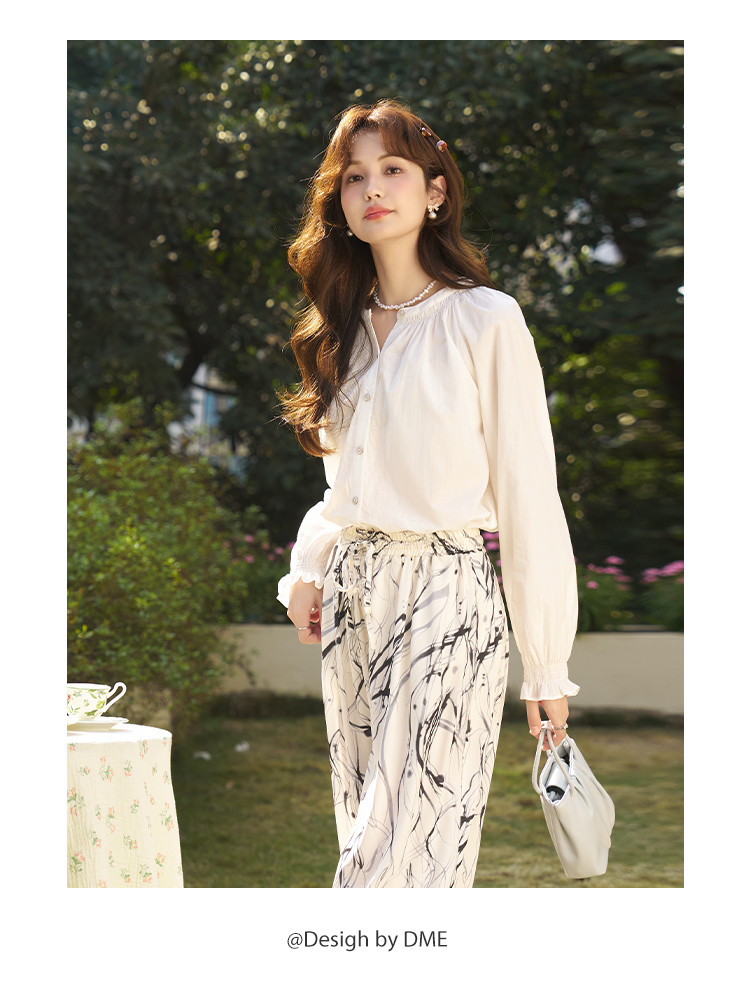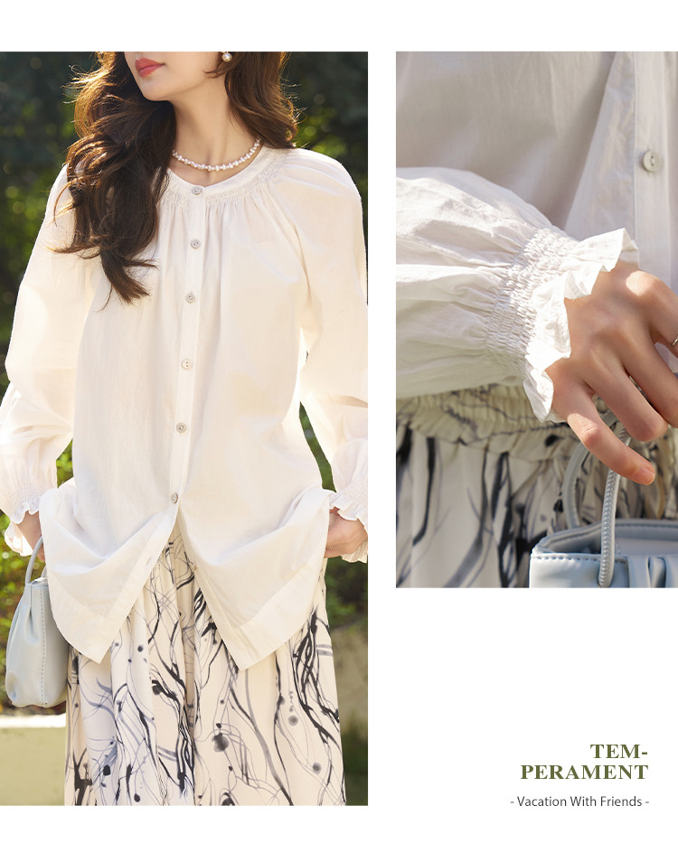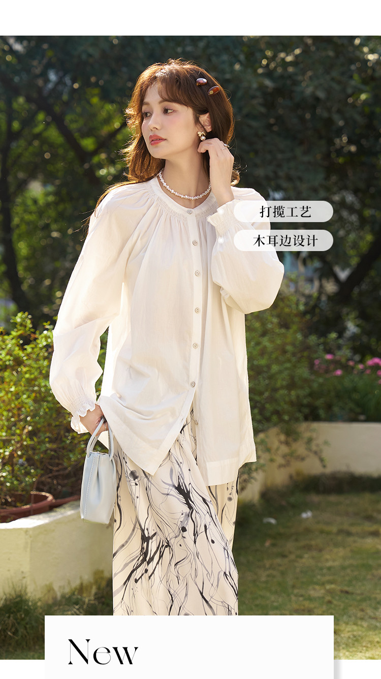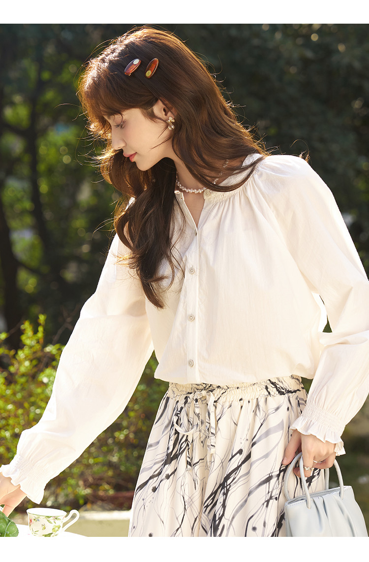 【森系少女】春秋法式文艺白衬衣女高级感内搭叠穿木耳边衬衫女 943873