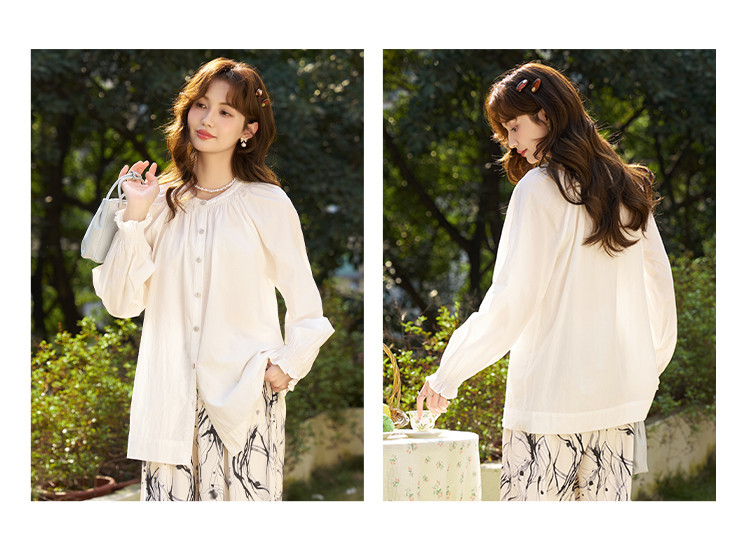 商品名称:【森系少女】春秋法式文艺白衬衣女高级感内搭叠穿木耳边衬衫女 943873