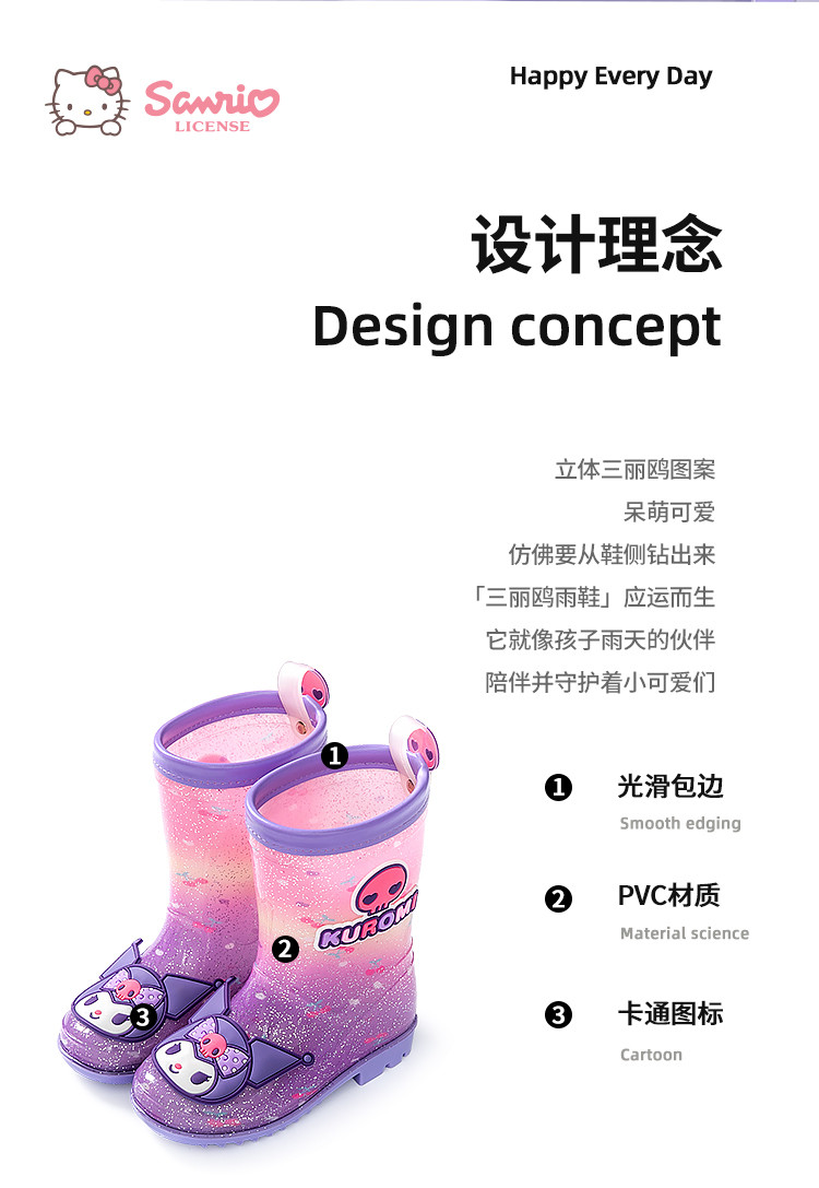 商品名称:【IP联名】儿童雨鞋女童四季库洛米玉桂狗防滑中筒宝宝水鞋雨靴 123265