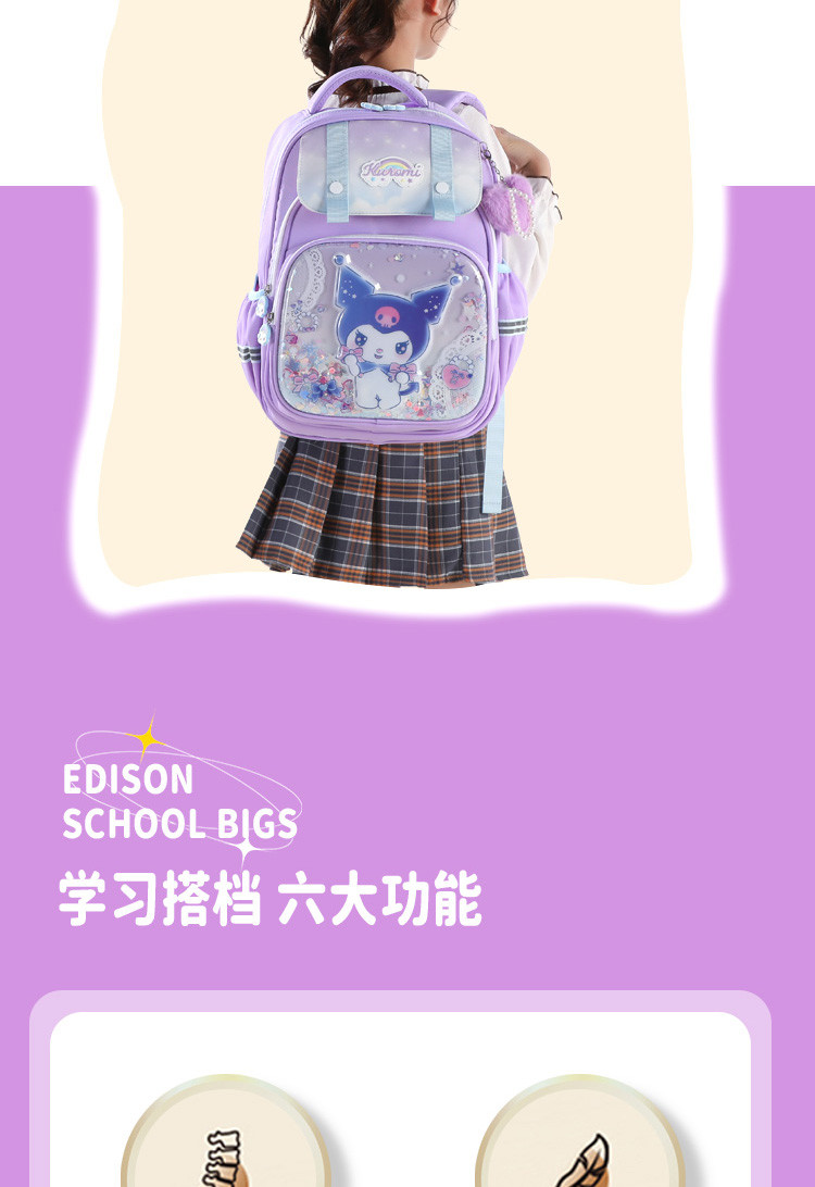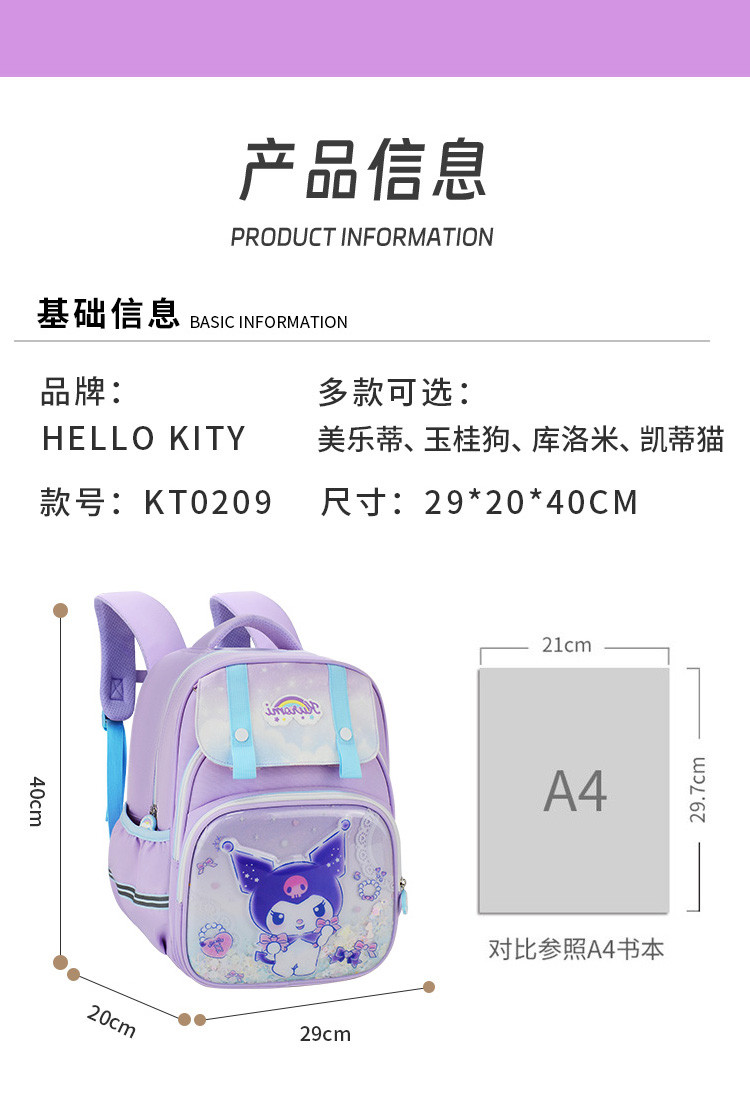商品名称:【ip联名】儿童书包1-3年级双肩护脊女童库洛米卡通减负新款 016705