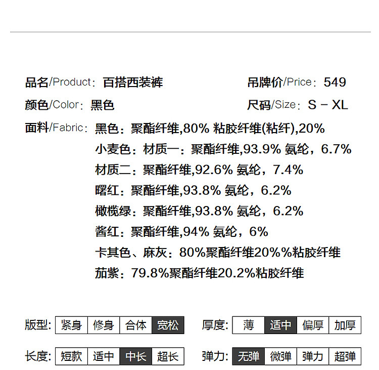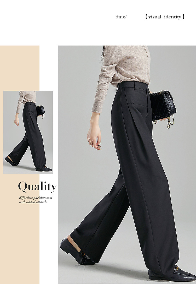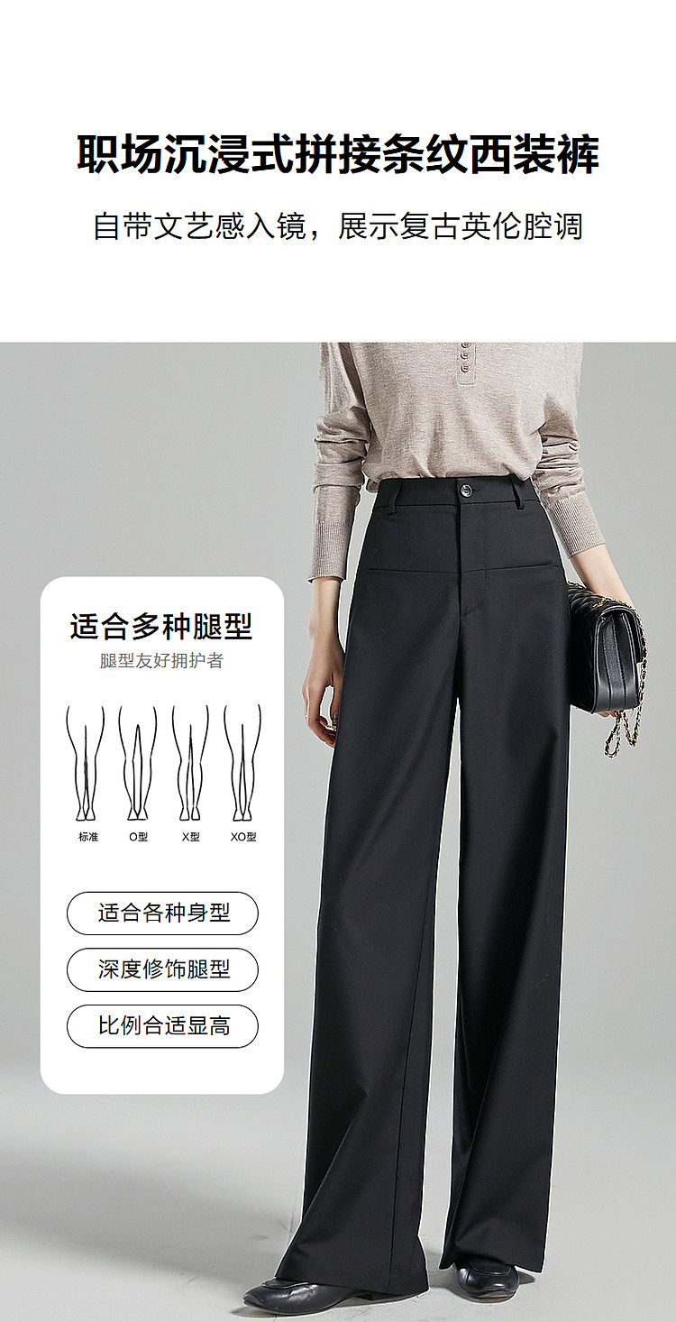 商品名称:【古法沉浸式】春秋中腰直筒女裤TR长裤拼接条纹西装裤休闲裤 161473