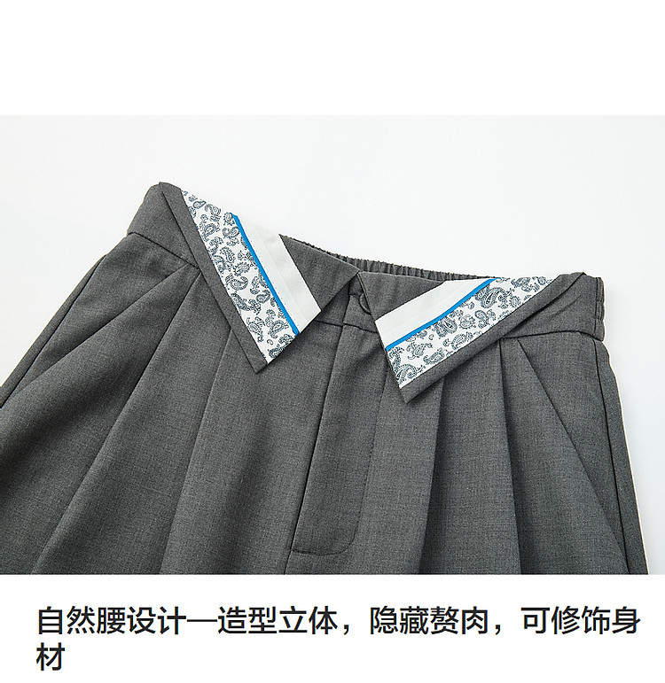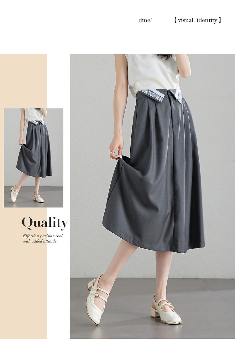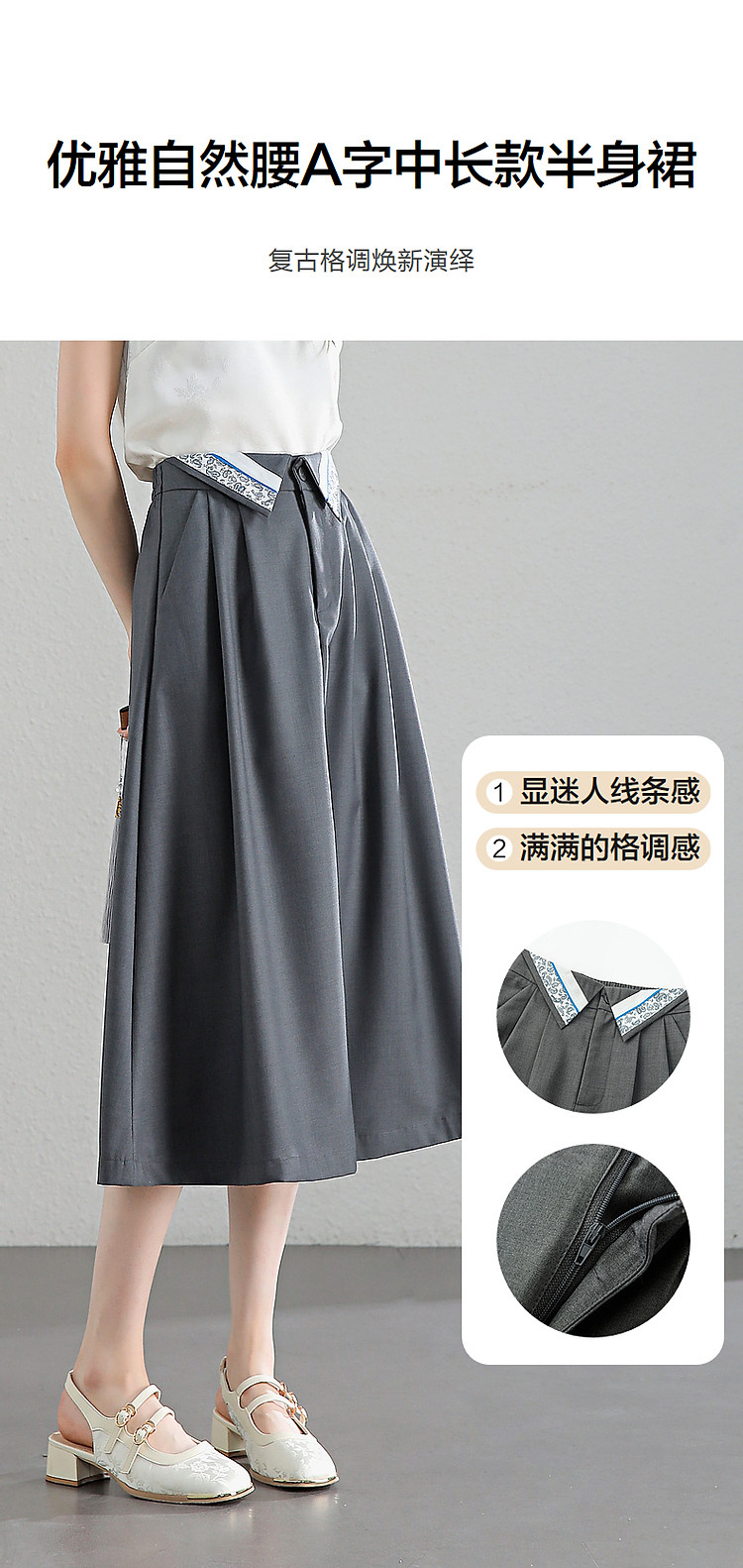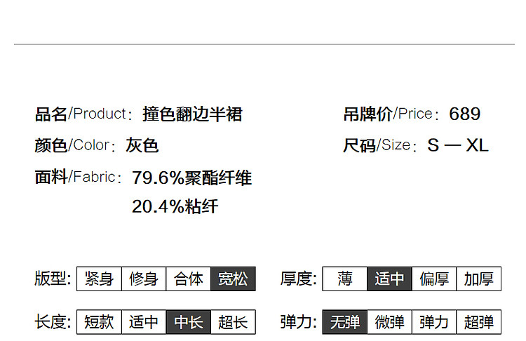 商品名称:【腰部撞色拼接复式】春秋a字伞裙TR褶裥半身裙女中长款 677185