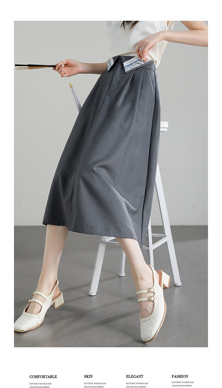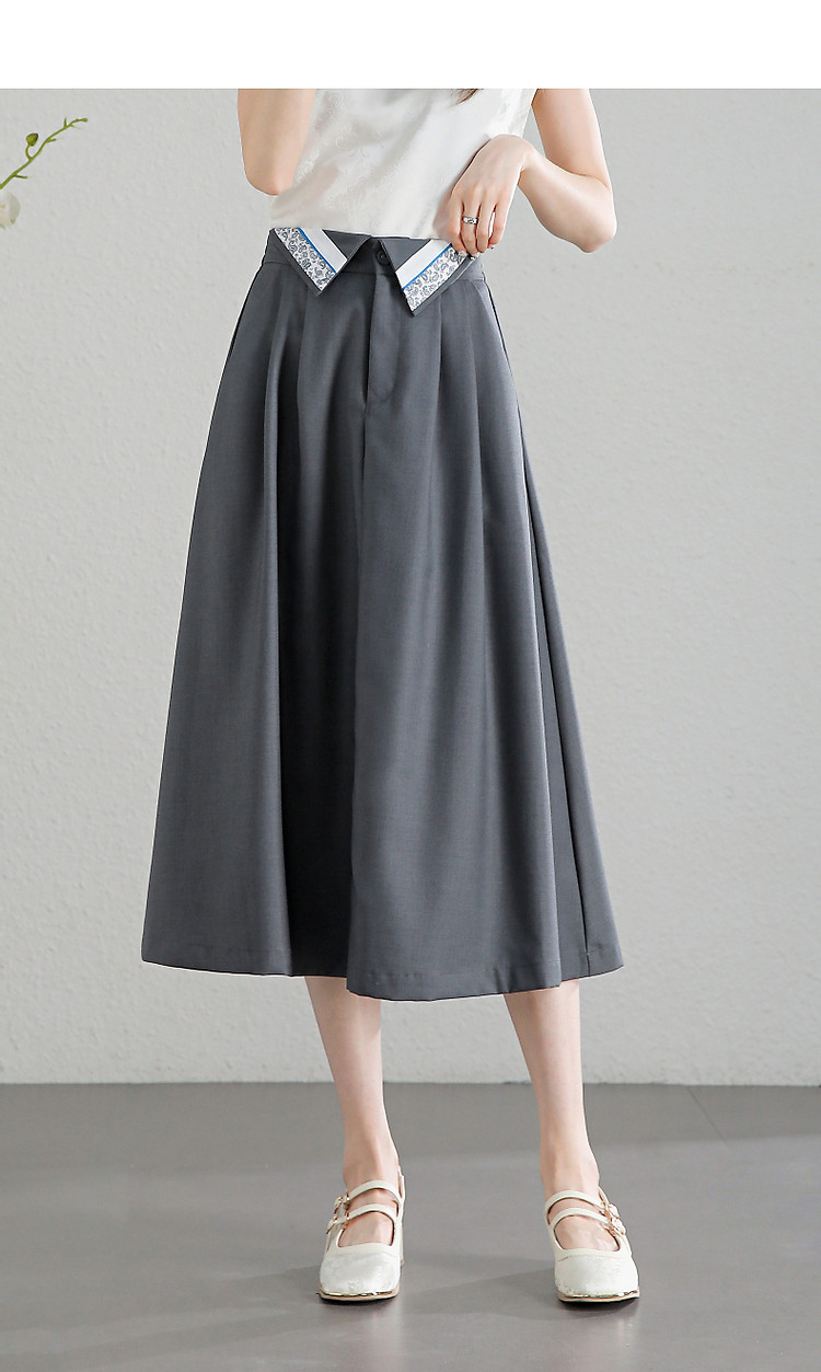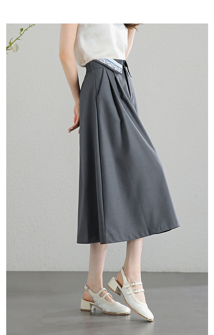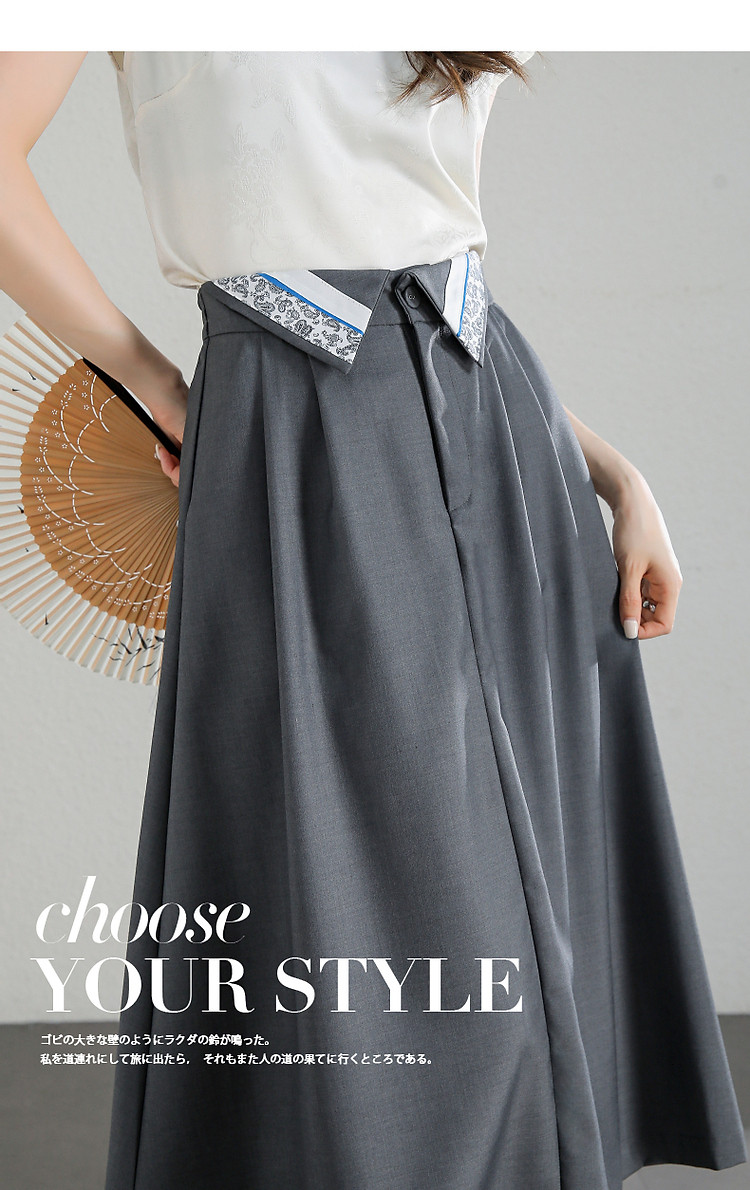 商品名称:【腰部撞色拼接复式】春秋a字伞裙TR褶裥半身裙女中长款 677185