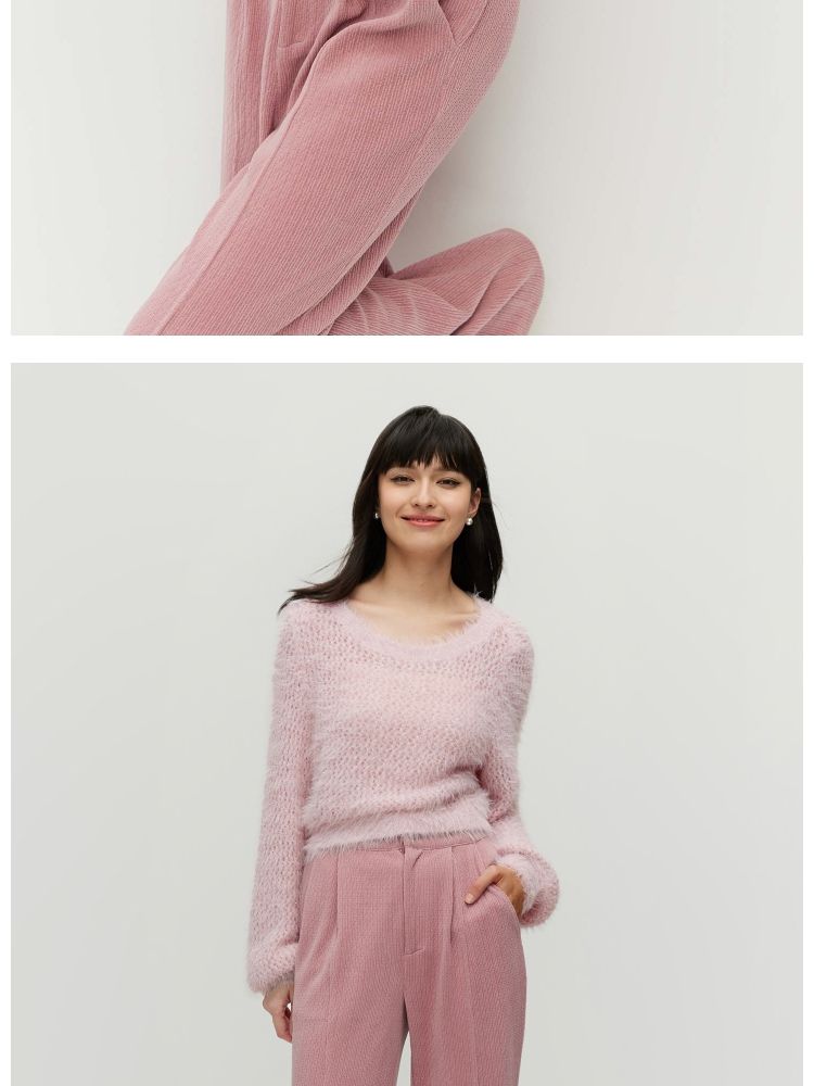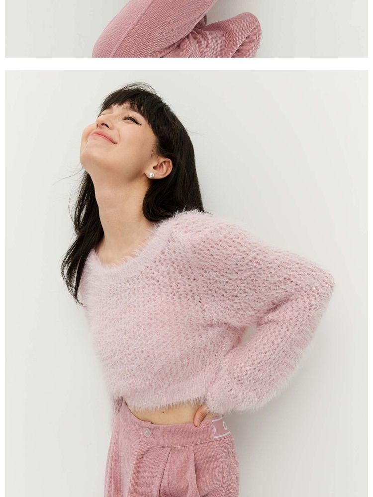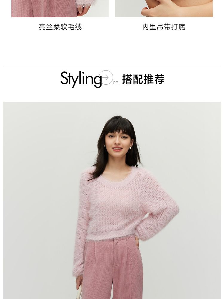 商品名称:【甜美风】春季设计感镂空亮丝宽松圆领毛绒毛衣女 804314