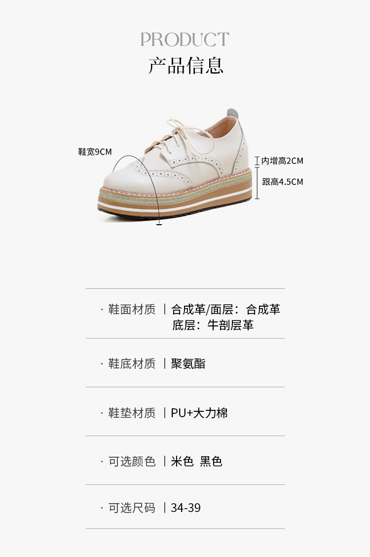 商品名称:【经典复古】百搭内增高牛津鞋女英伦小皮鞋女厚底乐福鞋女单鞋女 038592