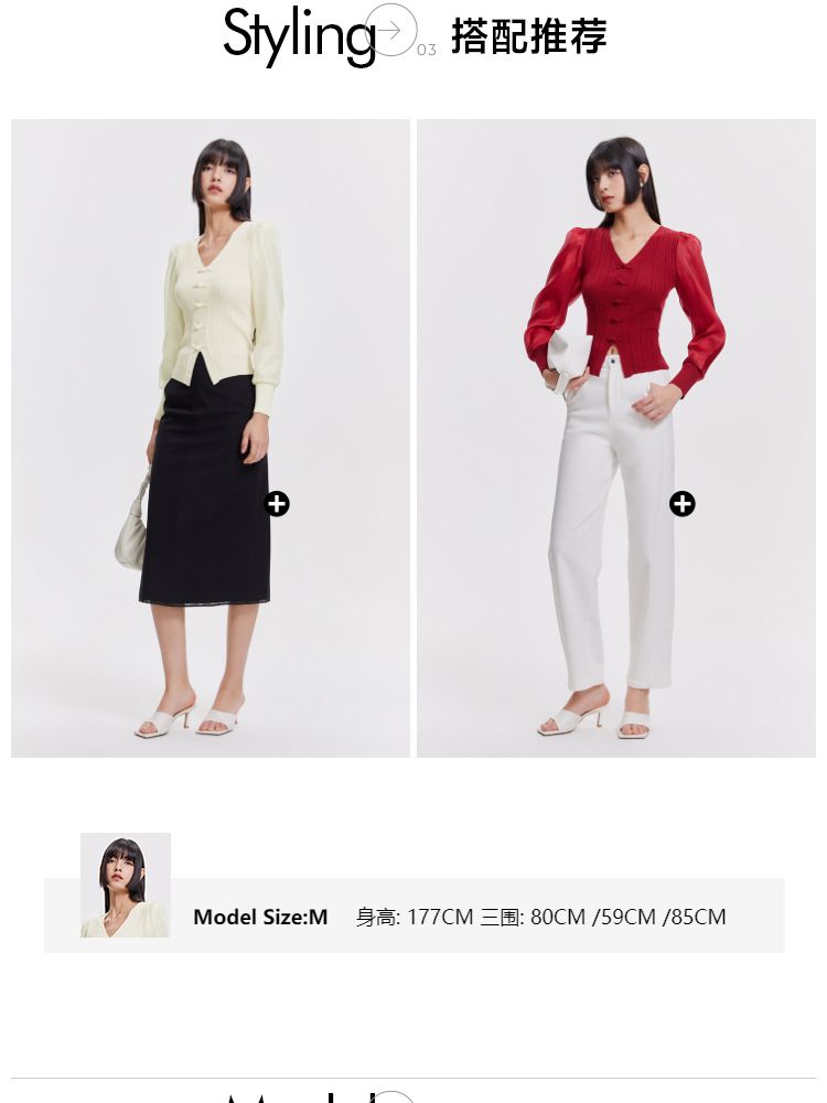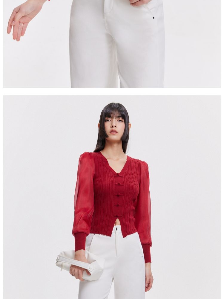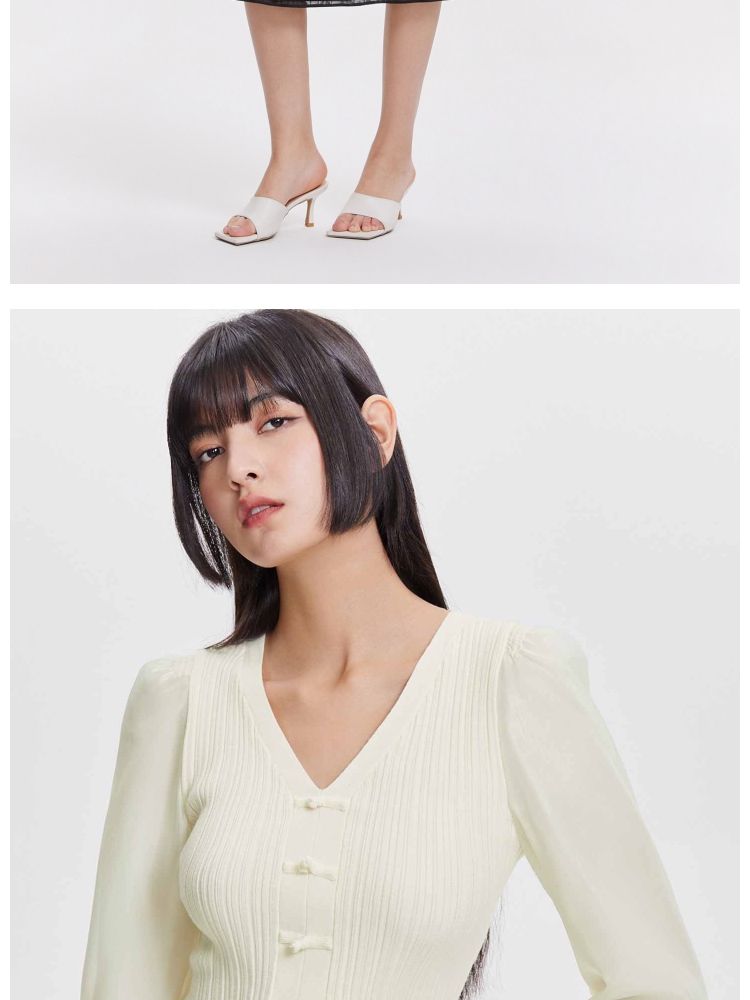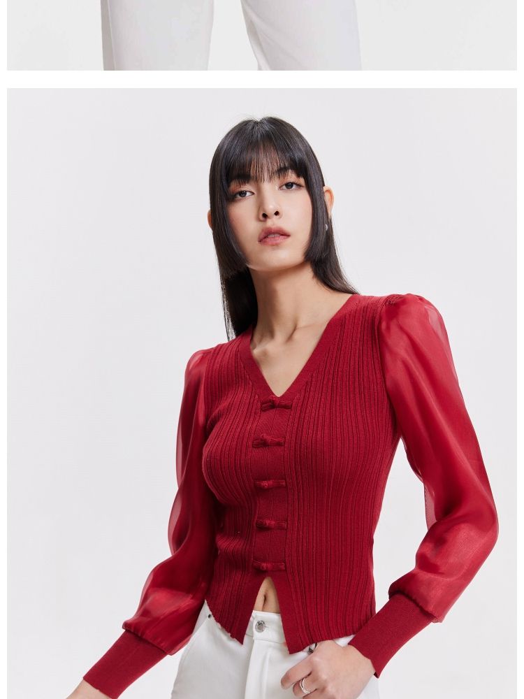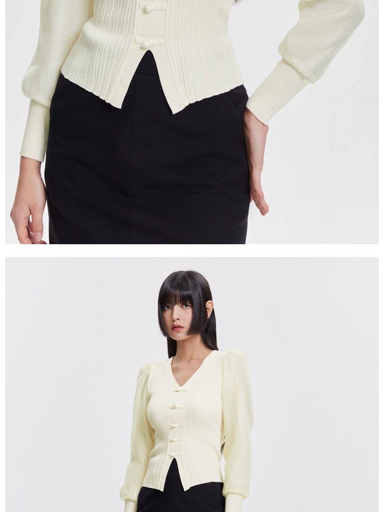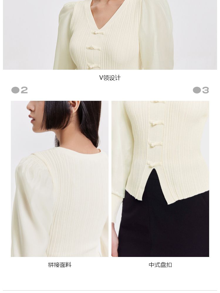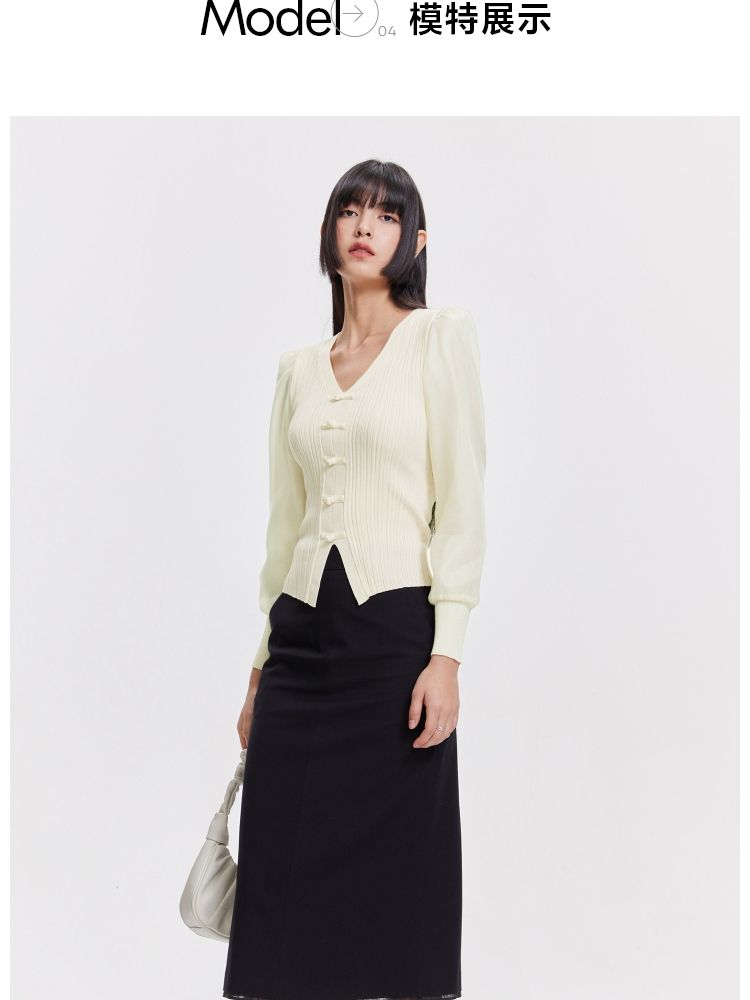 商品名称:【设计感】春季简约百搭拼接V领毛衣针织衫女 811674