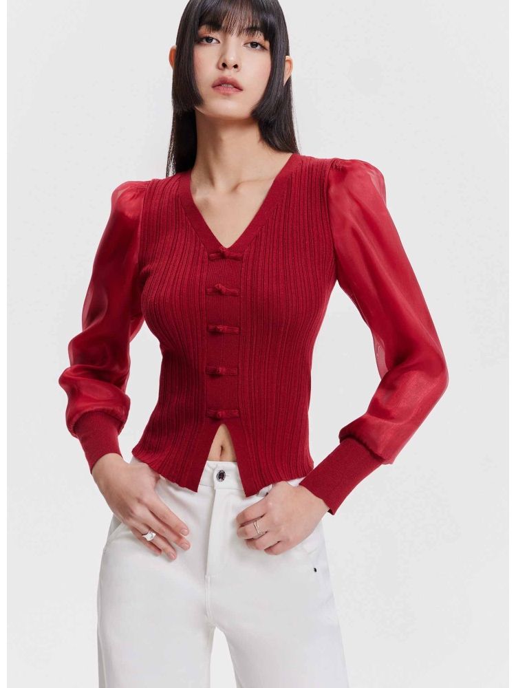 【设计感】春季简约百搭拼接V领毛衣针织衫女 811674