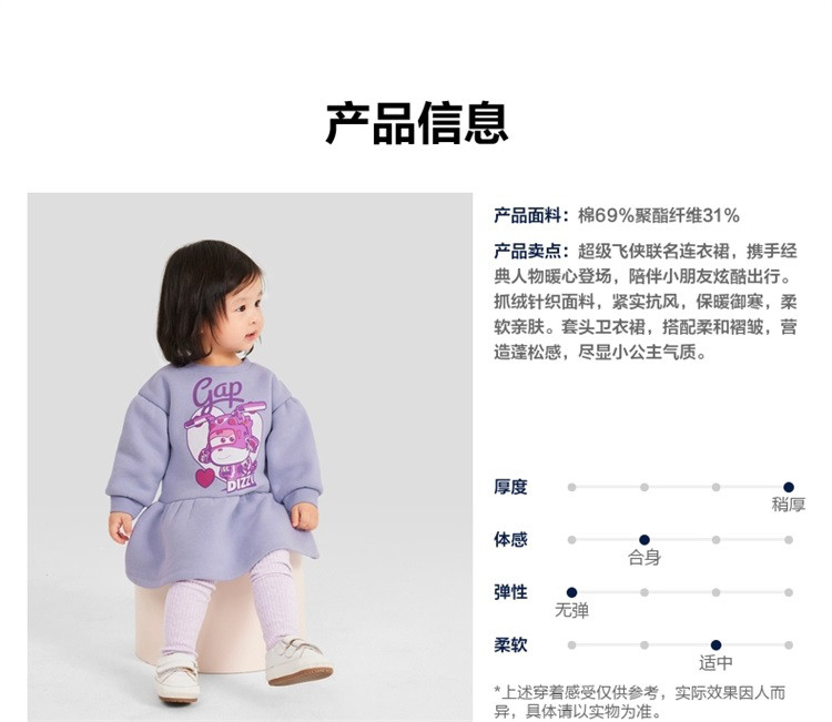 商品名称:【超级飞侠联名】Gap婴儿春秋季款连衣裙771431儿童装卫衣裙 643098