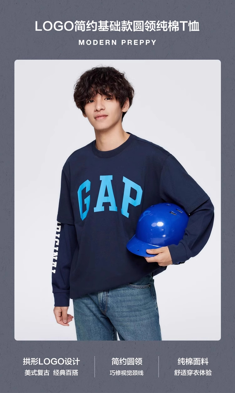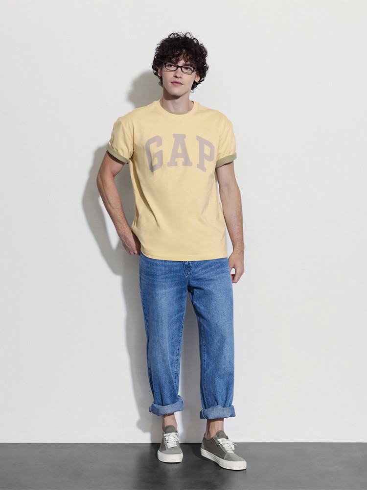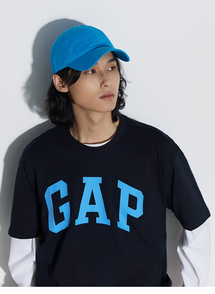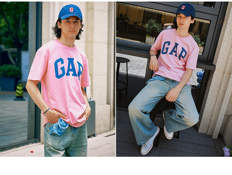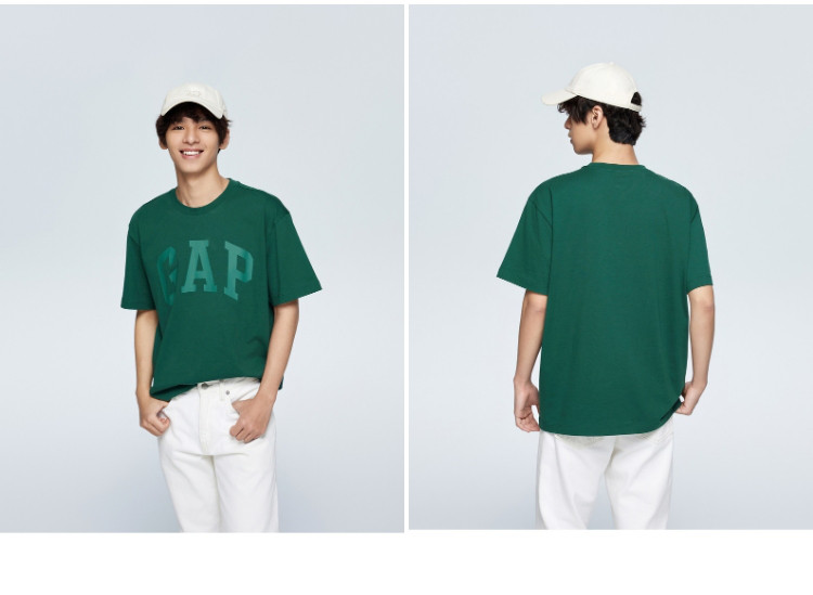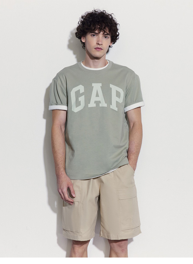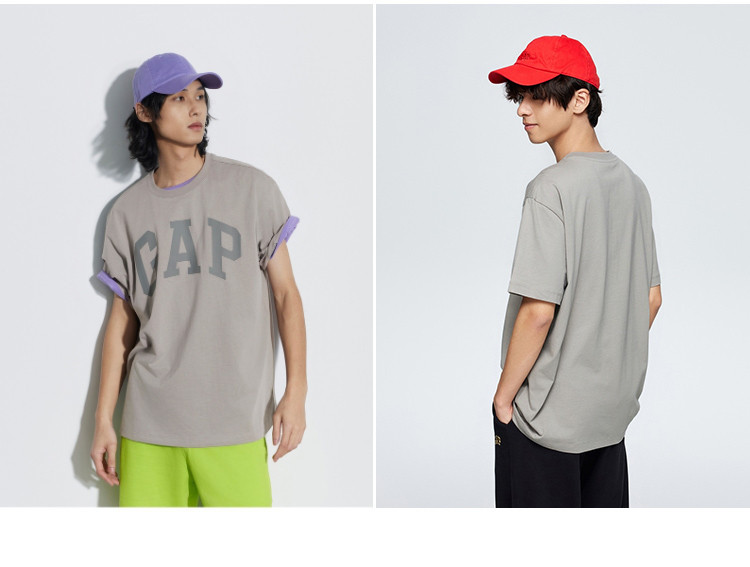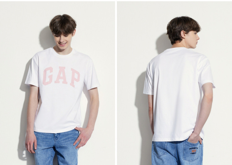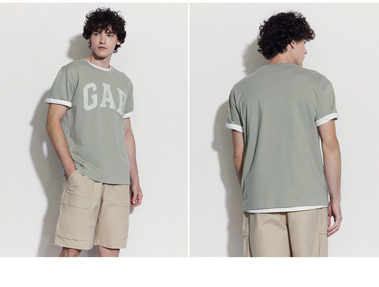 Gap男装夏季撞色LOGO简约基础款圆领纯棉短袖T恤465796 808346