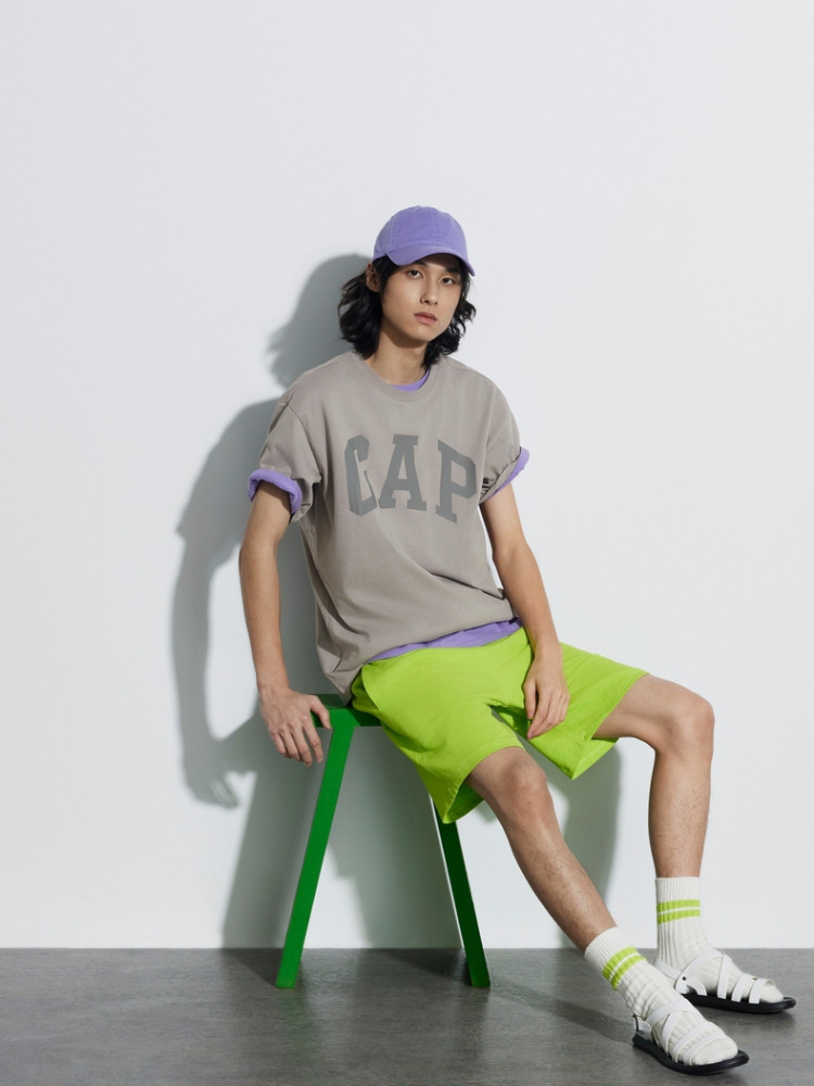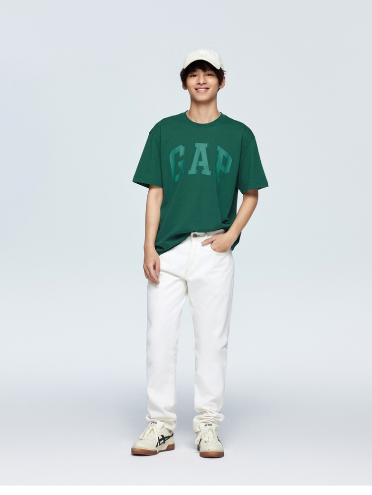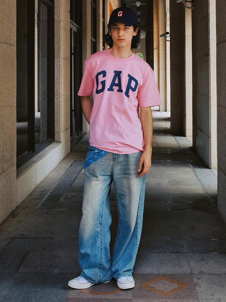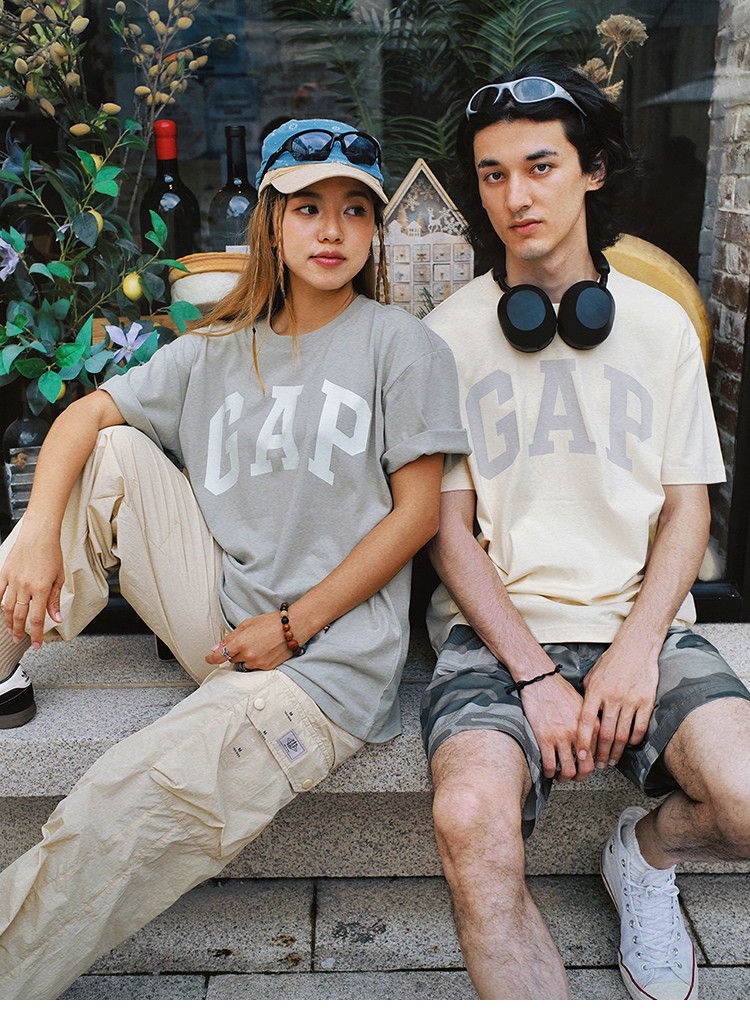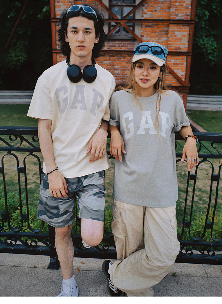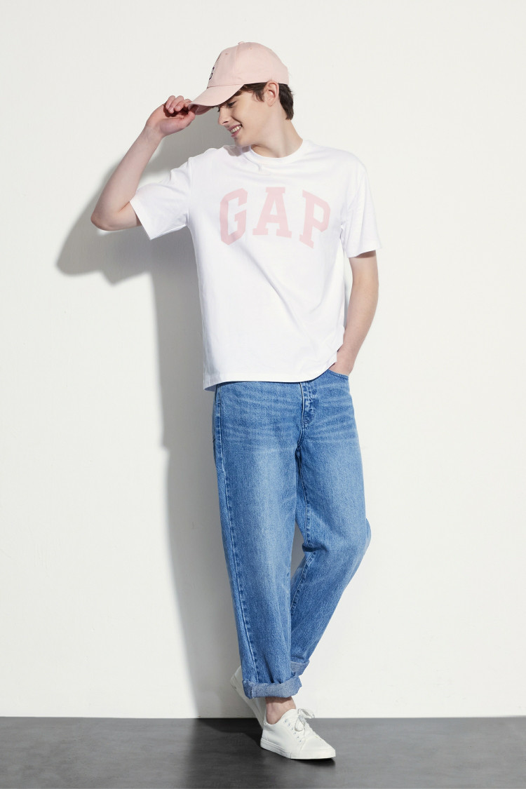 Gap男装夏季撞色LOGO简约基础款圆领纯棉短袖T恤465796 808346