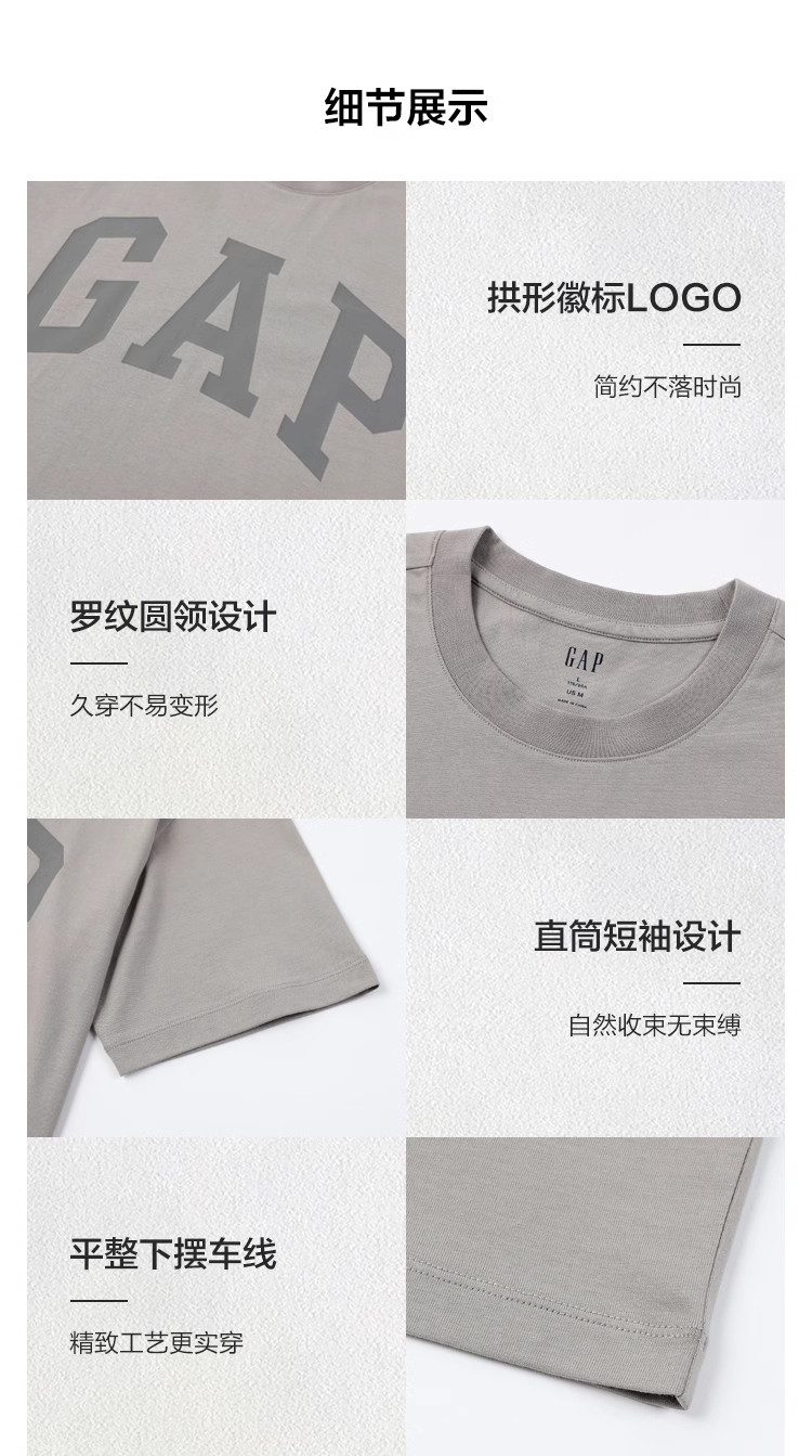 商品名称:Gap男装夏季撞色LOGO简约基础款圆领纯棉短袖T恤465796 808346