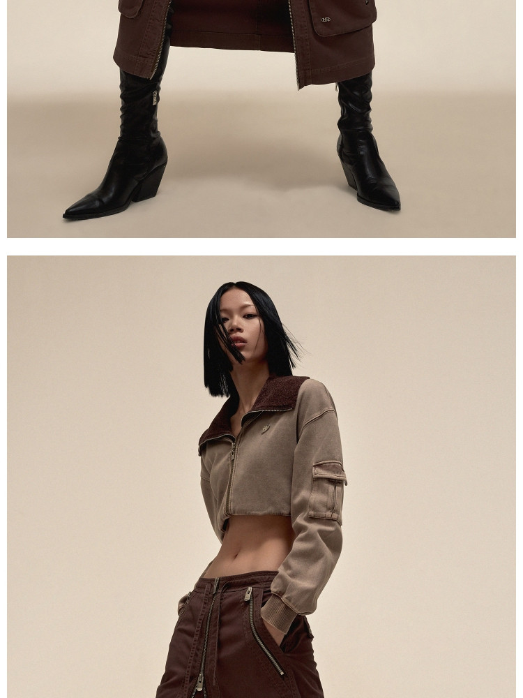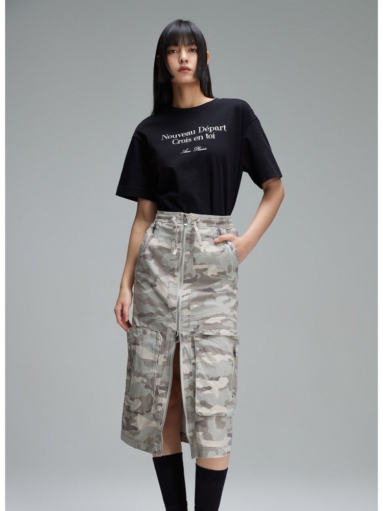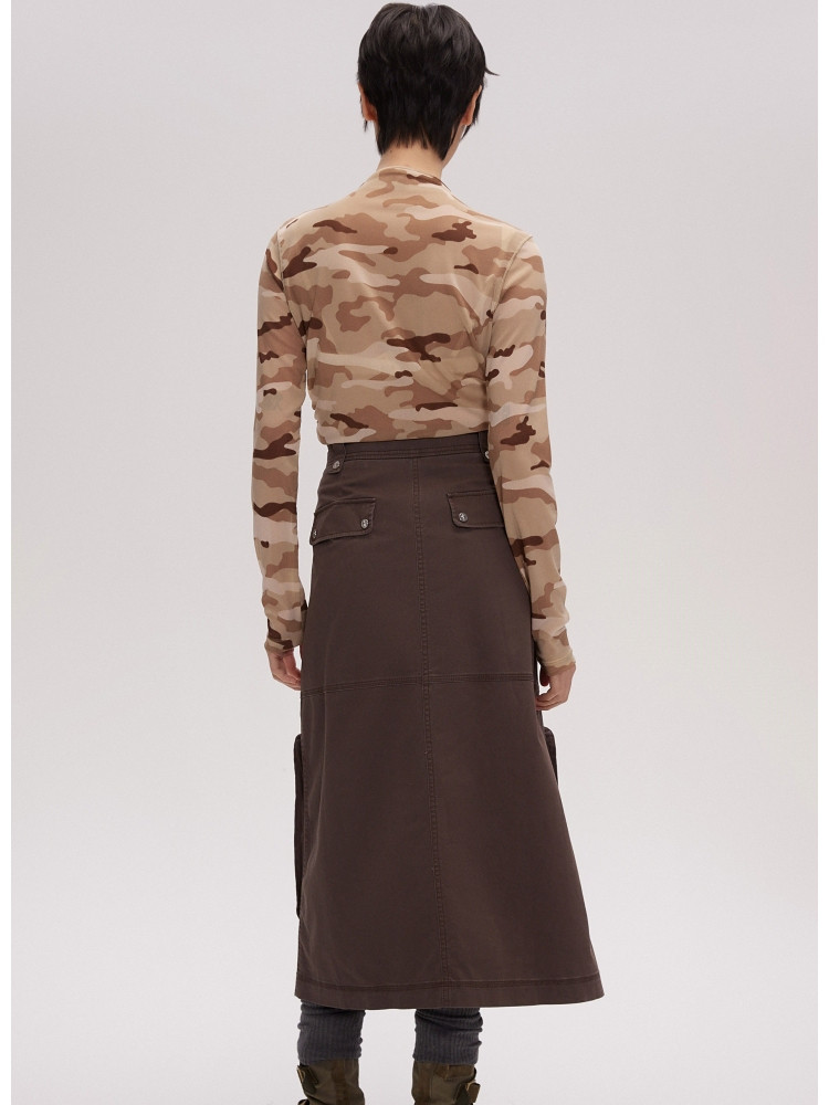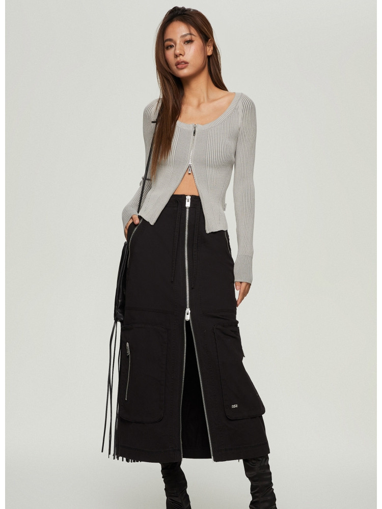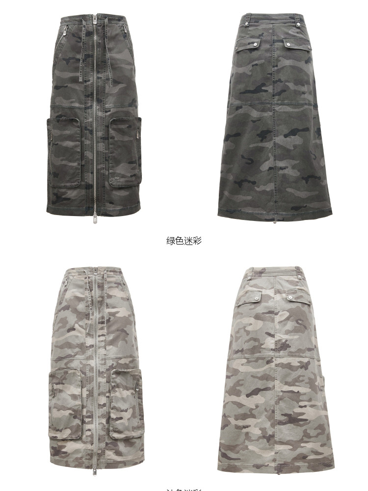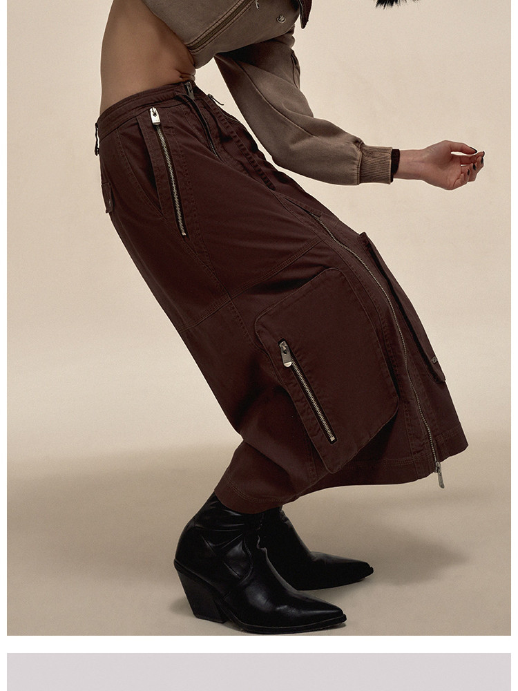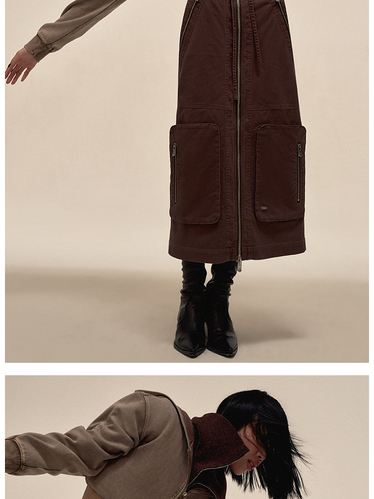 【大口袋装饰】春季休闲双拉链中长款半身裙女 019034