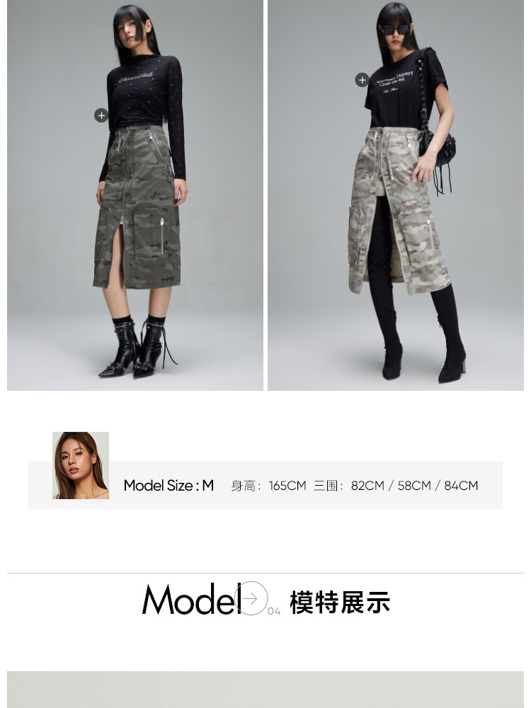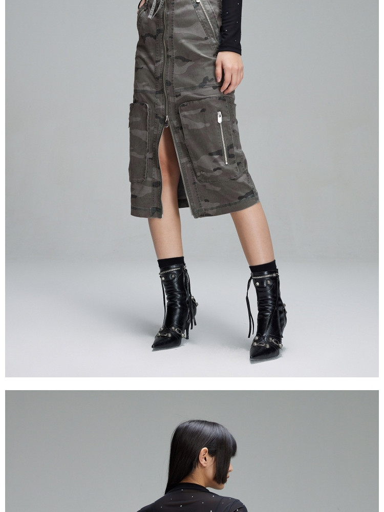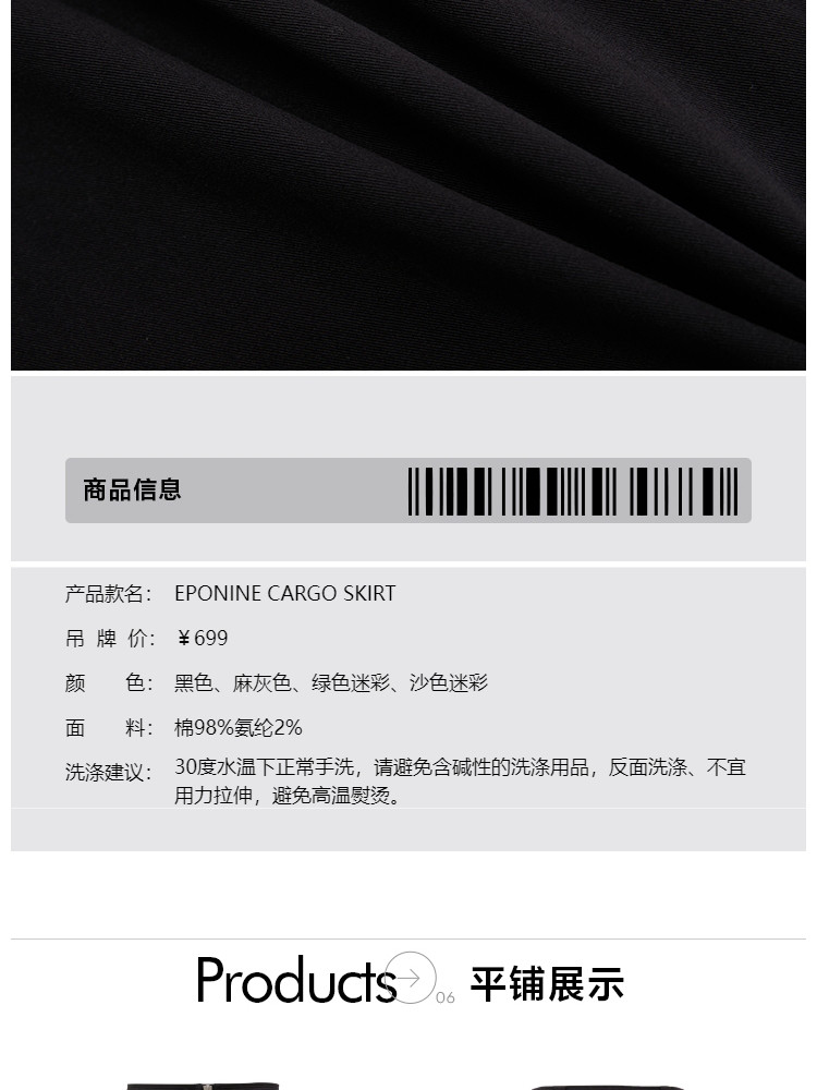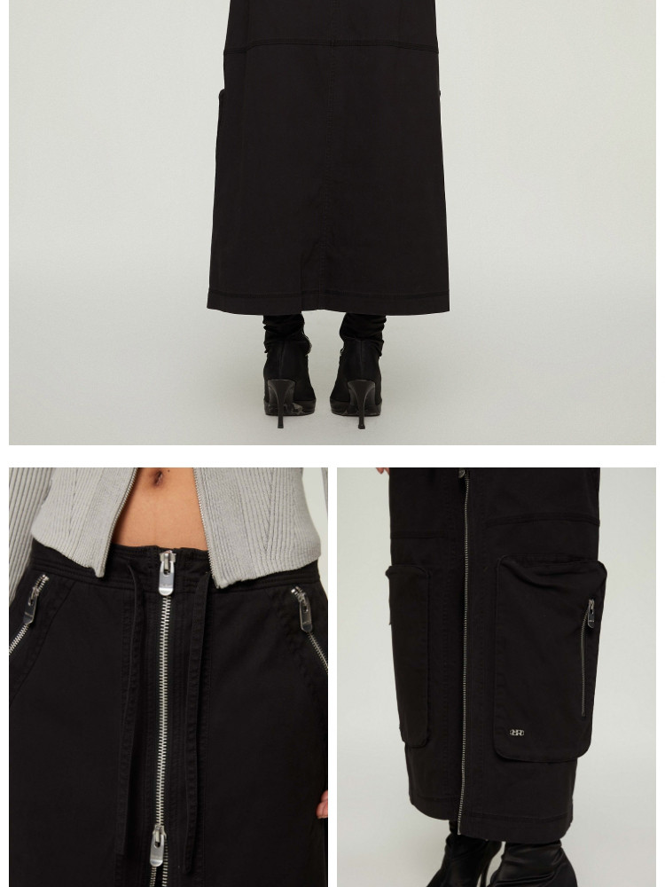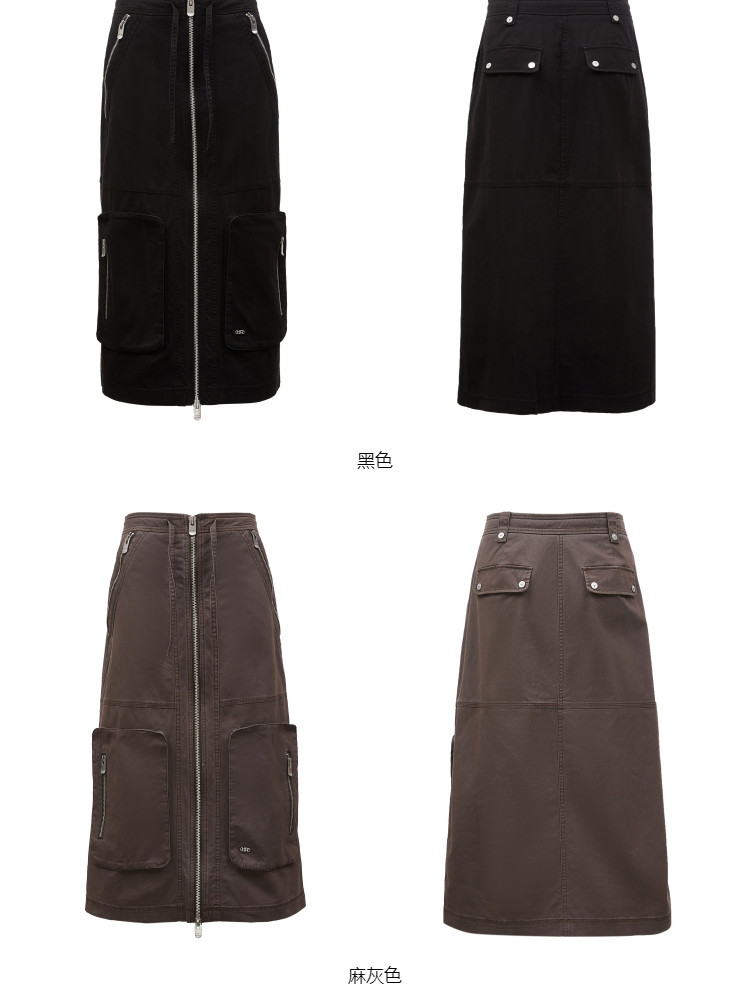 商品名称:【大口袋装饰】春季休闲双拉链中长款半身裙女 019034