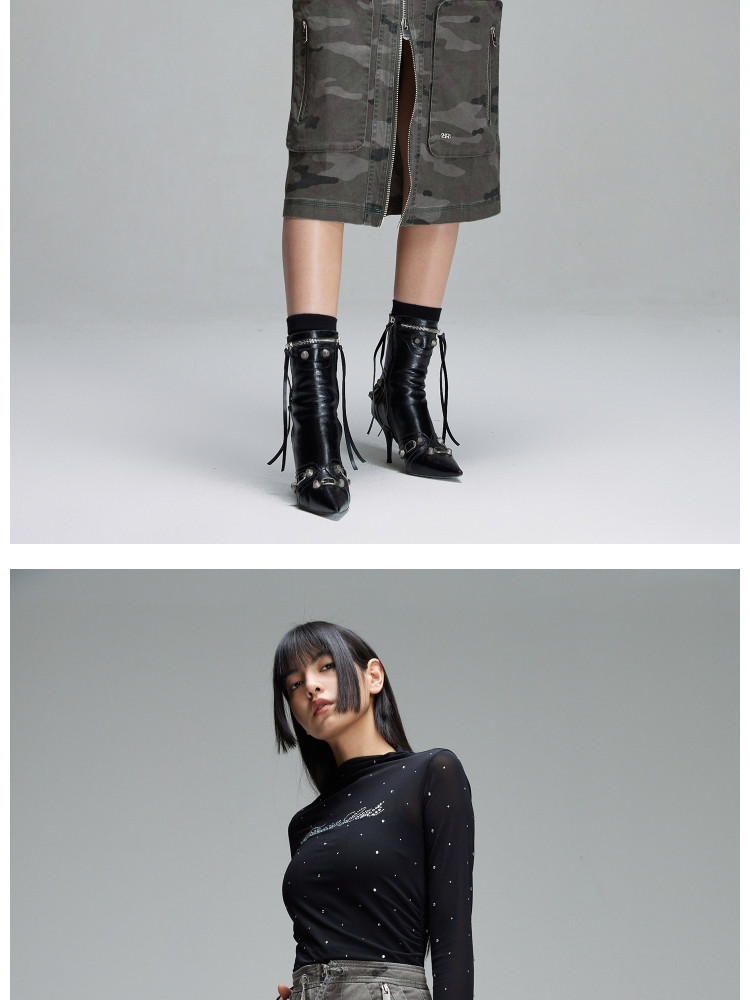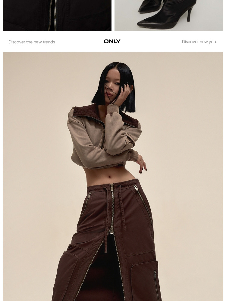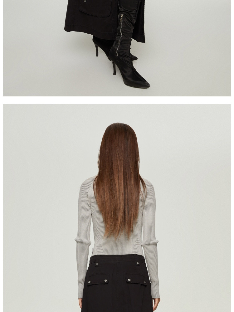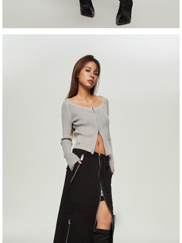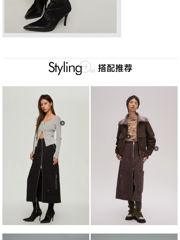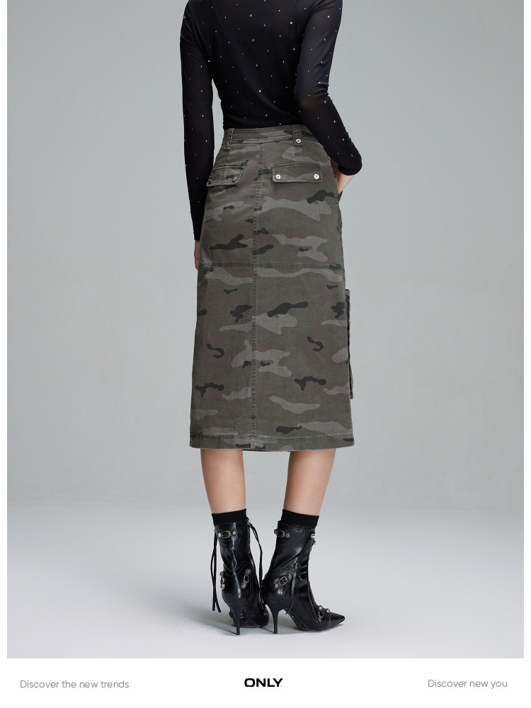商品名称:【大口袋装饰】春季休闲双拉链中长款半身裙女 019034