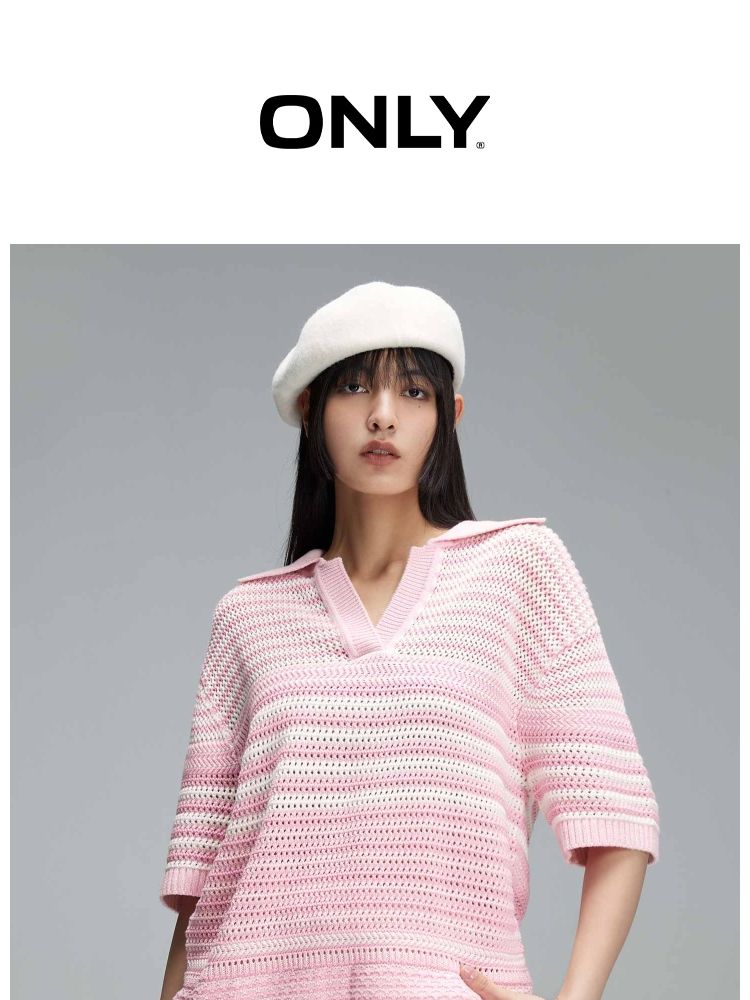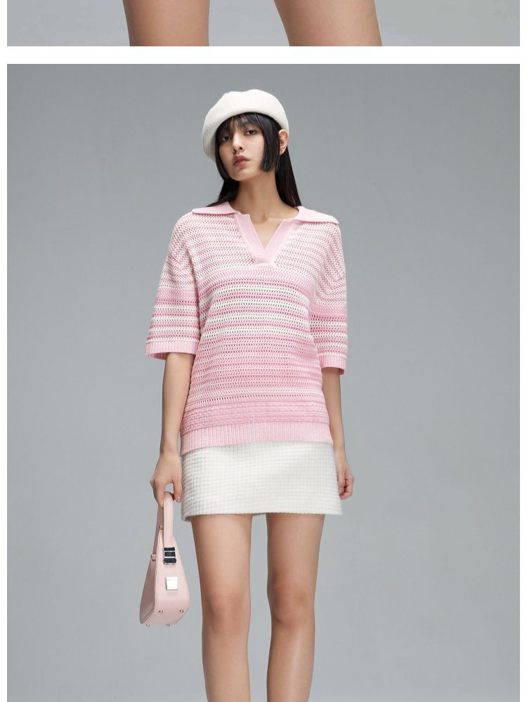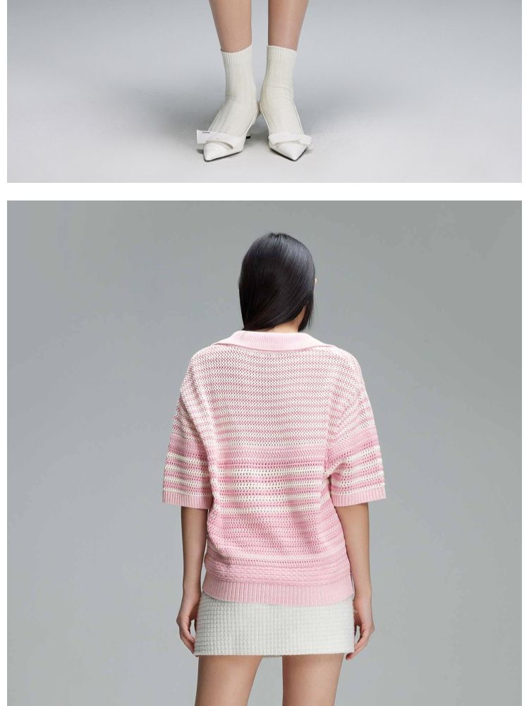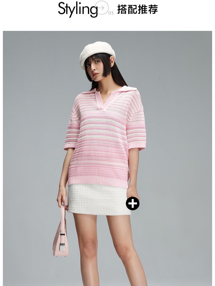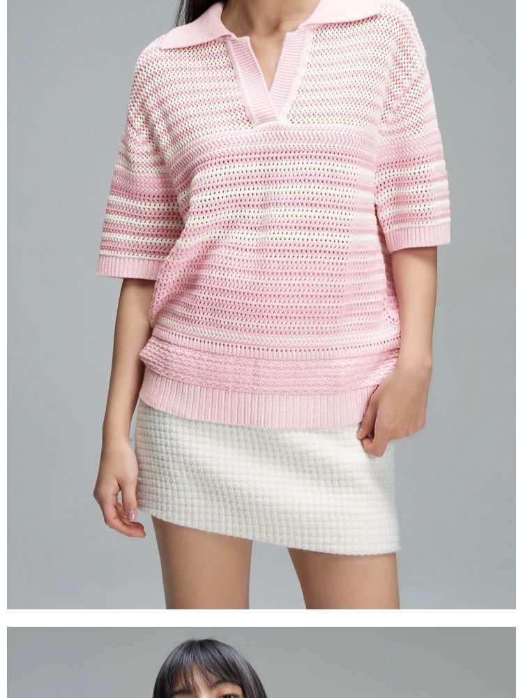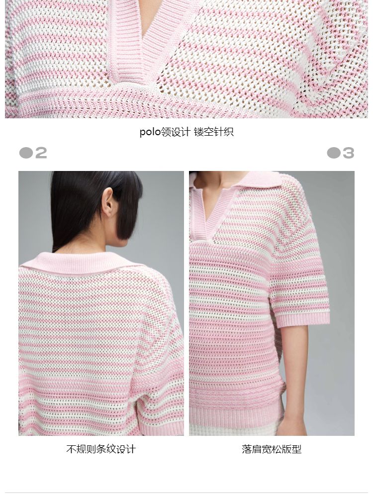 商品名称:【宽松落肩】春季镂空POLO领落肩短袖针织衫女 520922