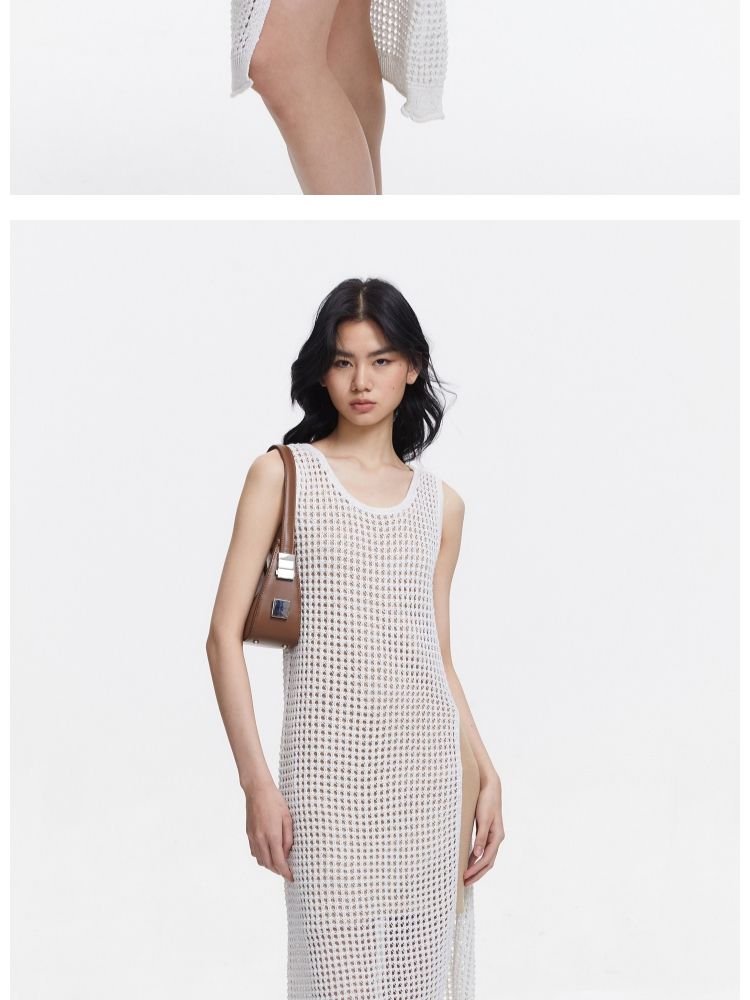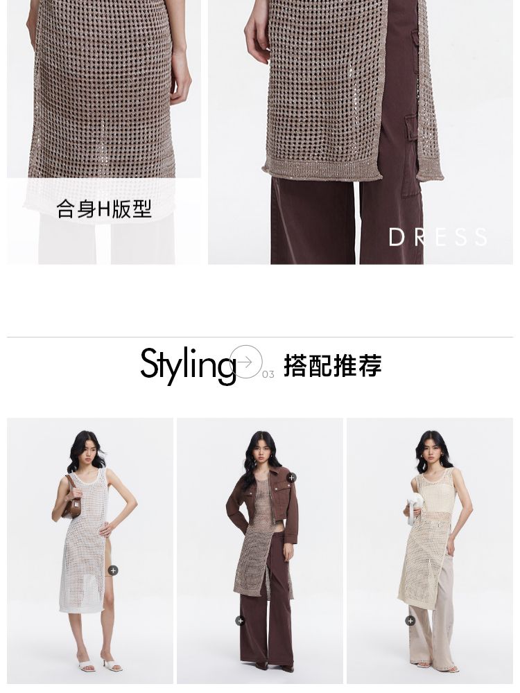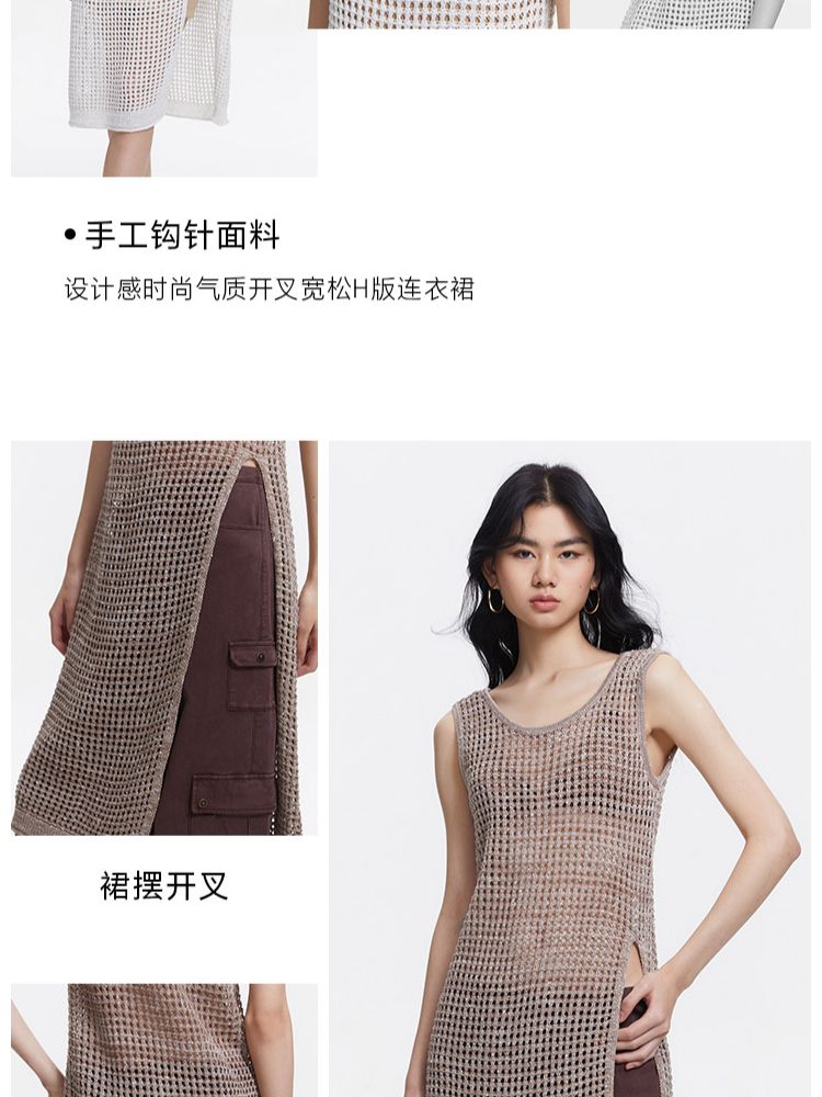 【简约清雅】春秋圆领a字立体肌理感针织微弹连衣裙女中长款 045313