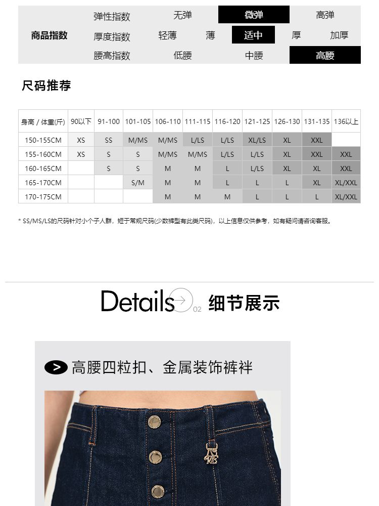 | XS(标准裤长) | 59 | 64 | 102.5 | 88 | 155/60A |