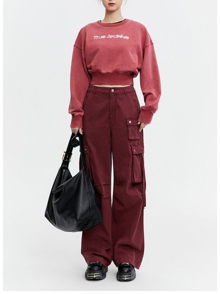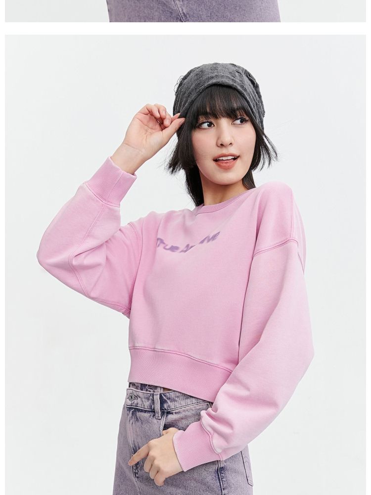 【潮流休闲】春季字母印花宽松落肩短款卫衣女 141274