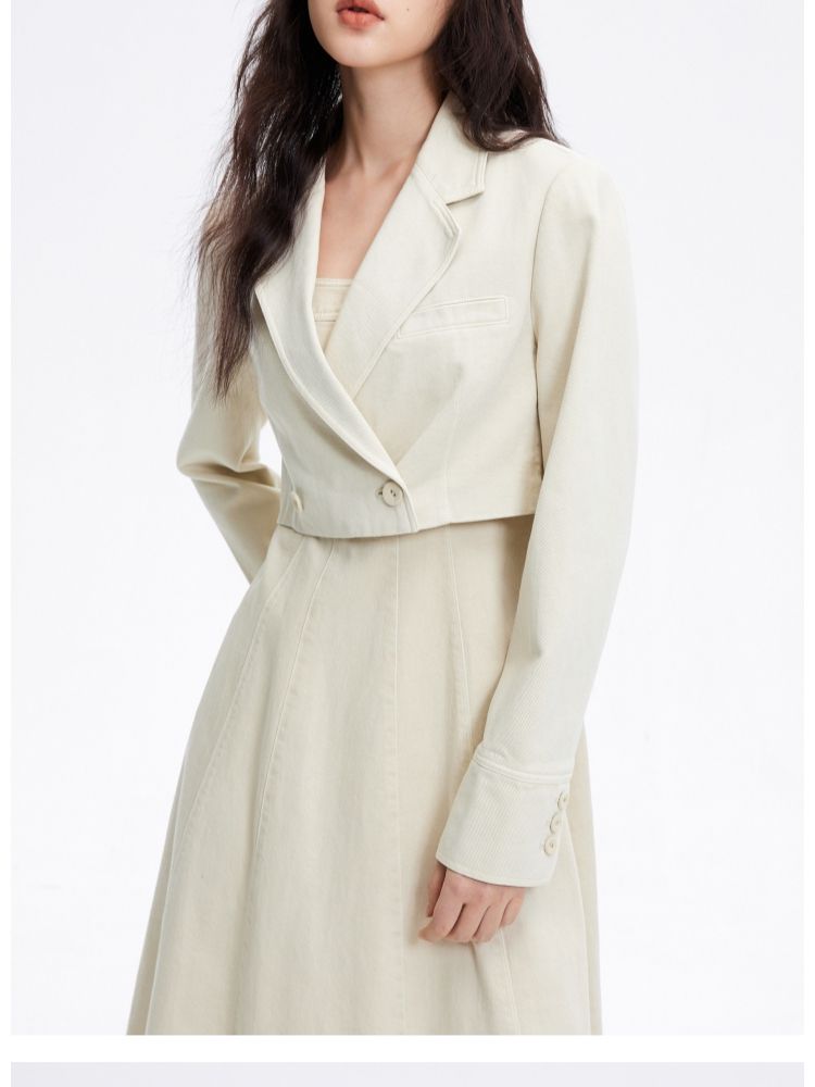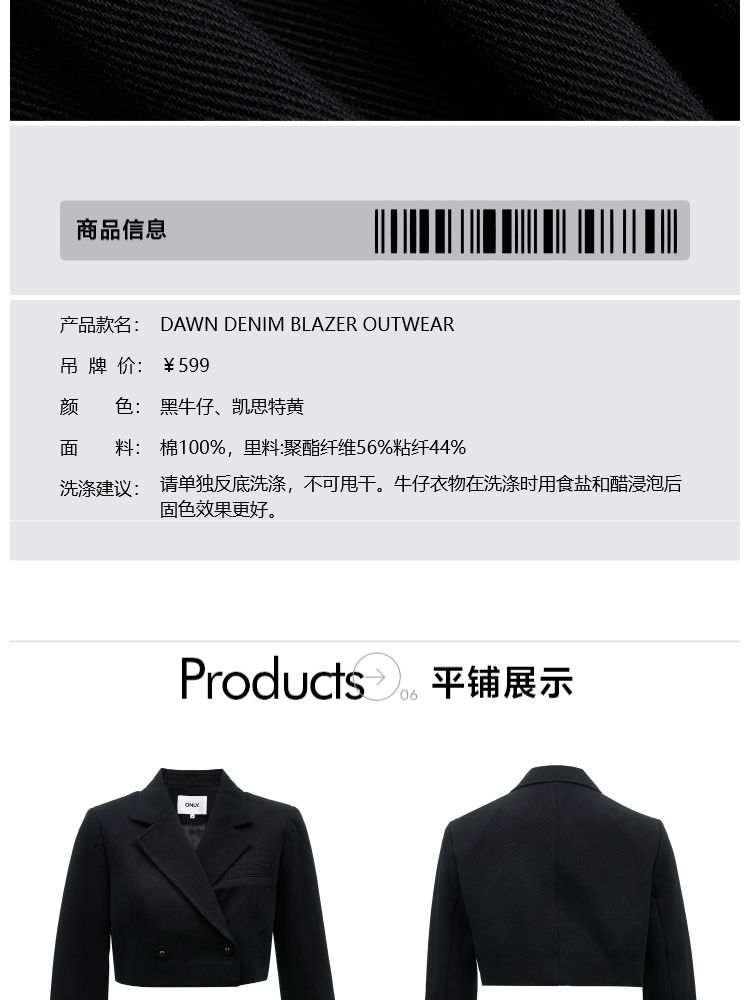 商品名称:【时尚简约】春季简约翻领直筒短款西装牛仔外套女 088922