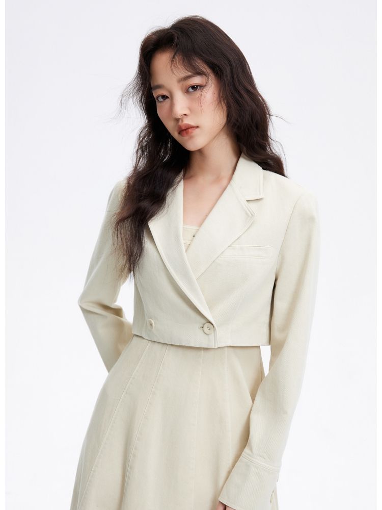 【时尚简约】春季简约翻领直筒短款西装牛仔外套女 088922