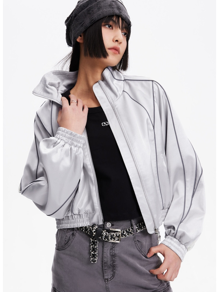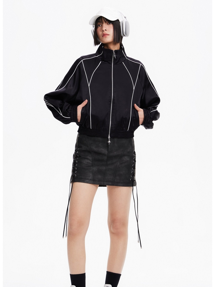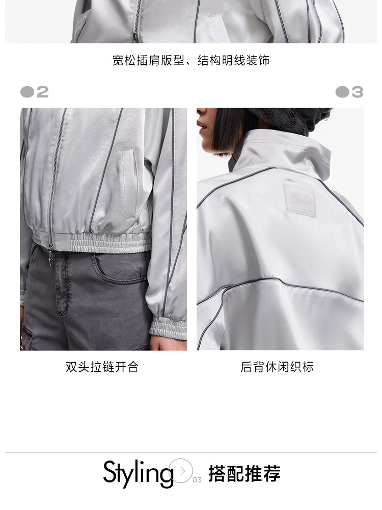 【洋气休闲】春季时尚明线装饰插肩袖宽松短款外套女 174618