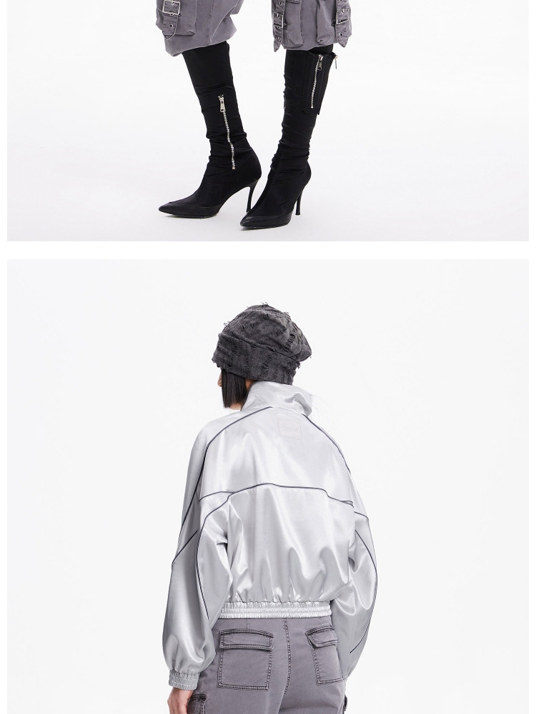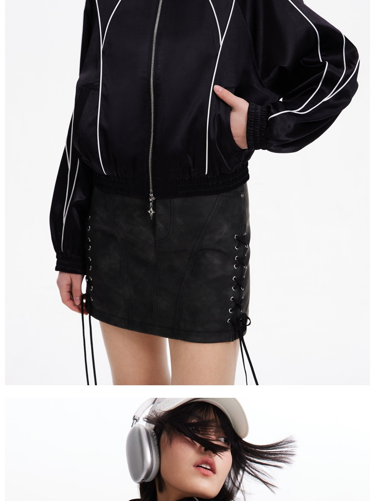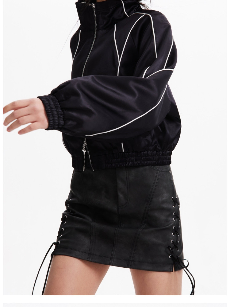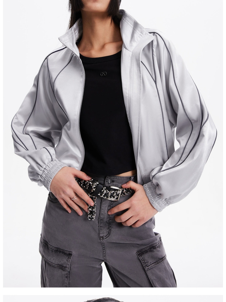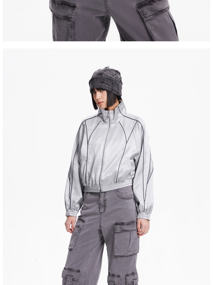 商品名称:【洋气休闲】春季时尚明线装饰插肩袖宽松短款外套女 174618