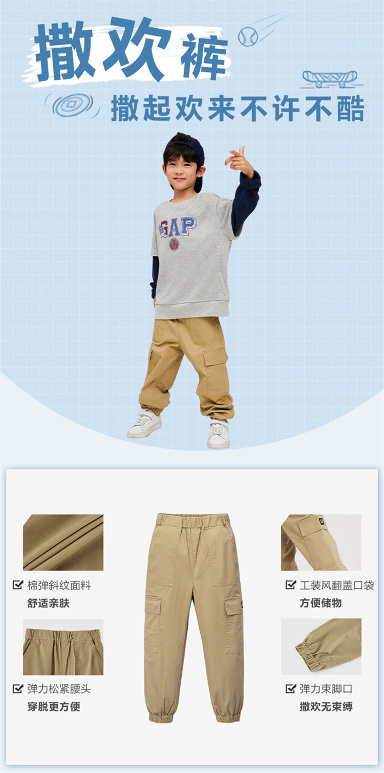 商品名称:Gap男童秋冬季LOGO工装口袋束脚裤836575儿童装撒欢裤 705306